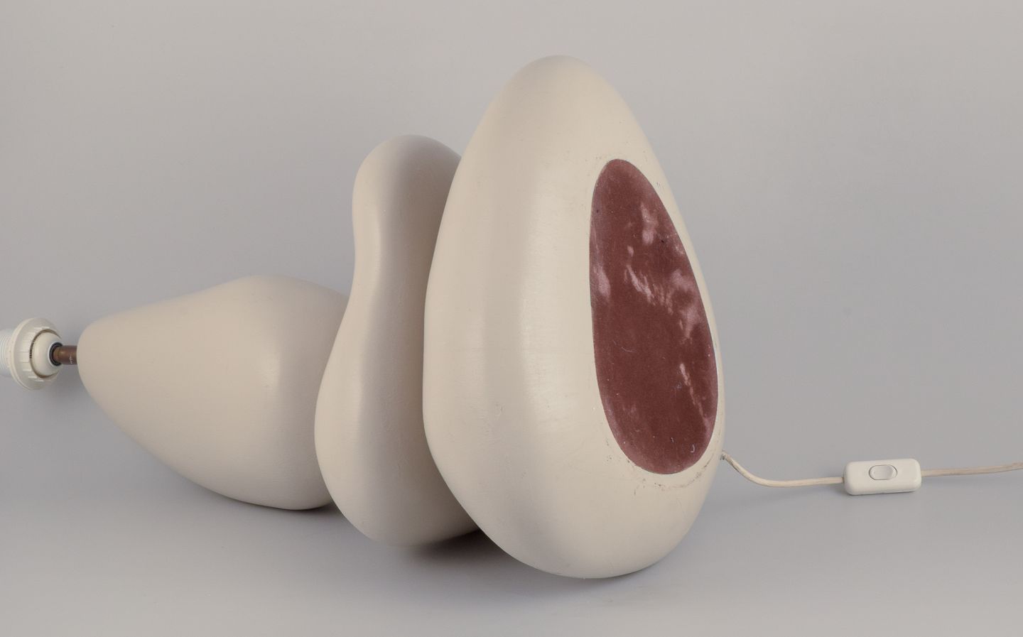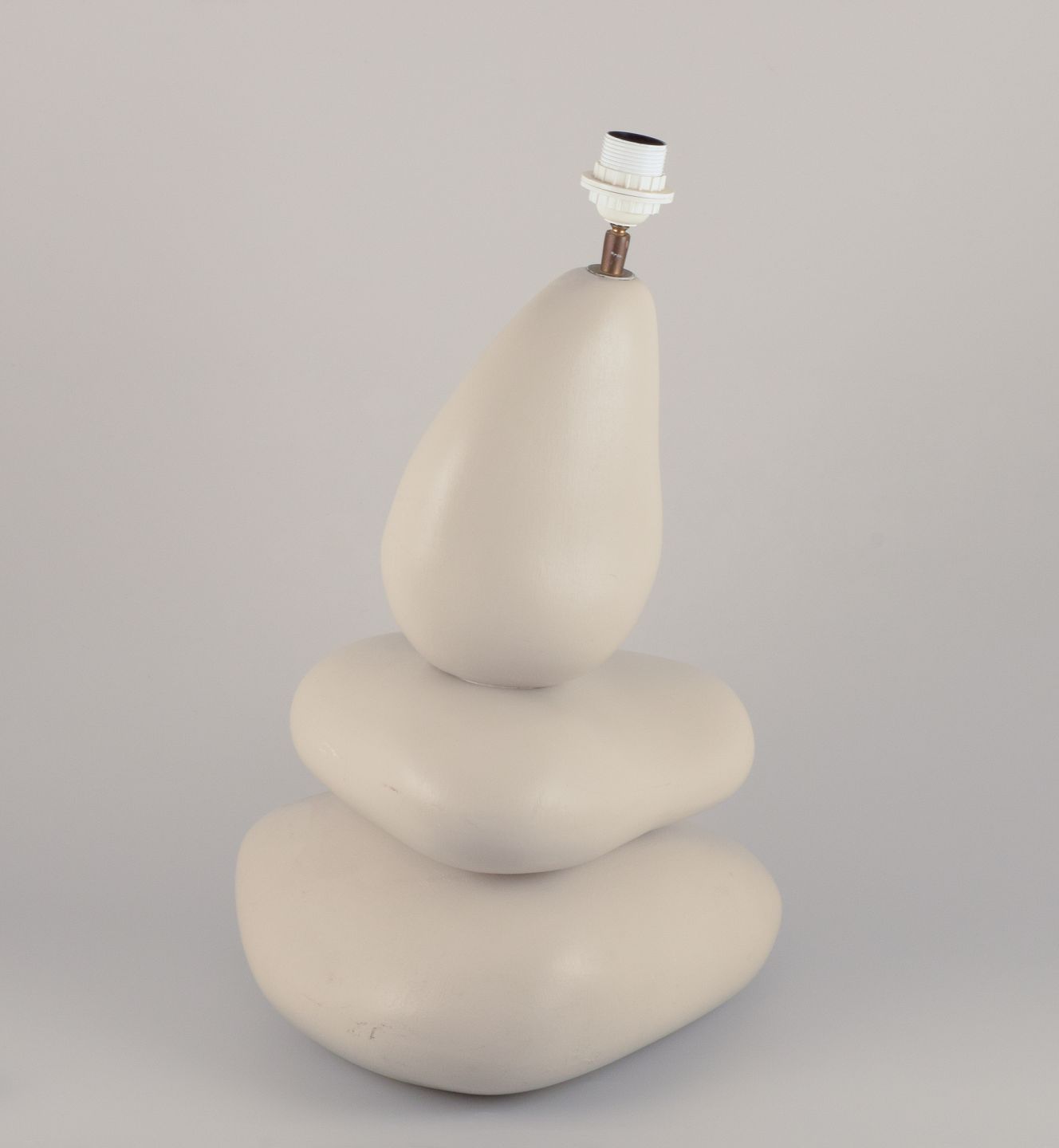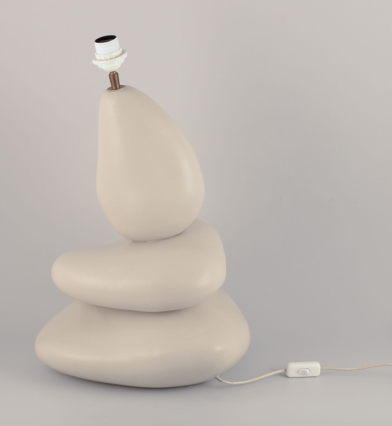 François Chatain, fransk keramiker. Stor organisk, treformet "Karek" bordlampe i unikakeramik med grå glasur.