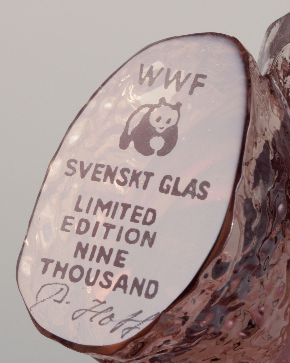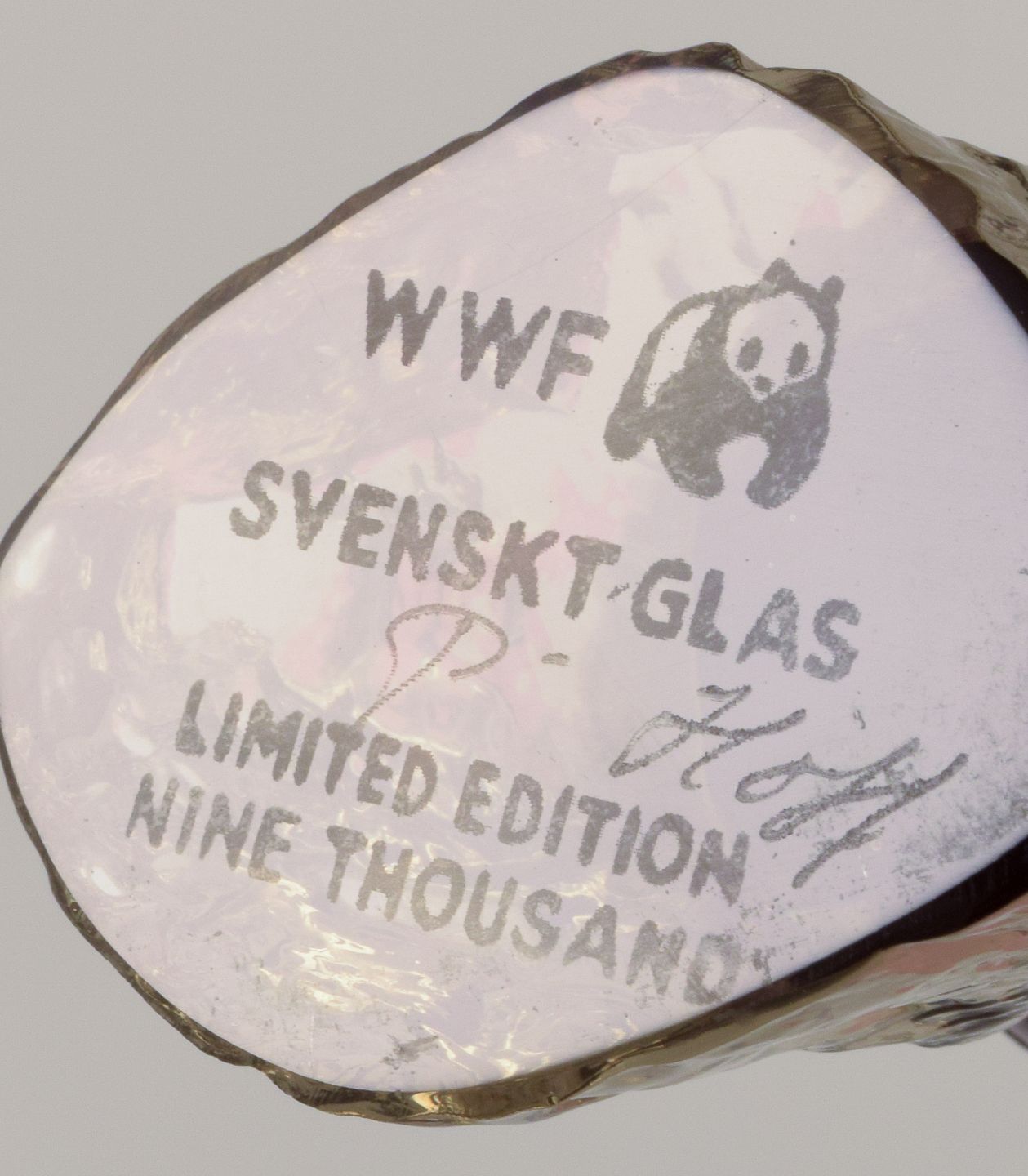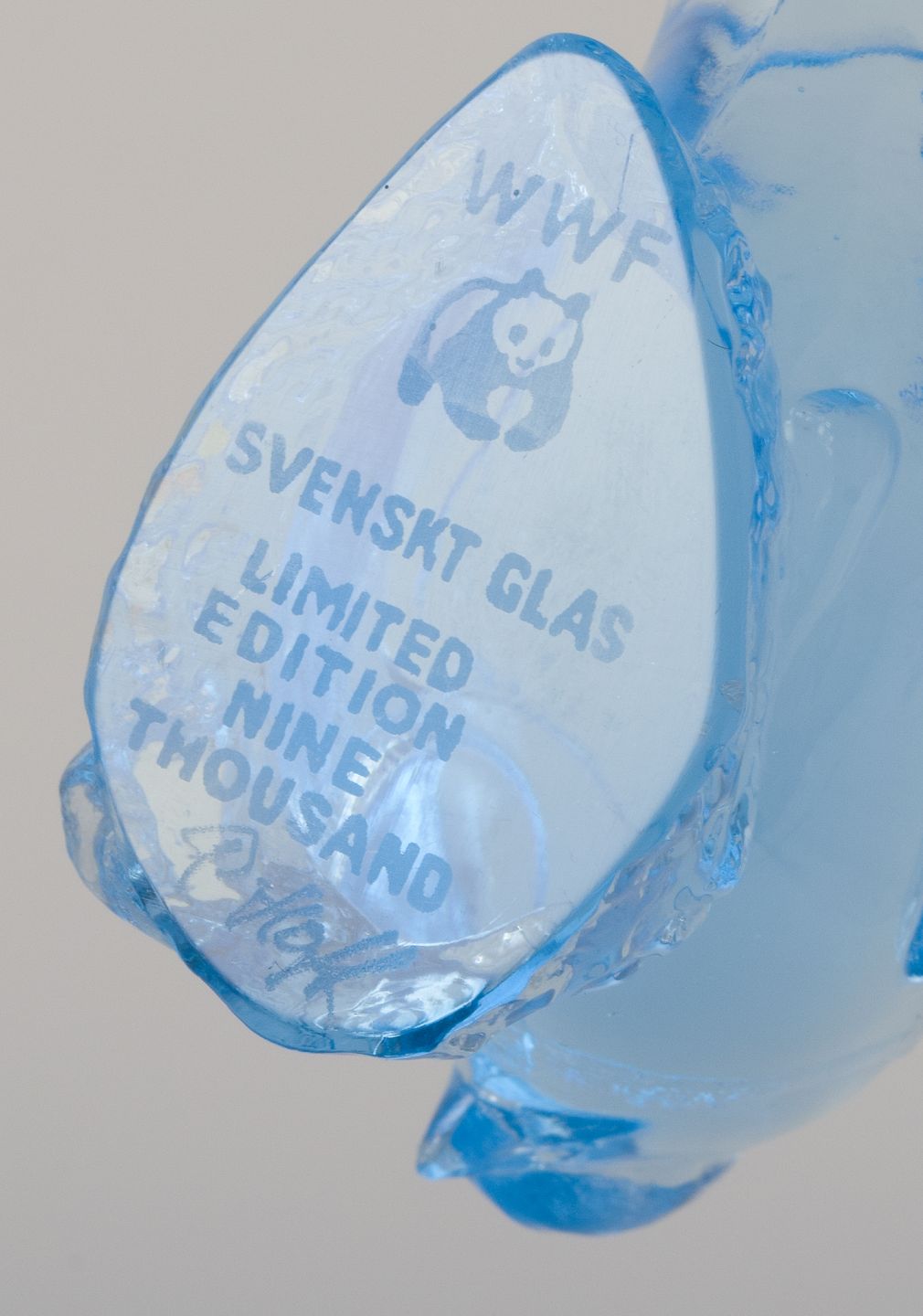 Paul Hoff for Kosta Boda / Svenskt Glas, fire figurer i kunstglas. WWF. Ca. 1980'erne. Stemplet. Blå: B 9,0 cm. x H 5.5 cm.