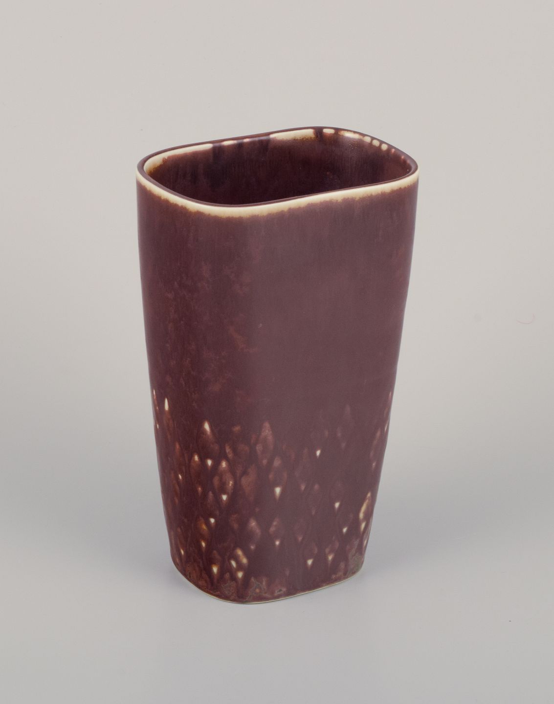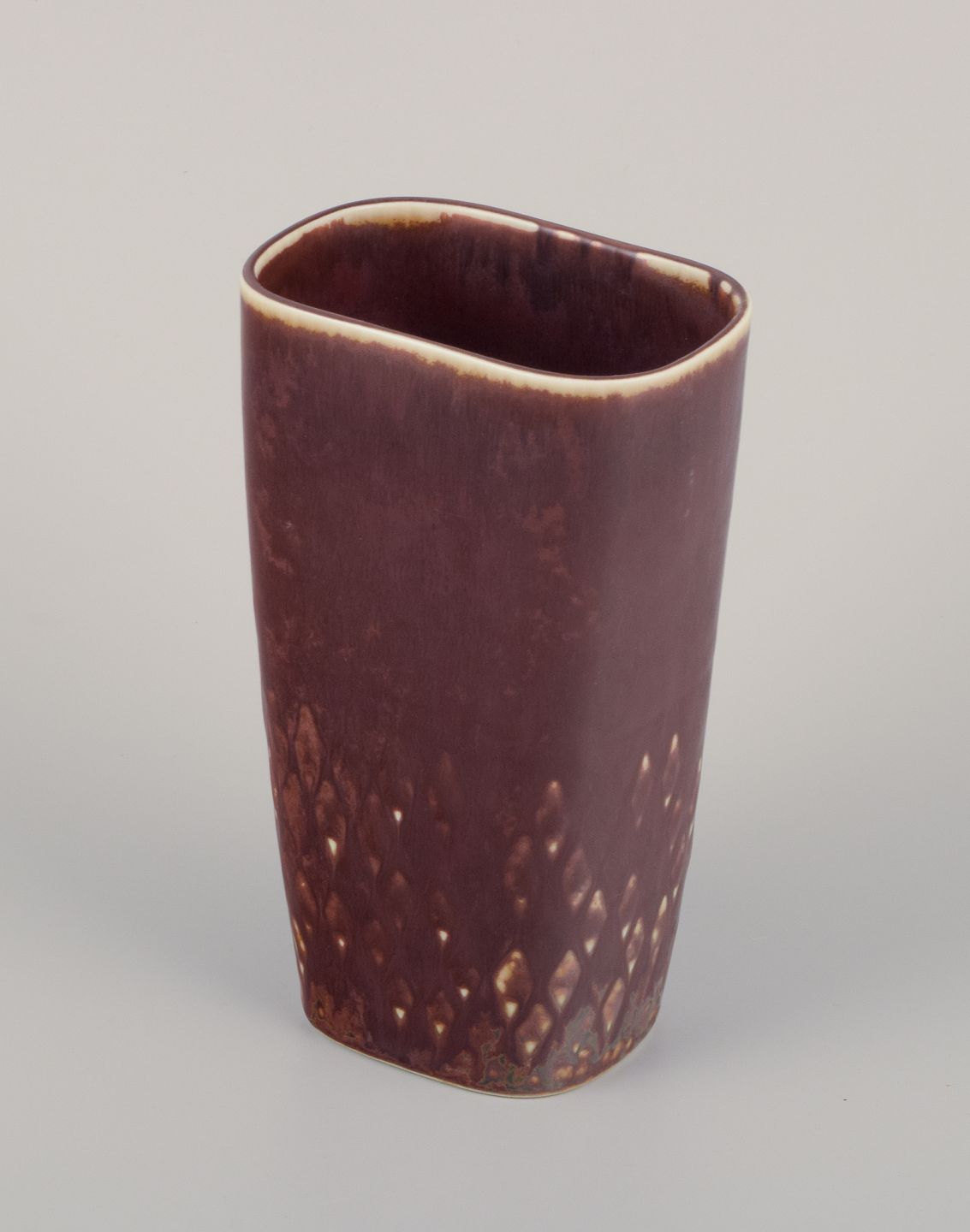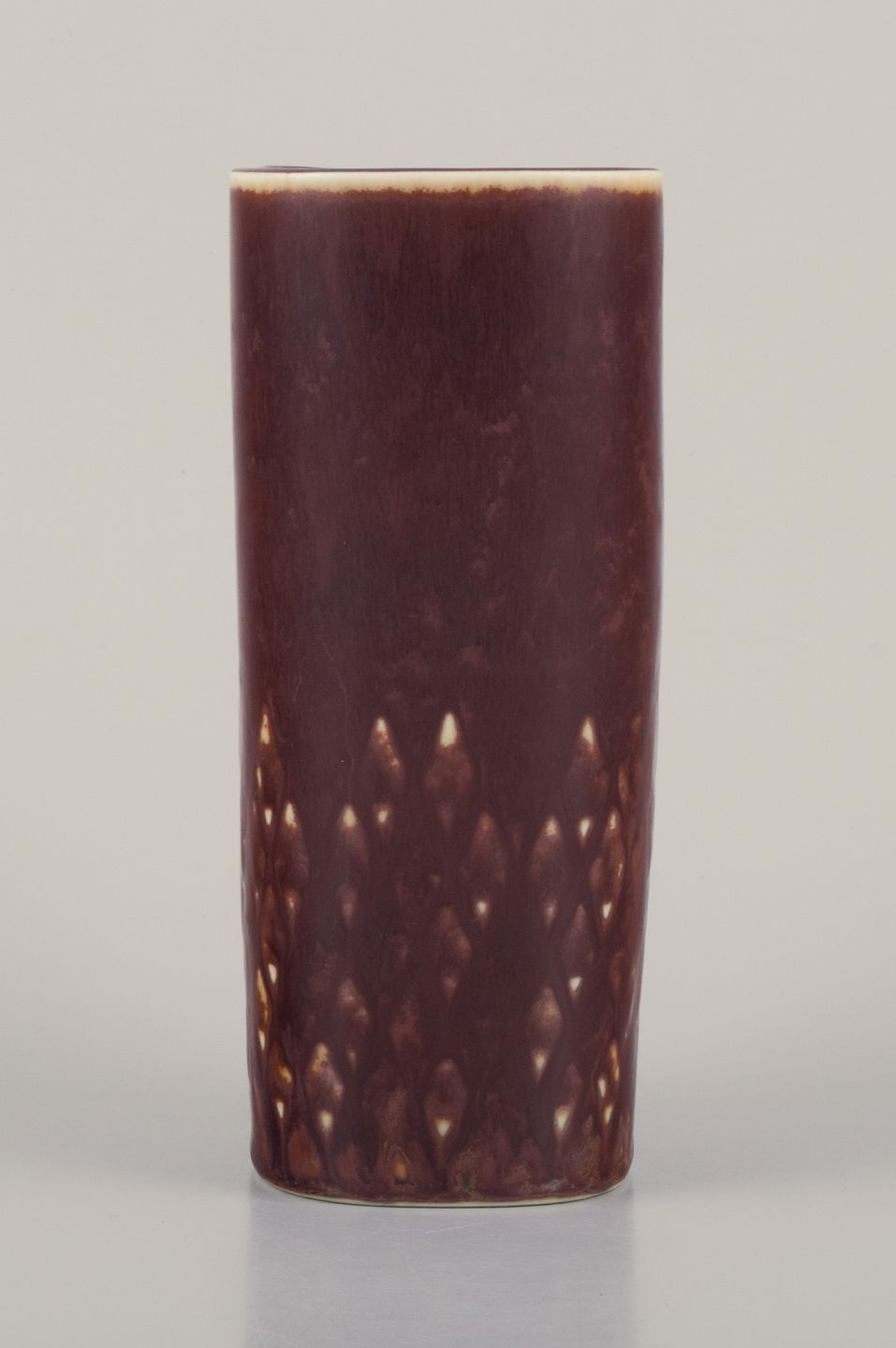 Carl Harry Stålhane for Rörstrand. Keramikvase i brune nuancer. Modernistisk design. Midt 1900-tallet. Stemplet. Perfekt stand. Anden sortering. Mål: B 10,5 cm. x D 7,0 cm. x H 17,5 cm.