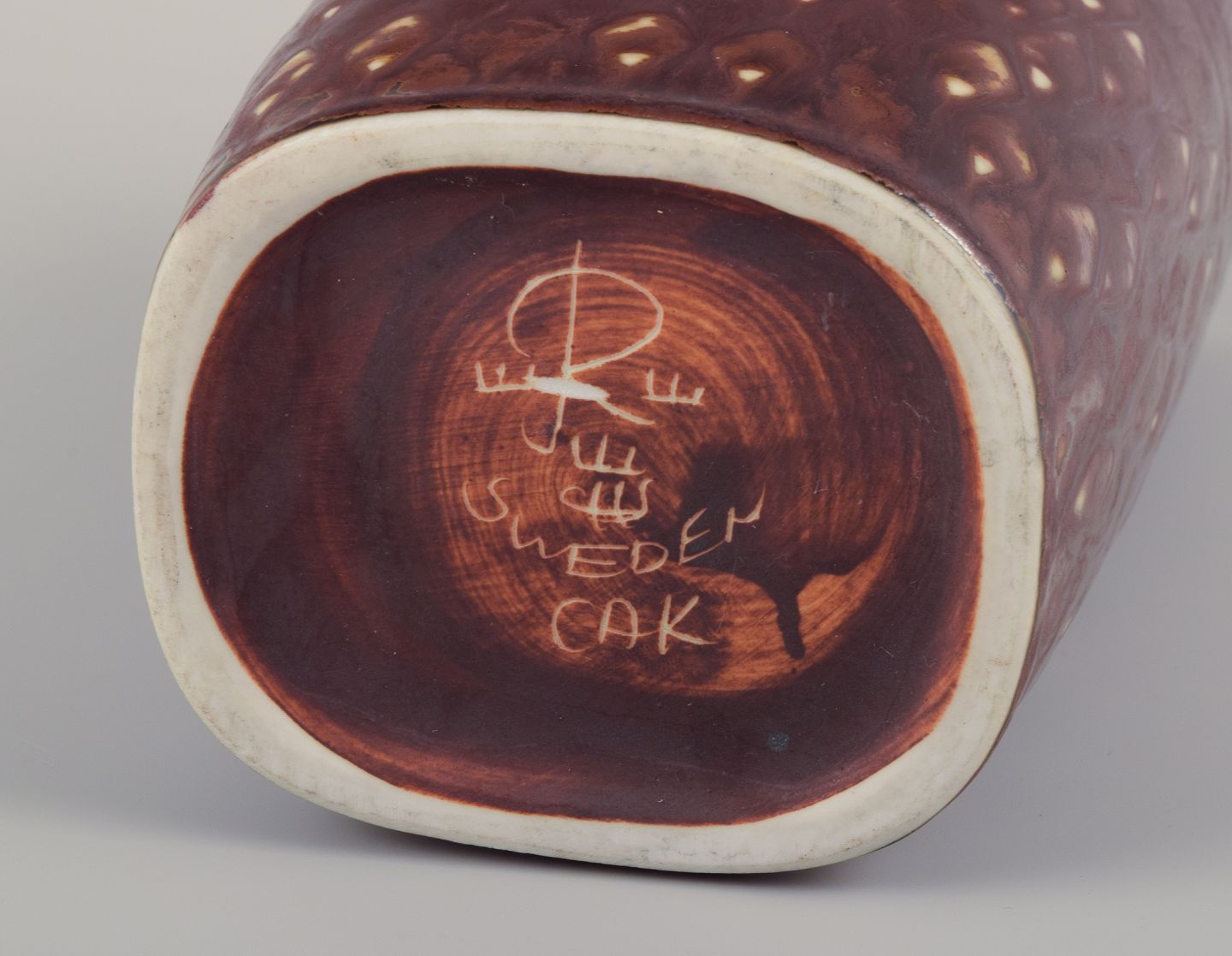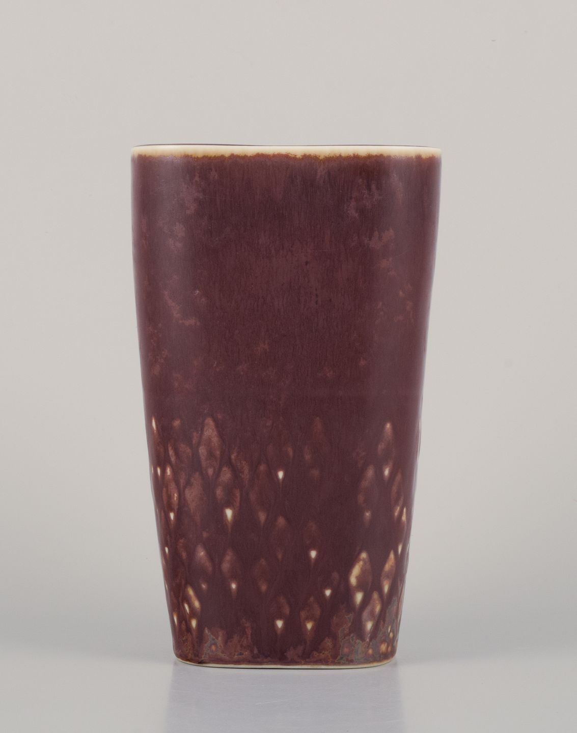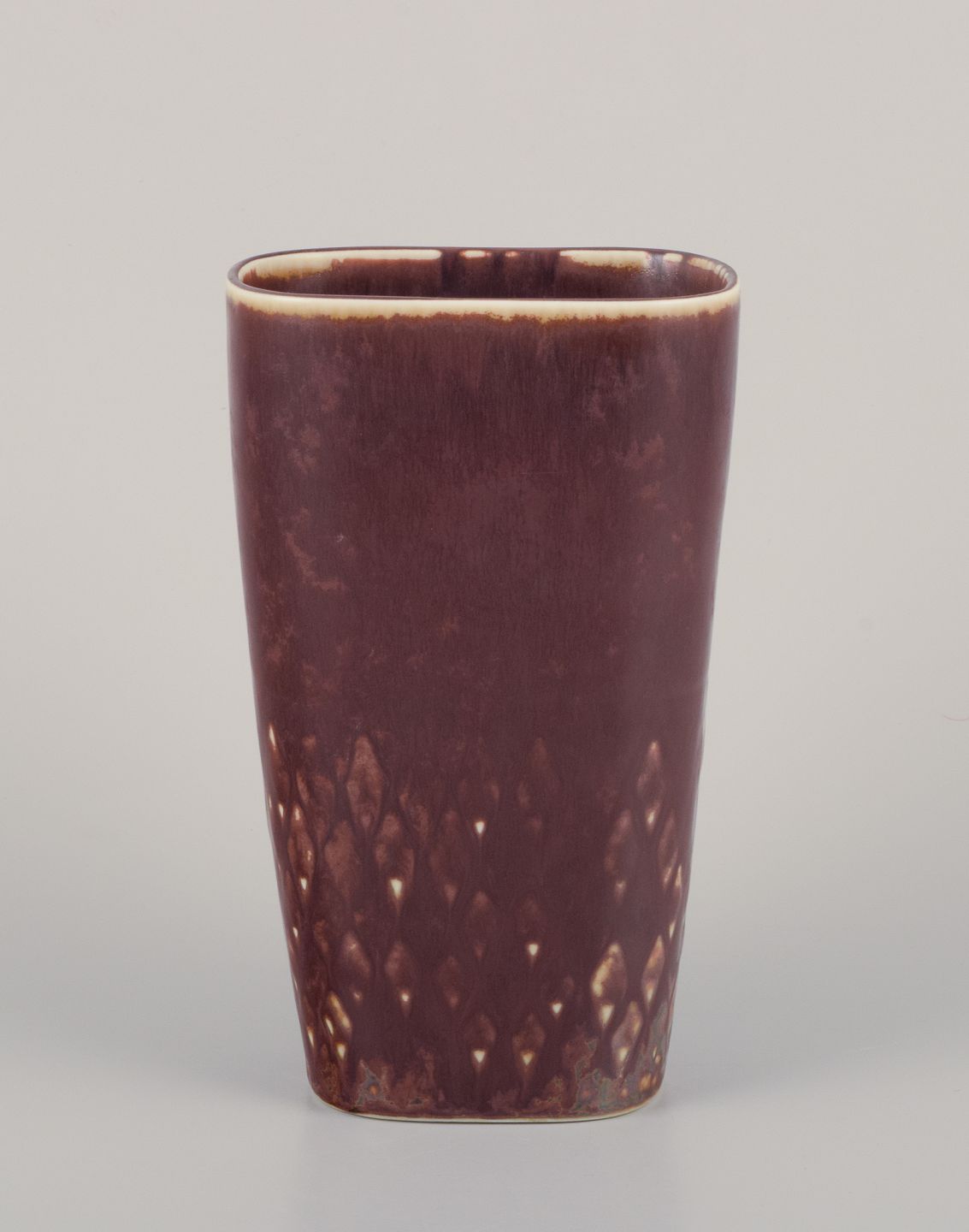 Carl Harry Stålhane for Rörstrand. Keramikvase i brune nuancer. Modernistisk design. Midt 1900-tallet. Stemplet. Perfekt stand. Anden sortering. Mål: B 10,5 cm. x D 7,0 cm. x H 17,5 cm.
