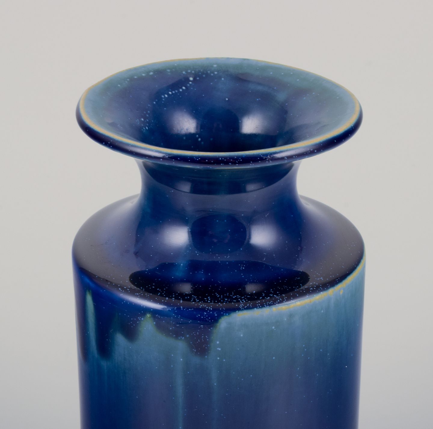 Britt-Louise Sundell (1928–2011) for Gustavsberg, Sverige. Stor keramikvase med glasur i blålige og grønne toner. 1960’erne. Perfekt stand. Mål: H 24,0 x D 10,5 cm.