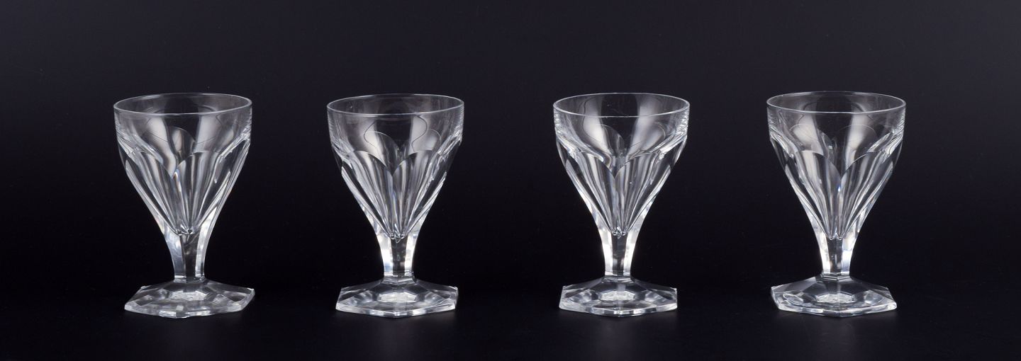 Baccarat, Frankrig, et sæt på fire Art Deco glas i klart krystal. Facetslebet. 1930’erne. Perfekt stand. Mål: H 9,3 cm. x D 6,0 cm.