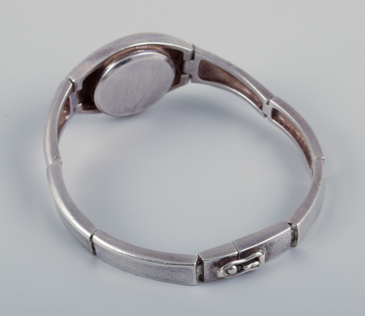 Björn Weckström for Lapponia, Finland. Dame armbåndsur i sterlingsølv. Quartz-værk. Årstalsstempel Q8 = 1993 I flot stand, batteriet skal skiftes. Hængsellås. Stemplet. Urskive: 20 mm.