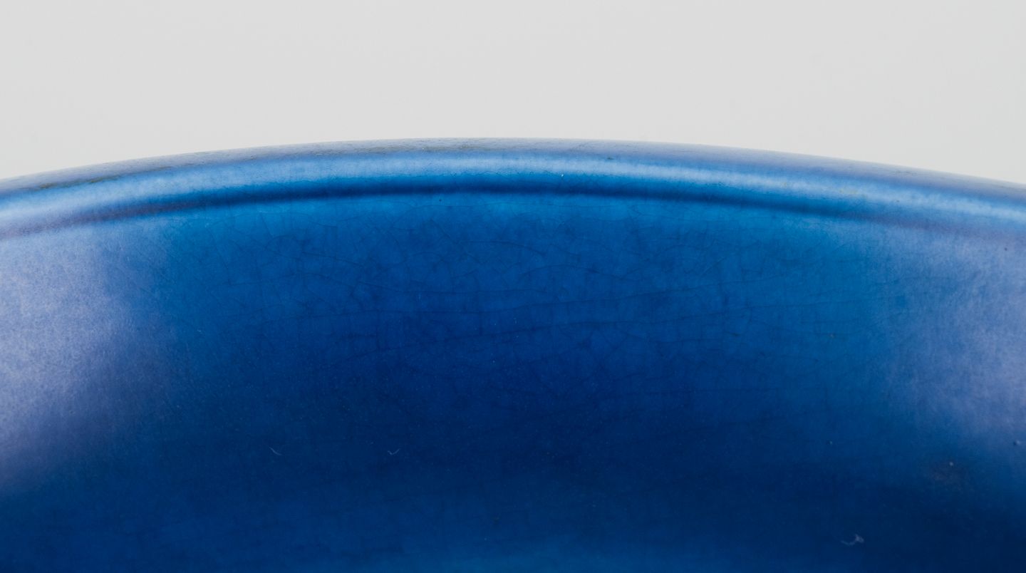Nils Thorsson for Aluminia. Skål i fajance med blåmalet glasur. Motiv af fisk. Midt 1900-tallet. Modelnummer 2650. Stemplet Perfekt stand. Første sortering. Mål: D 19,0 cm. x H 4,5 cm.