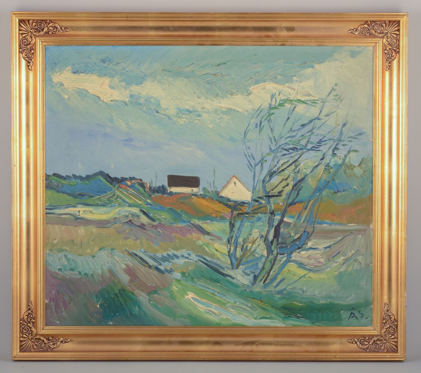 Aage Strand, Danish painter, oil on canvas. Modernist landscape. 1960s/70s. Signed ÅS. In perfect condition. Dimensions: 69 cm x 59 cm. Total with frame: 82 cm x 72 cm.