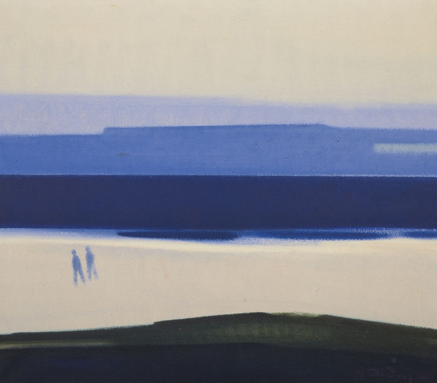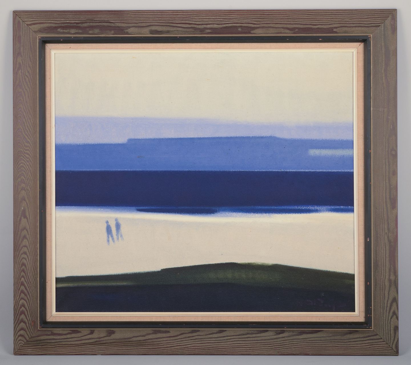 Knud Horup (1926-1973), Danish artist, oil on canvas. Figures on the beach.