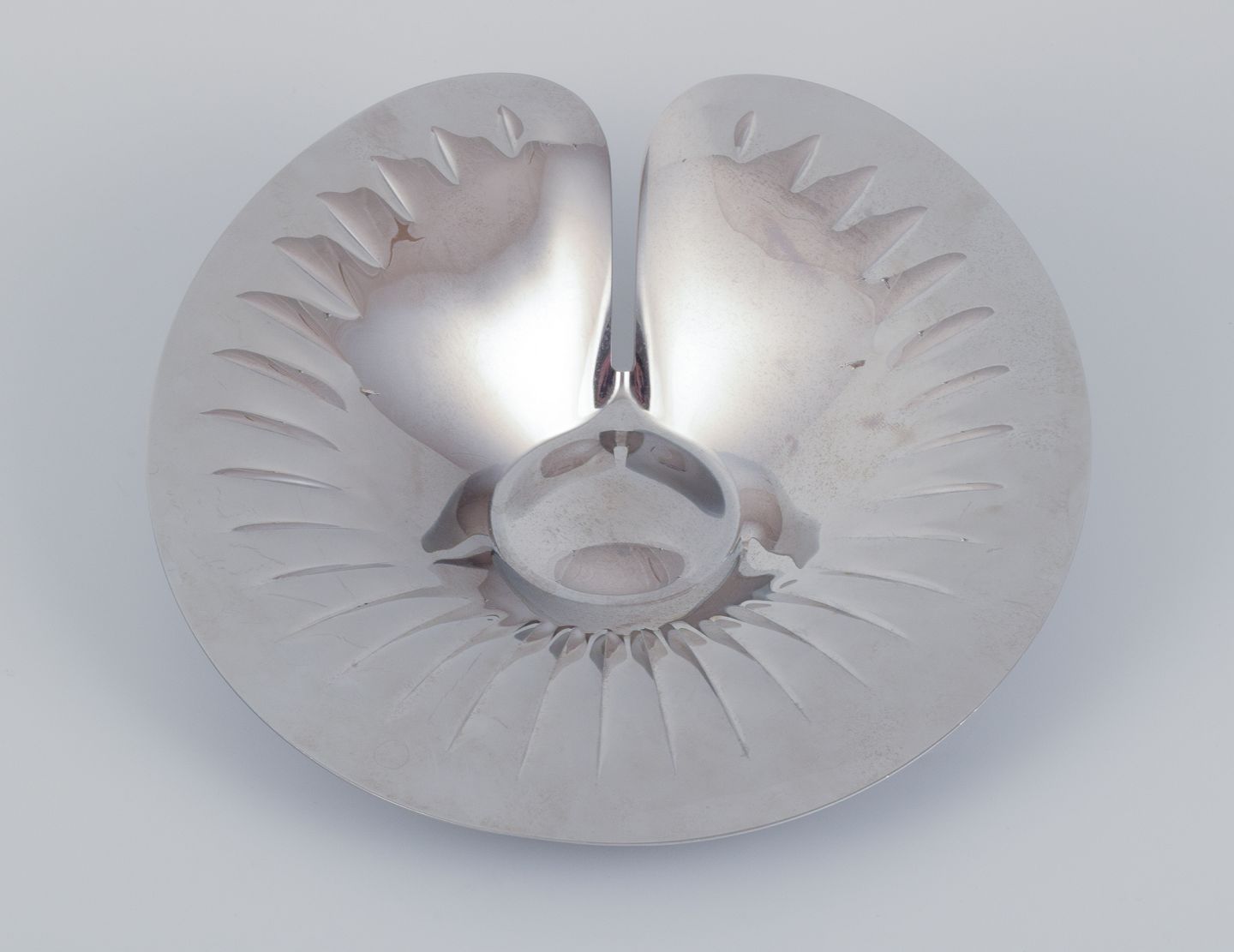 Georg Jensen, skål i rustfrit stål. Modernistisk form. 2000-tallet. Stemplet. I flot stand med mindre brugspræg. Mål: D 31,0 cm. x H 7,5 cm.