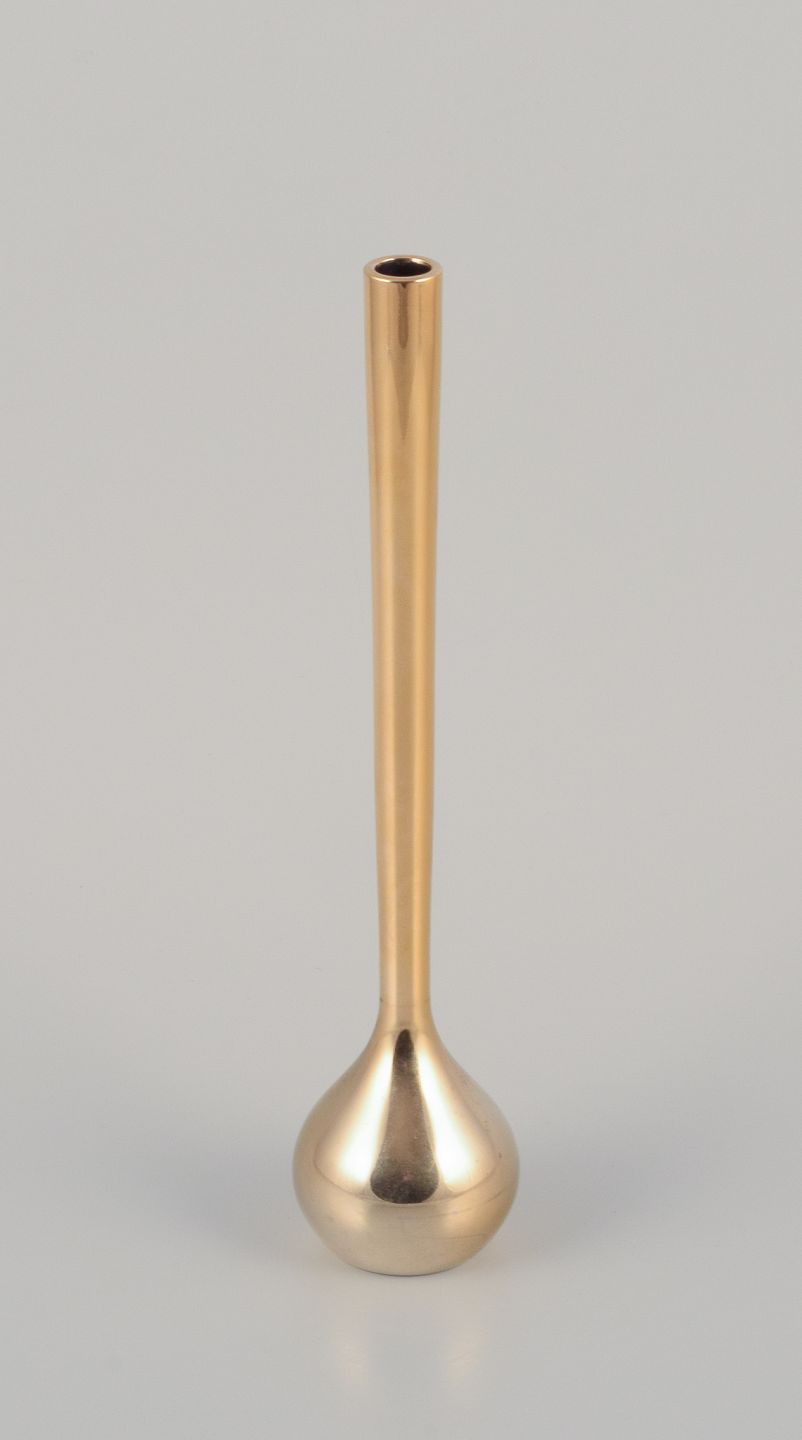 Otto Rasmussen for Design Asmussen. Høj og smalhalset messingvase belagt med 24 karat guld. Dansk design. Ca. 1970’erne. Perfekt stand. Stemplet. Mål: H 26,5 cm. x D 5,5 cm.