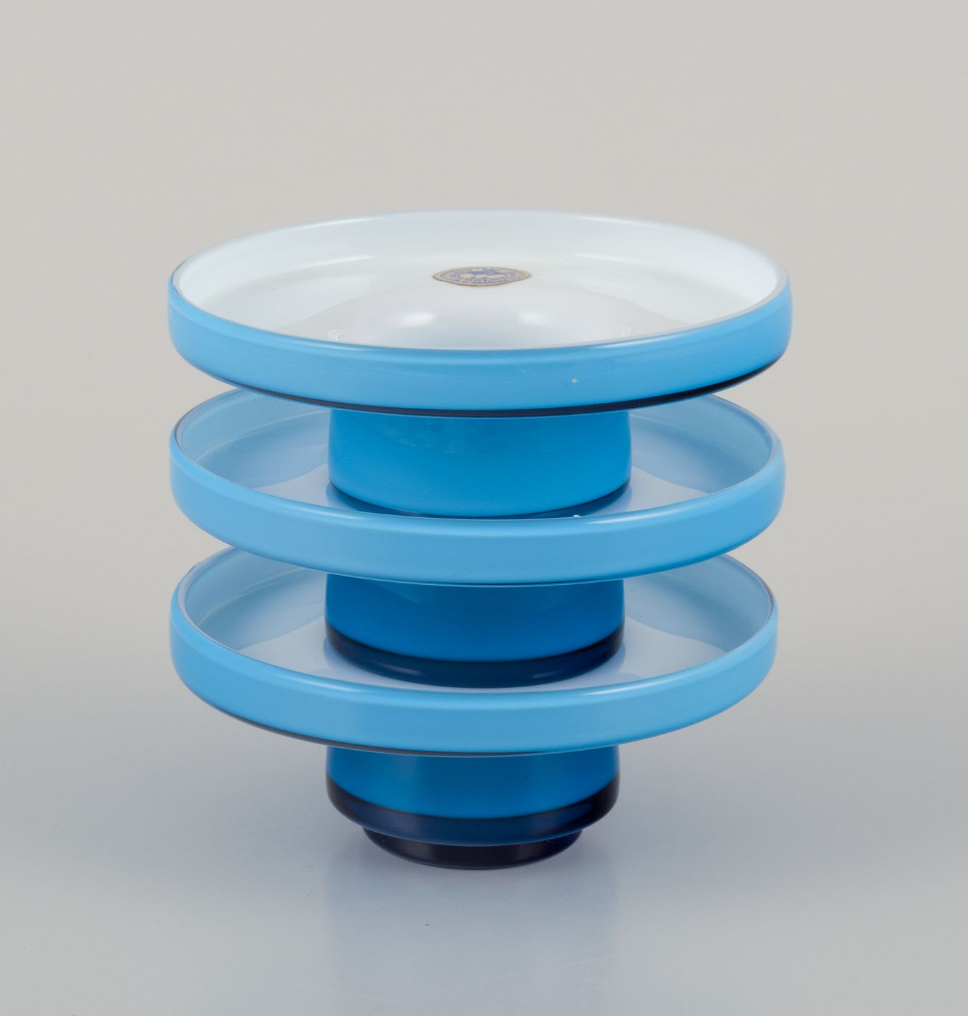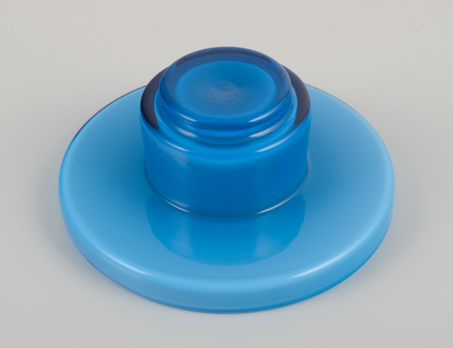 Michael Bang for Holmegaard. Tre ”Palet” lysestager i turkis mundblæst kunstglas. 1960/70'erne. Med mærkater. I perfekt stand. Mål: D 9,5 cm. x 4,0 cm.