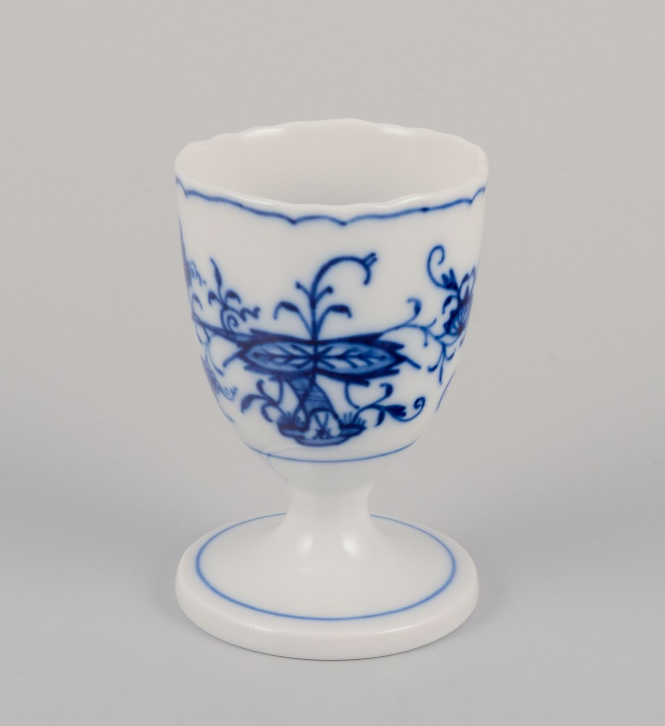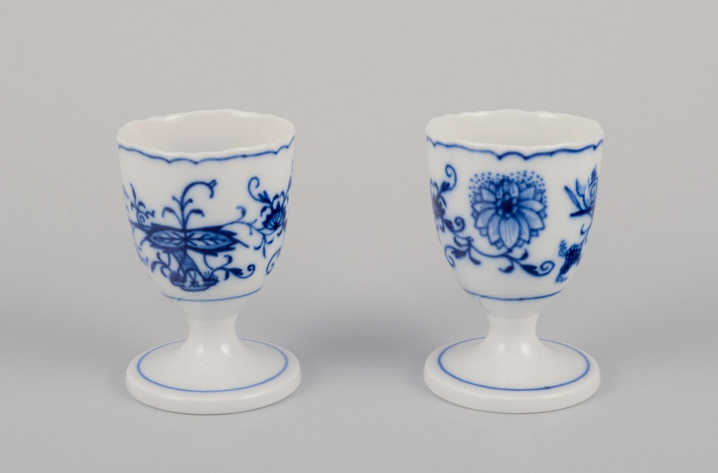 Meissen, Germany. Two Blue Onion Pattern egg cups. Hand-painted. Mid-20th century. Perfect condition. First factory quality. Marked. Dimensions: Height 7.0 cm. x Diameter 4.2 cm.