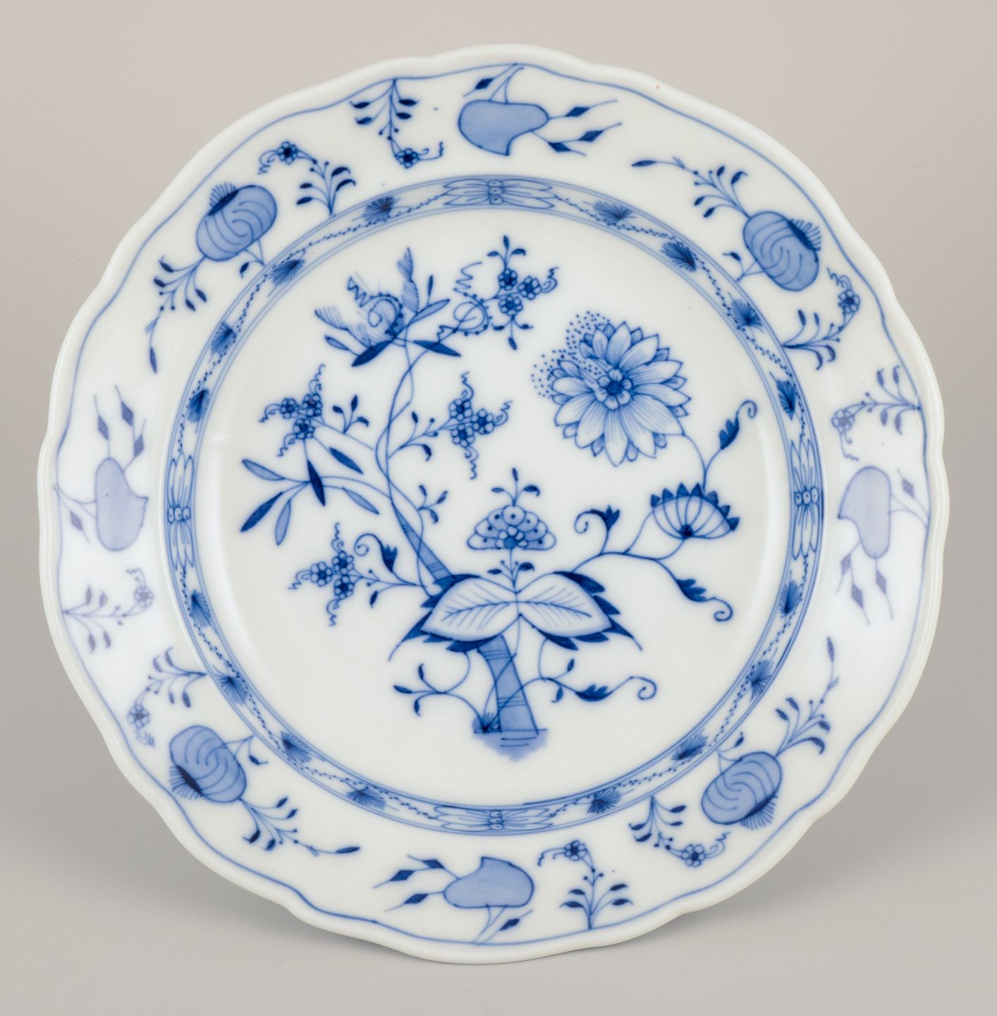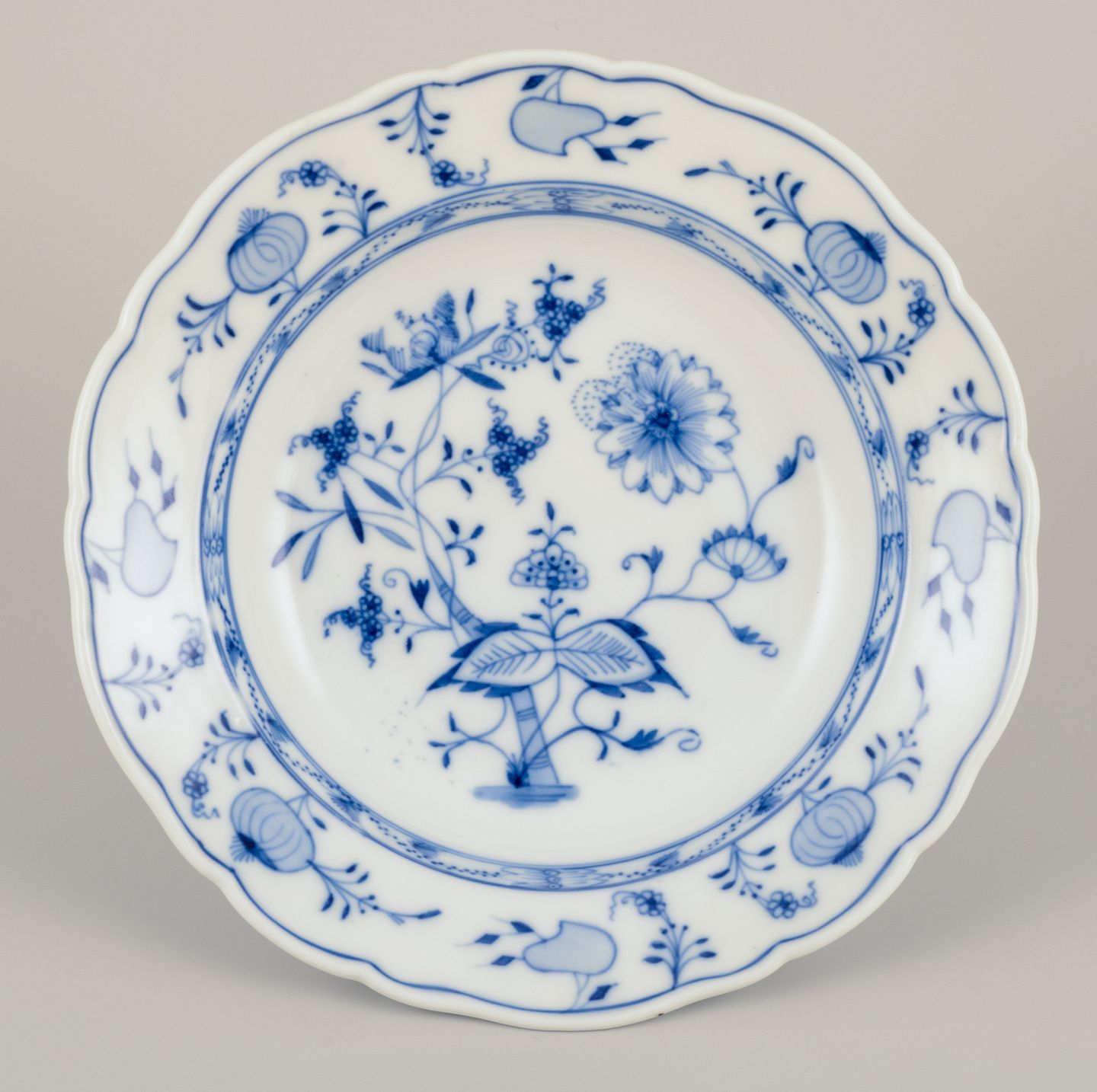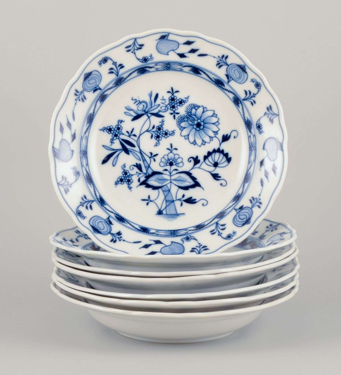 Stadt Meissen. Et sæt på syv Løgmønstret dybe tallerkner. Ca. 1930. Stemplet. Perfekt stand. Dybden på tallerknerne varierer en anelse. Mål: D 25,0 cm. x H 5,0 cm.