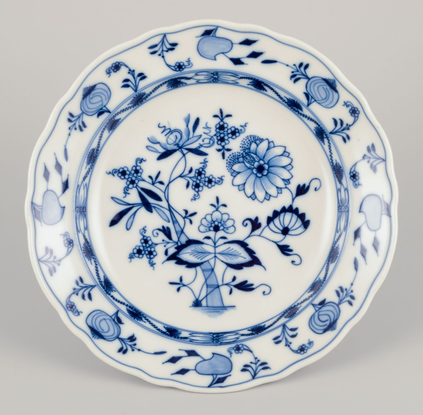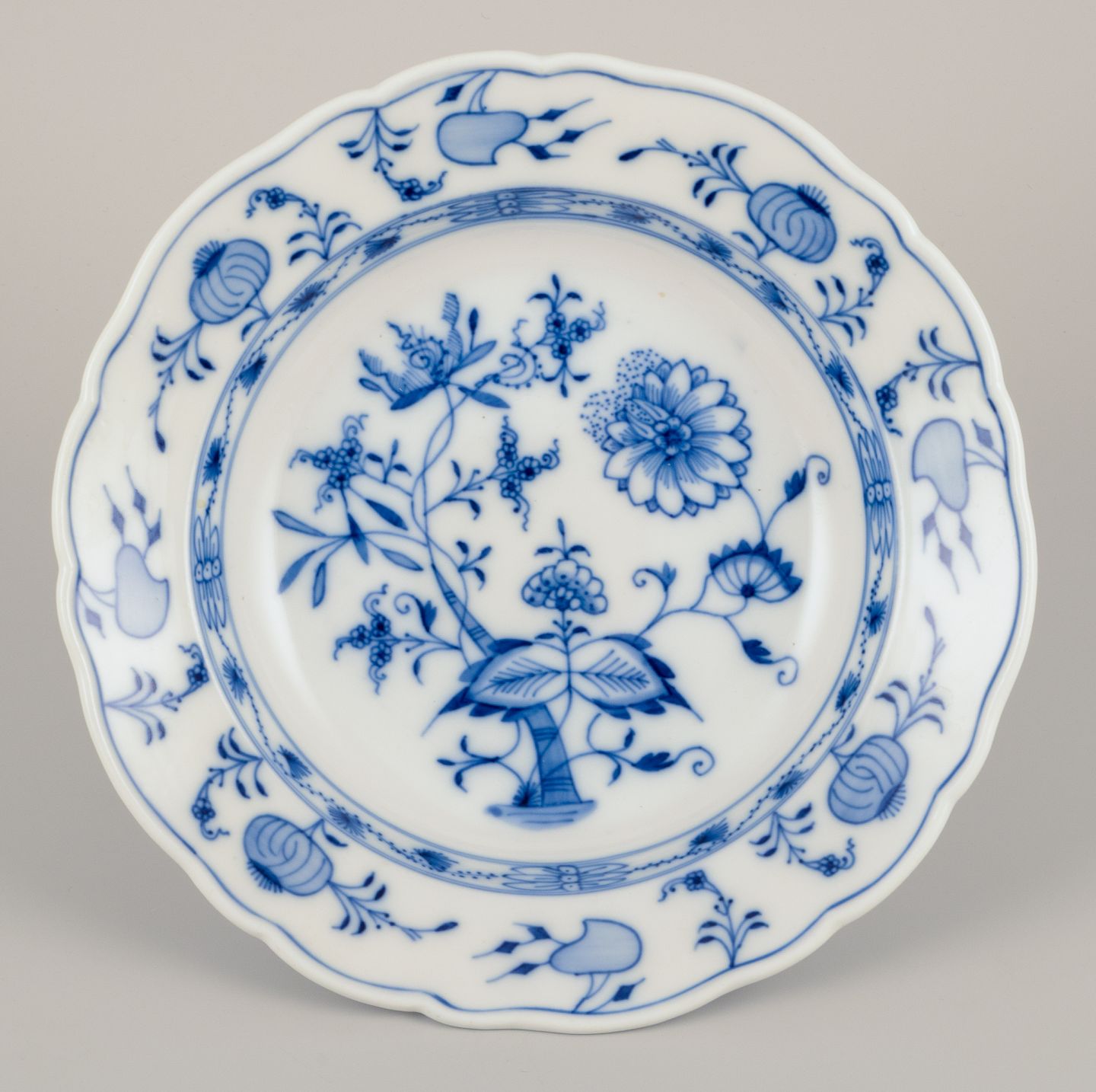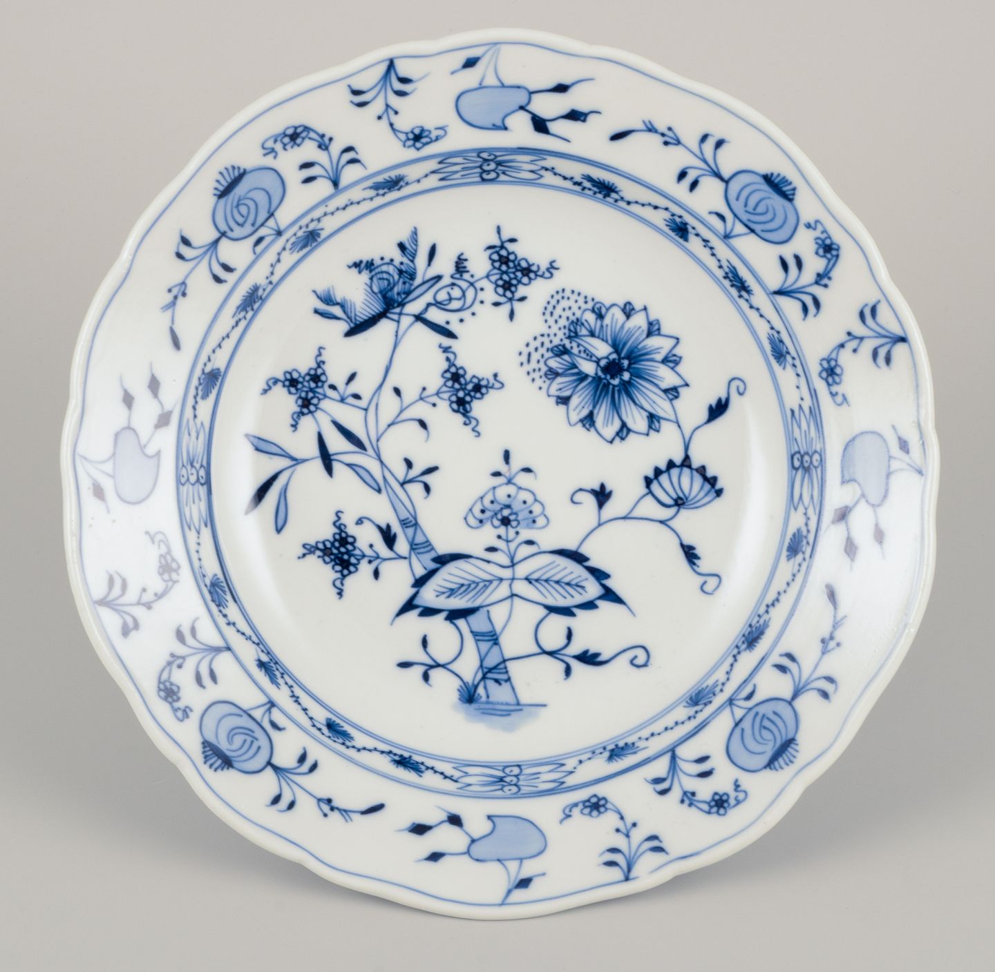 Stadt Meissen. Et sæt på syv Løgmønstret dybe tallerkner. Ca. 1930. Stemplet. Perfekt stand. Dybden på tallerknerne varierer en anelse. Mål: D 25,0 cm. x H 5,0 cm.