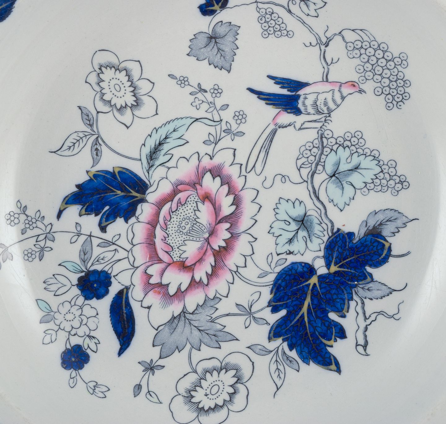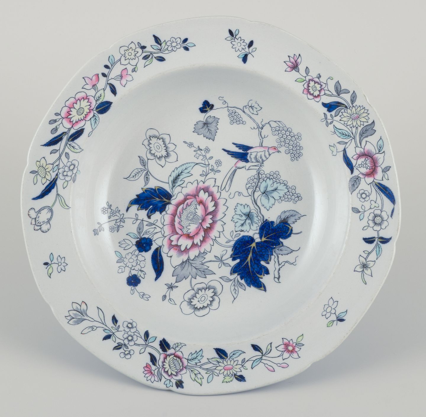 Copeland/Spode, England. Fem dybe tallerkner i fajance. Dekoreret med blomster og fuglemotiver. Ca. 1930’erne. I perfekt stand. Stemplet. Mål: D 24,5 cm. x H 3,8 cm.