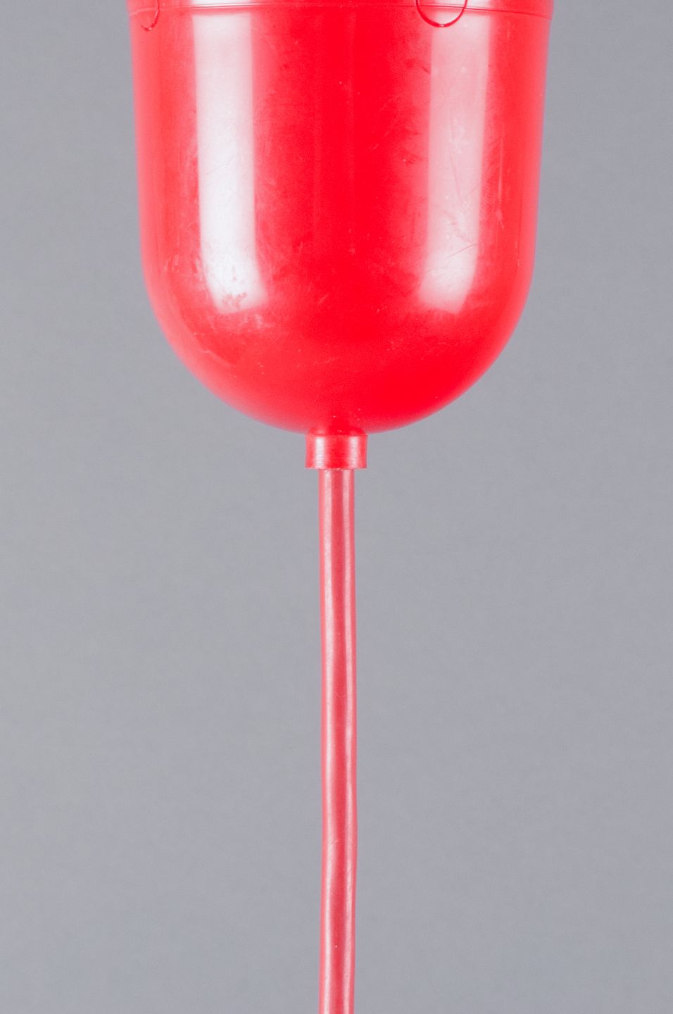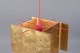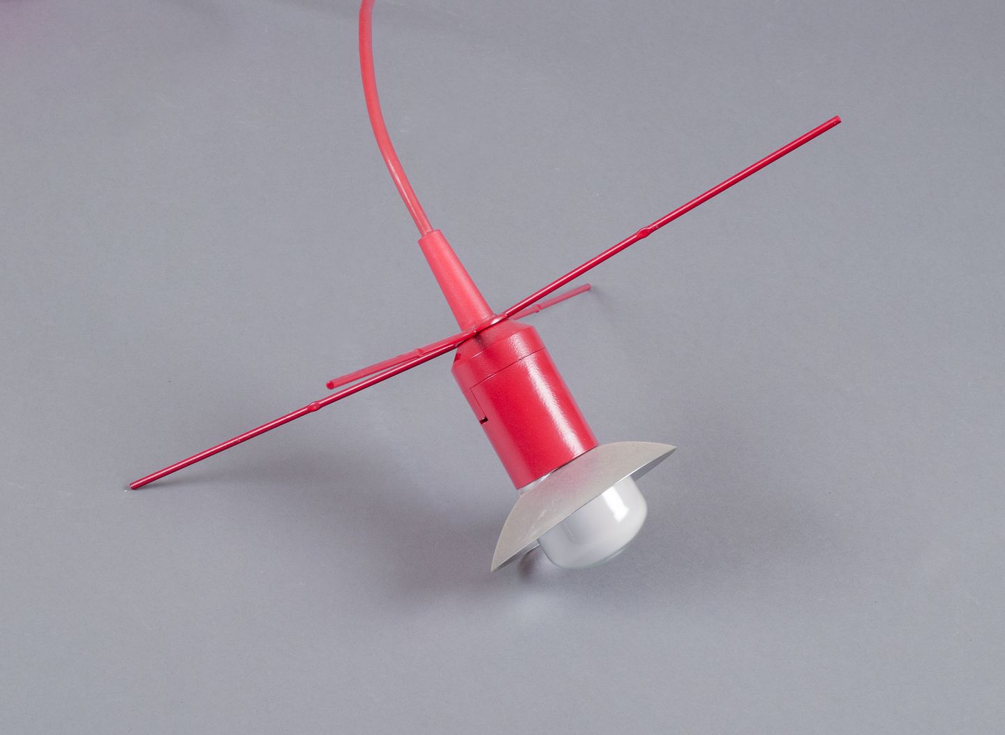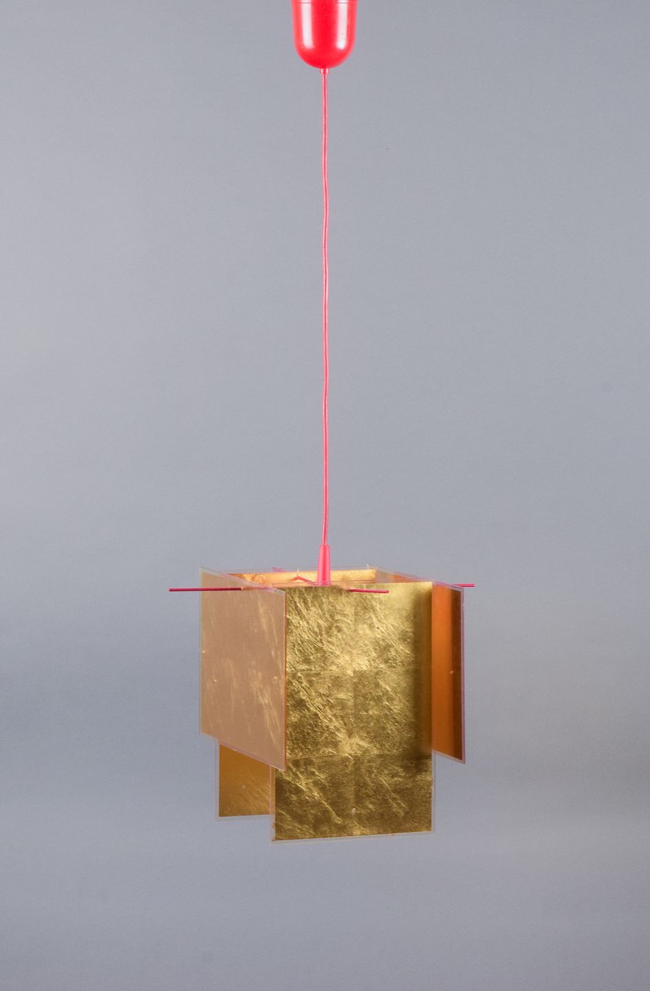 Ceiling pendant with frame of red-lacquered metal.
