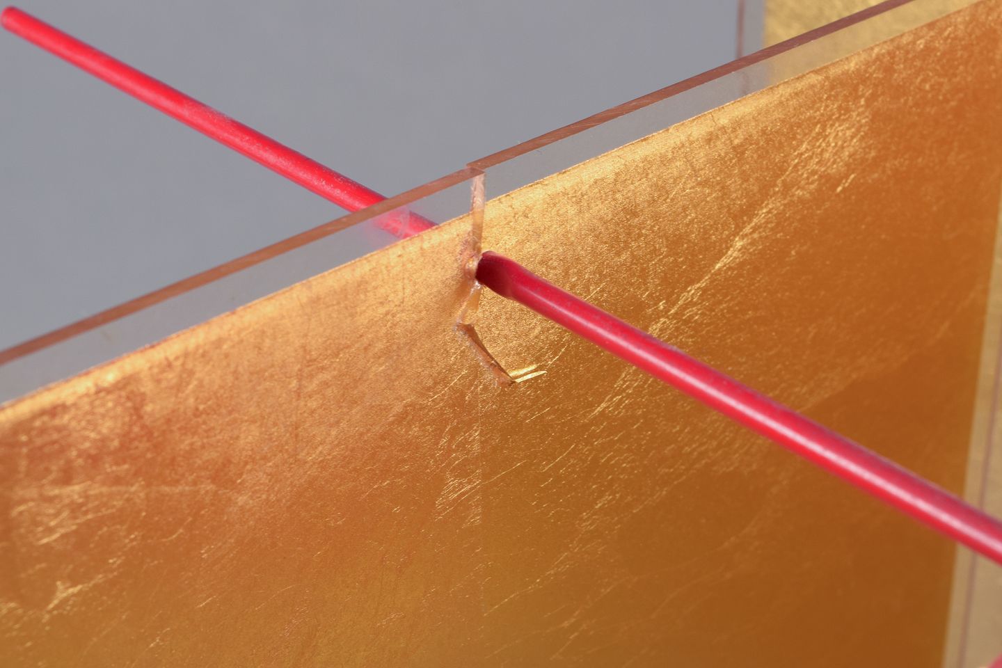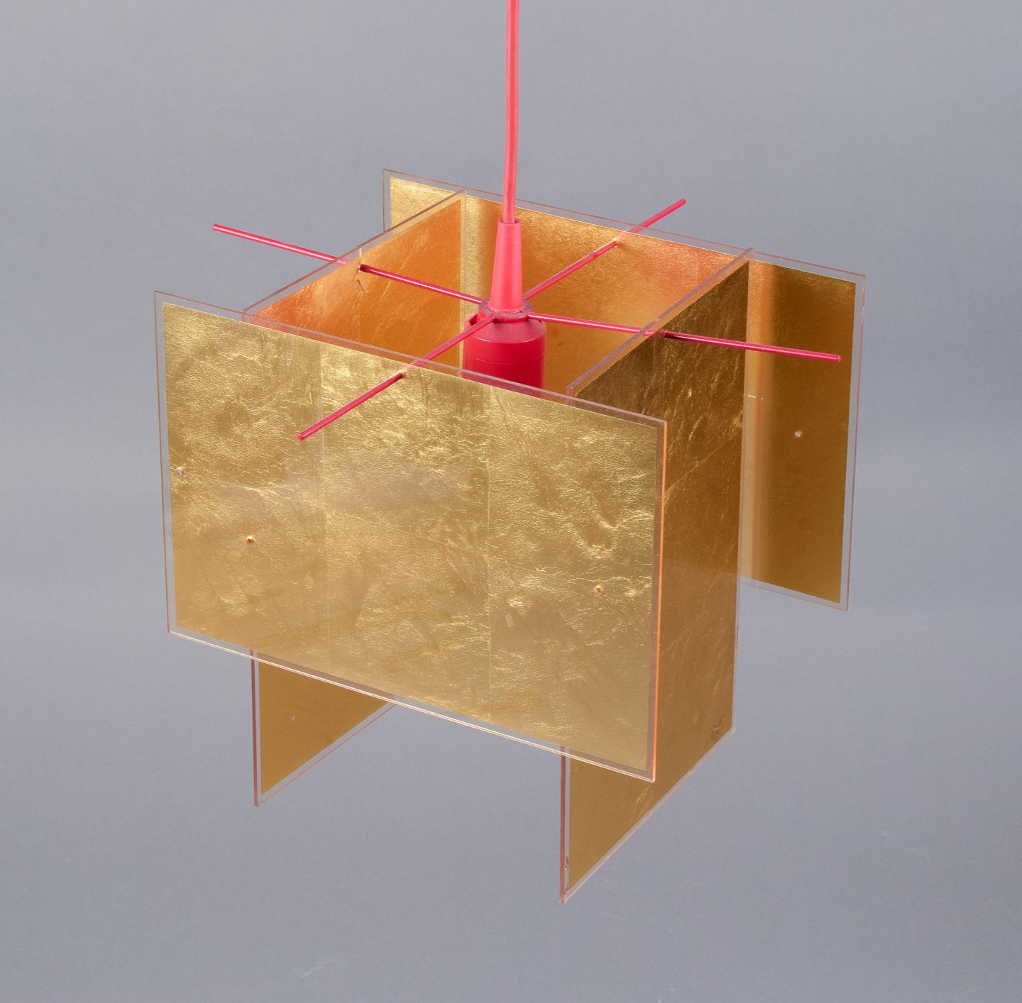 Shades in plexiglass inlaid with 24-carat gold leaf.