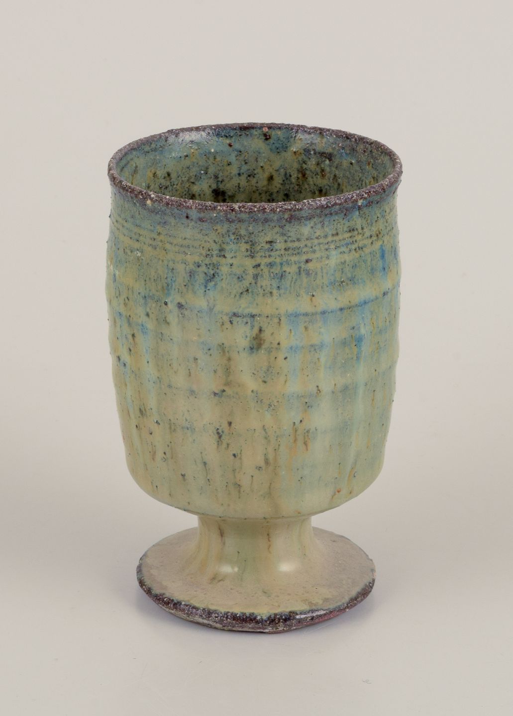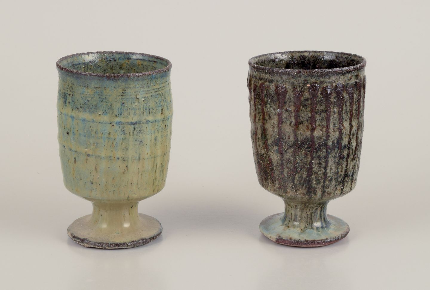 Gutte Eriksen, Denmark. Two cups in ceramic, raku technique, flowing lava glaze in brown tones. Approximately 1960. Marked. Perfect condition. Dimensions: Highest: H 10.0 cm x D 6.0 cm.