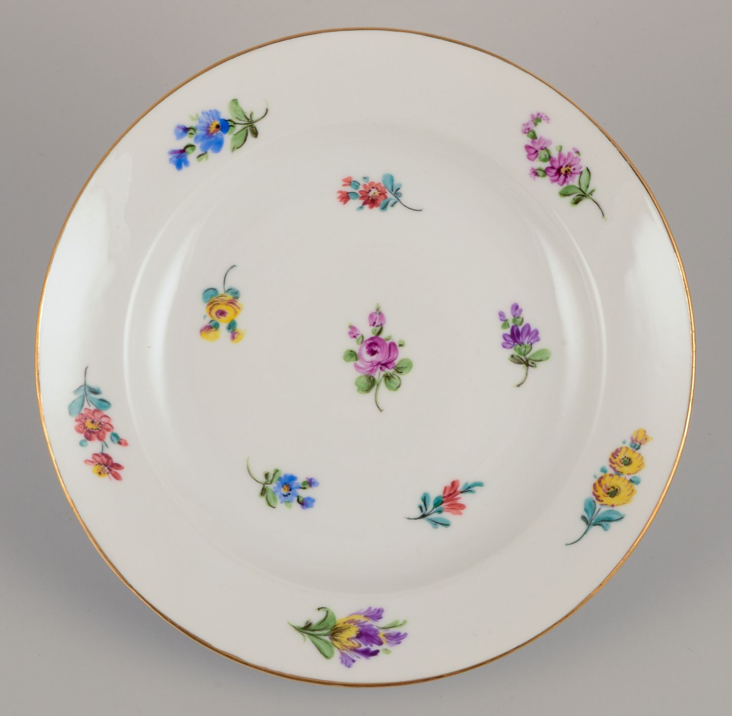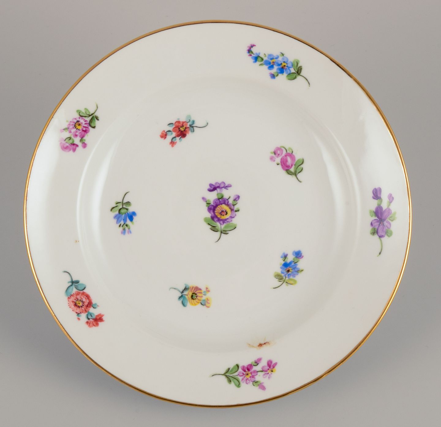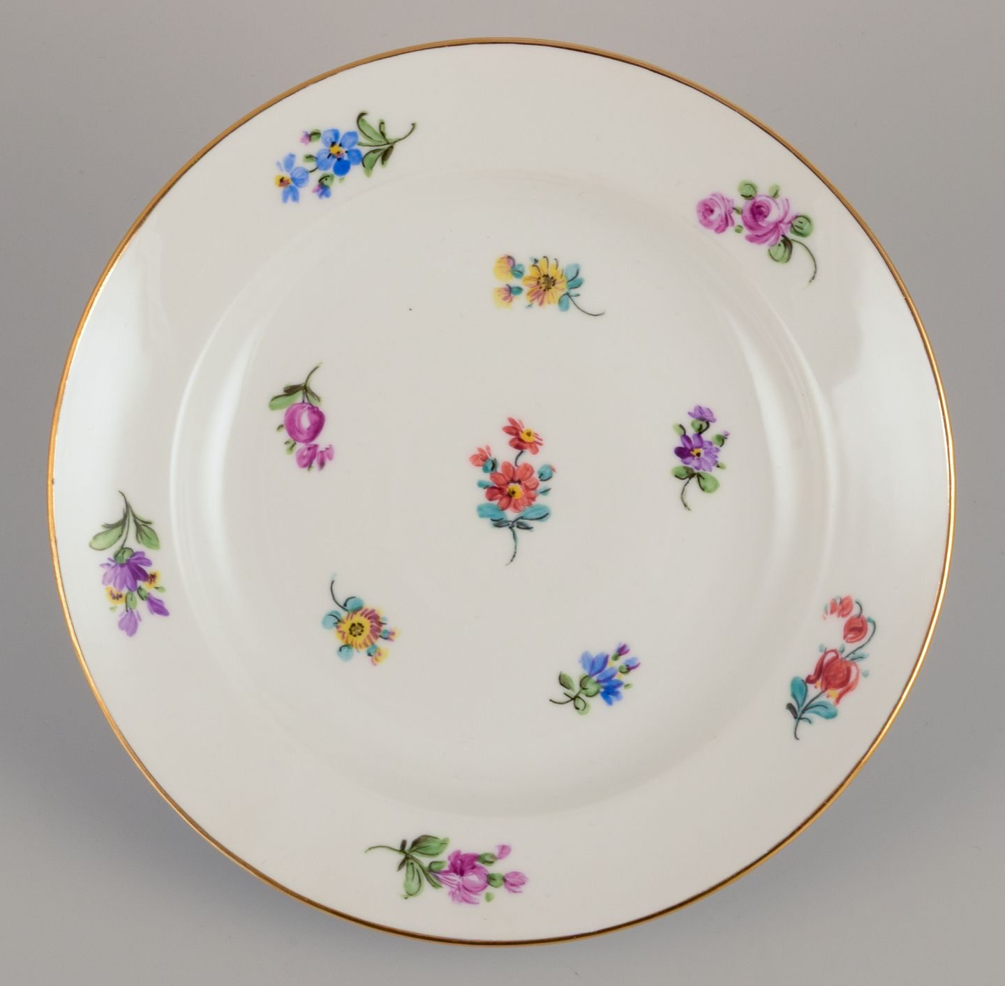 Håndmalet med polykrome blomstermotiver, guldkant.