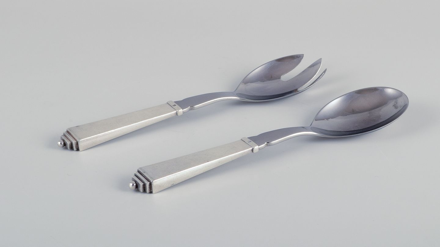Salad set in sterling silver and stainless steel.