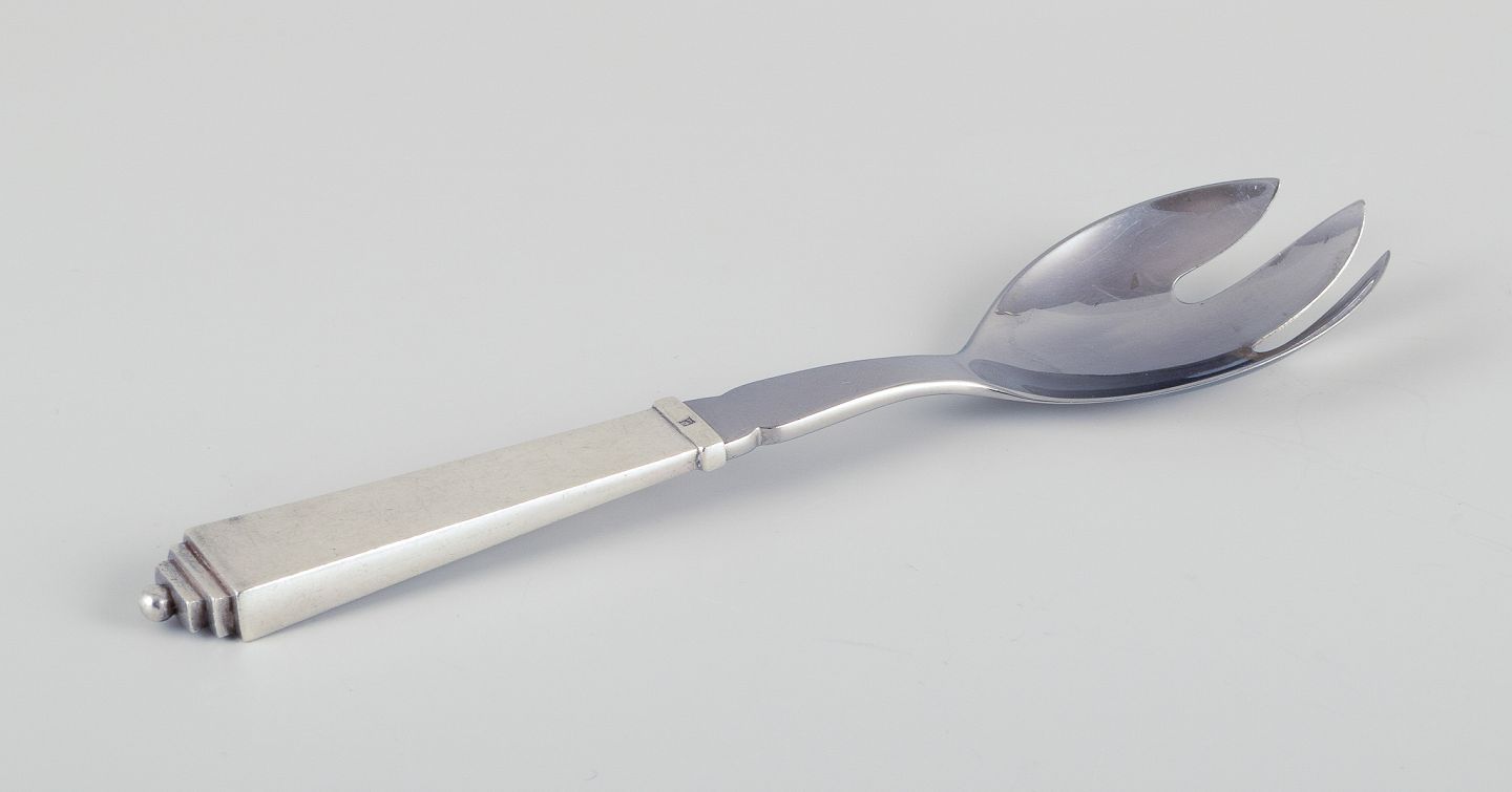 Georg Jensen Pyramid. Salad set in sterling silver and stainless steel. Hallmark: 1933-1944. In perfect condition. Dimensions: Length 19.0 cm.