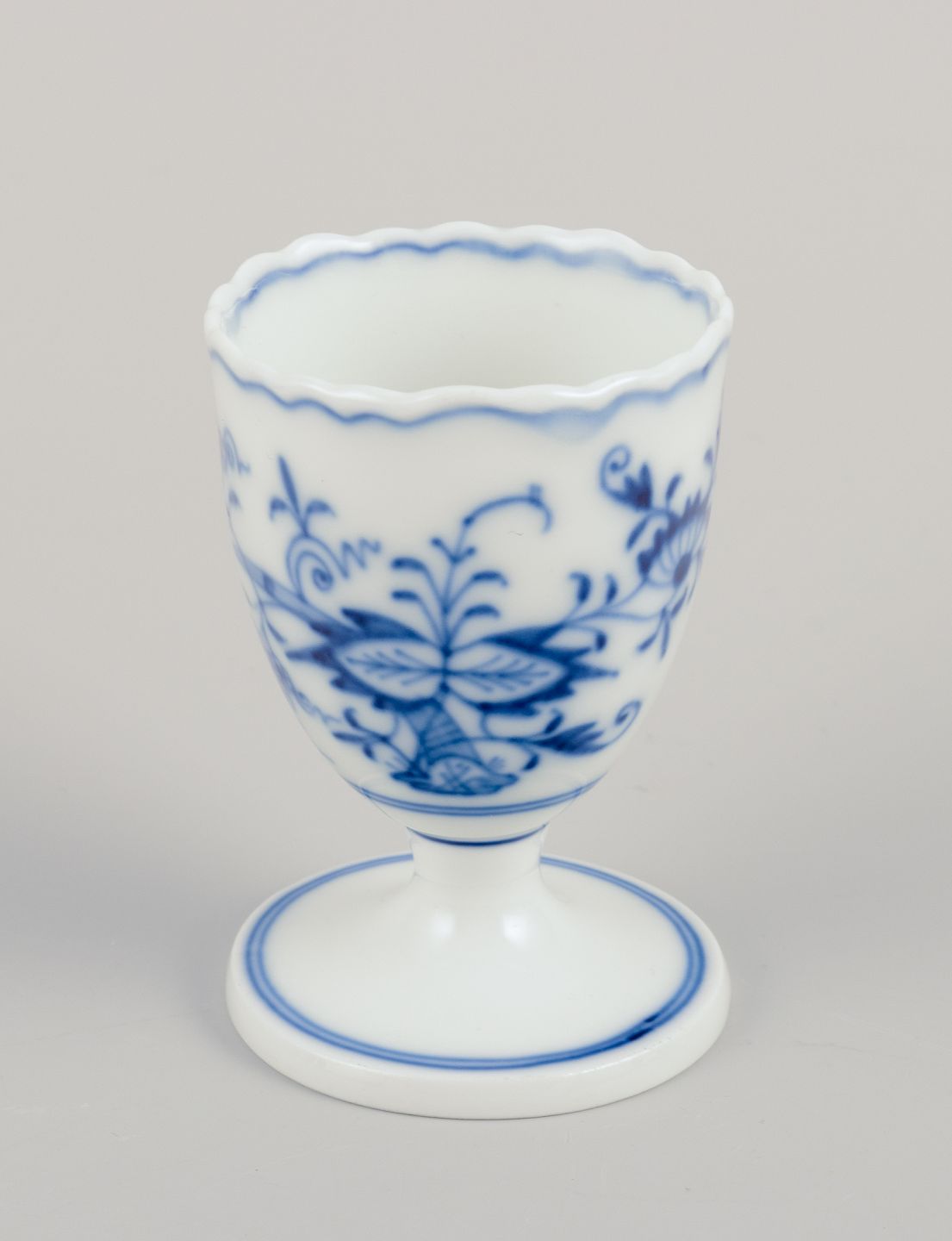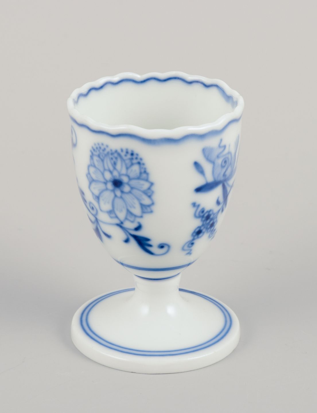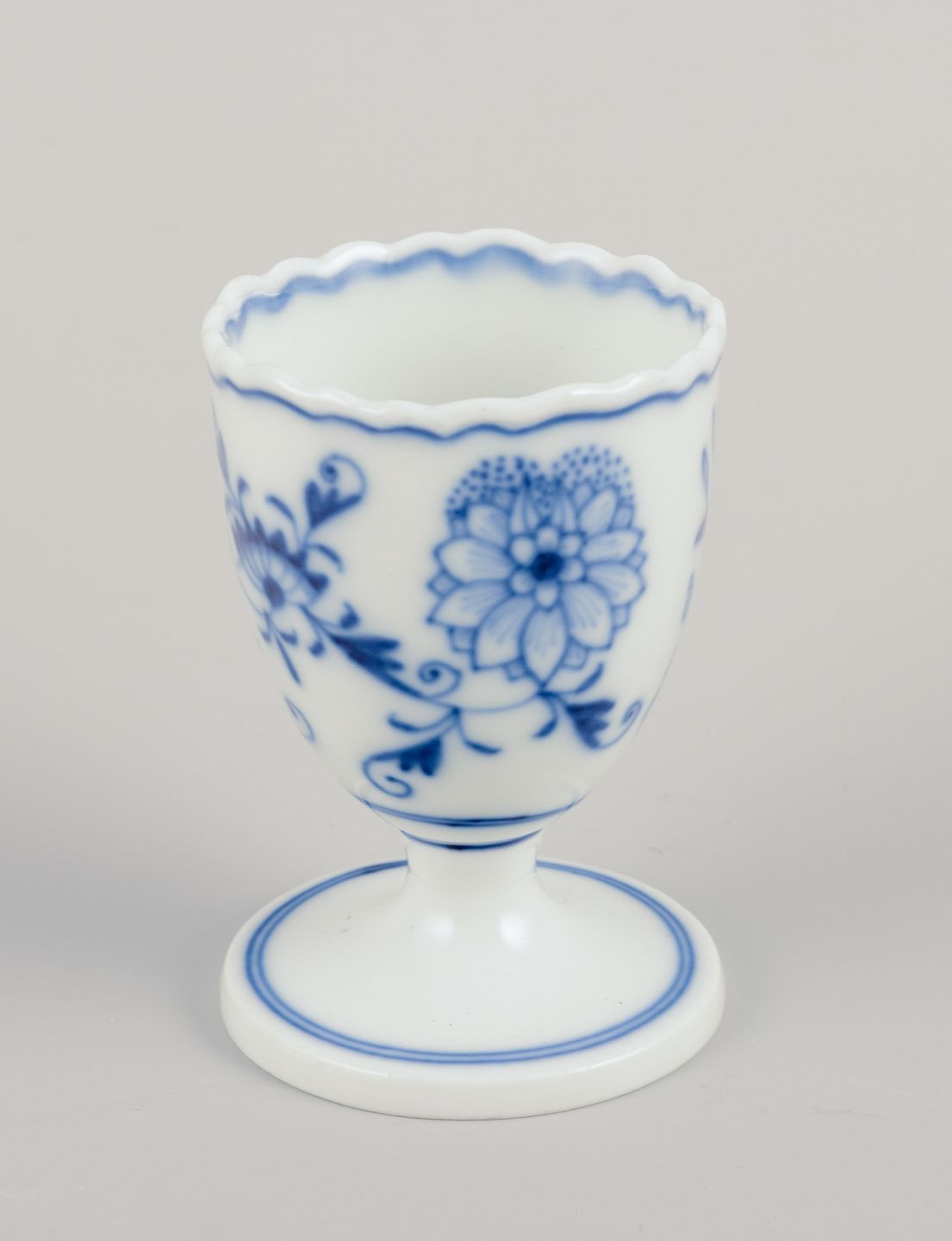 Meissen, Germany. Blue Onion pattern. Five egg cups. Hand-painted in blue. Approximately from 1900. Marked. Perfect condition. Third factory quality. Dimensions: Height 7.0 cm x Diameter 4.7 cm.