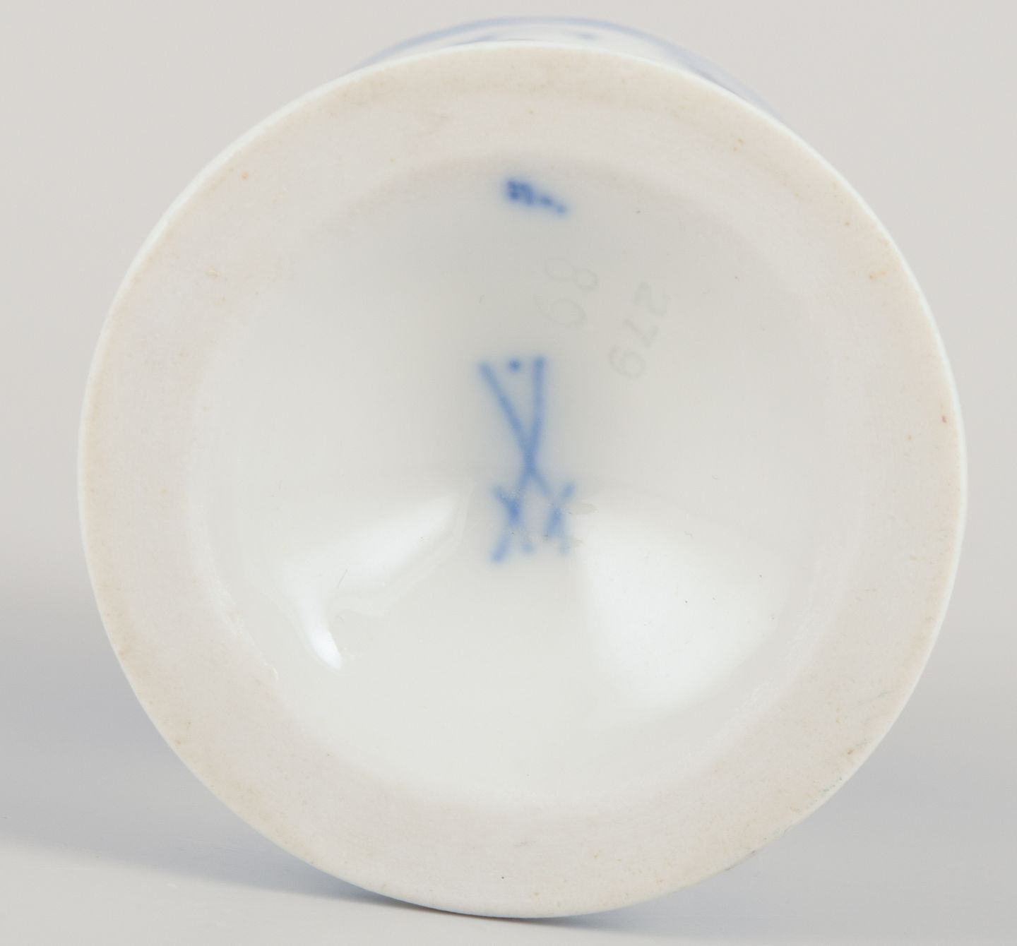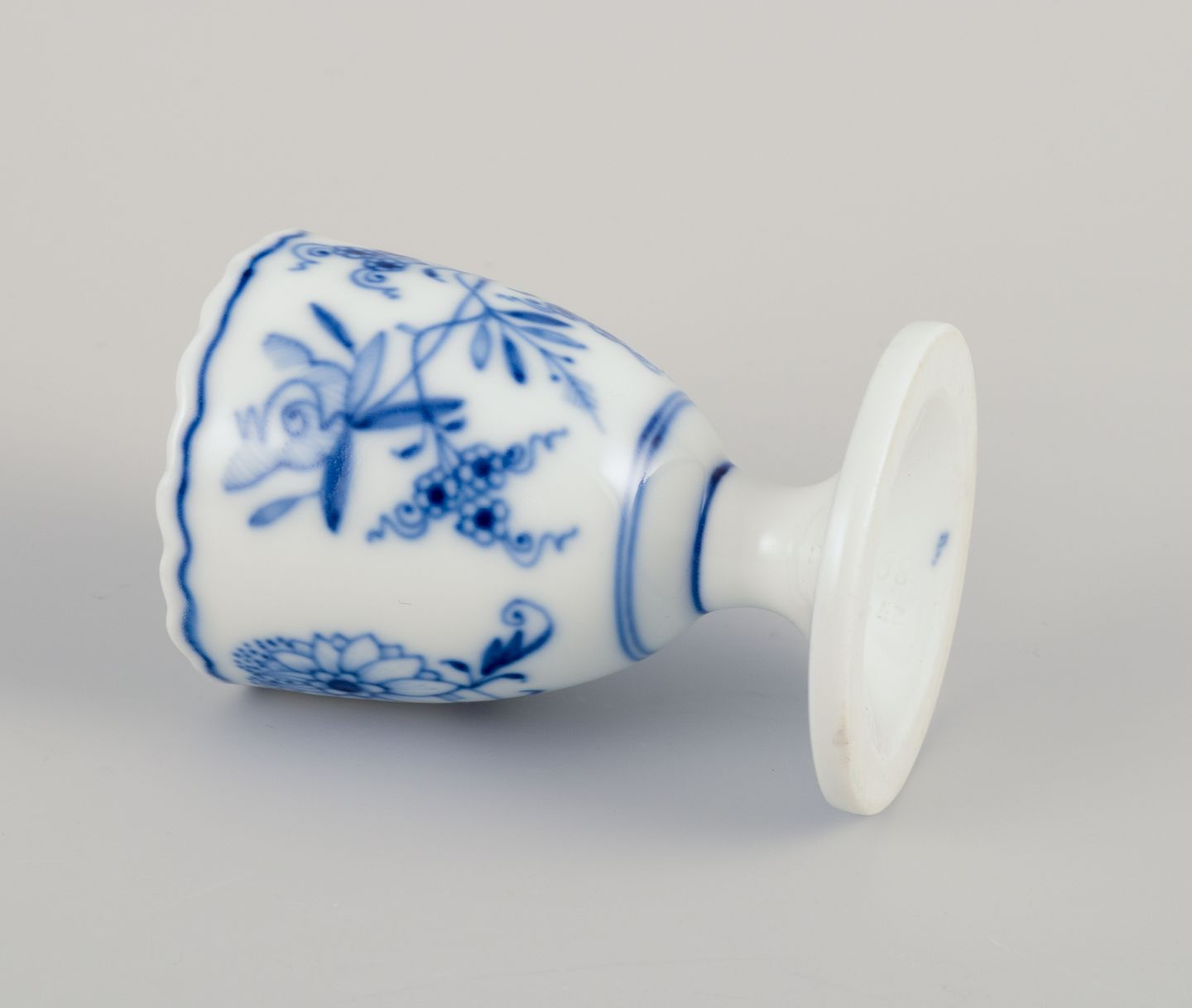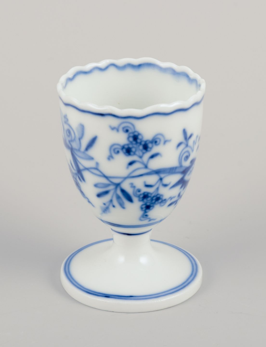 Meissen, Germany. Blue Onion pattern. Five egg cups. Hand-painted in blue. Approximately from 1900. Marked. Perfect condition. Third factory quality. Dimensions: Height 7.0 cm x Diameter 4.7 cm.