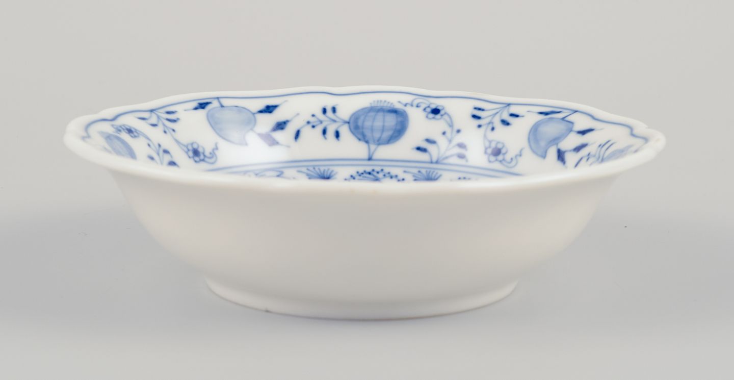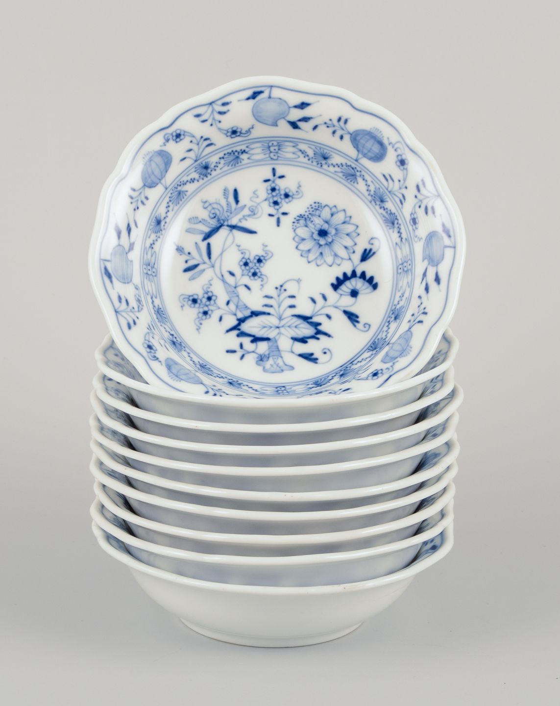 Meissen, Tyskland. Løgmønstret. Et sæt på ti små skåle. Håndmalet i blåt. Ca. 1900. Stemplet. Perfekt stand. Tredje sortering. Mål: D 12,0 cm. x H 3,0 cm.