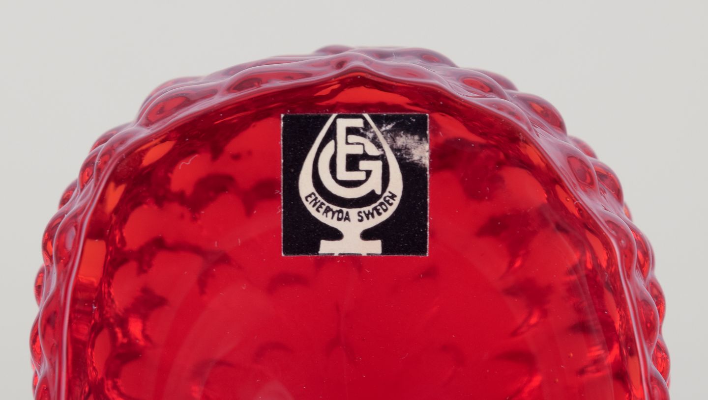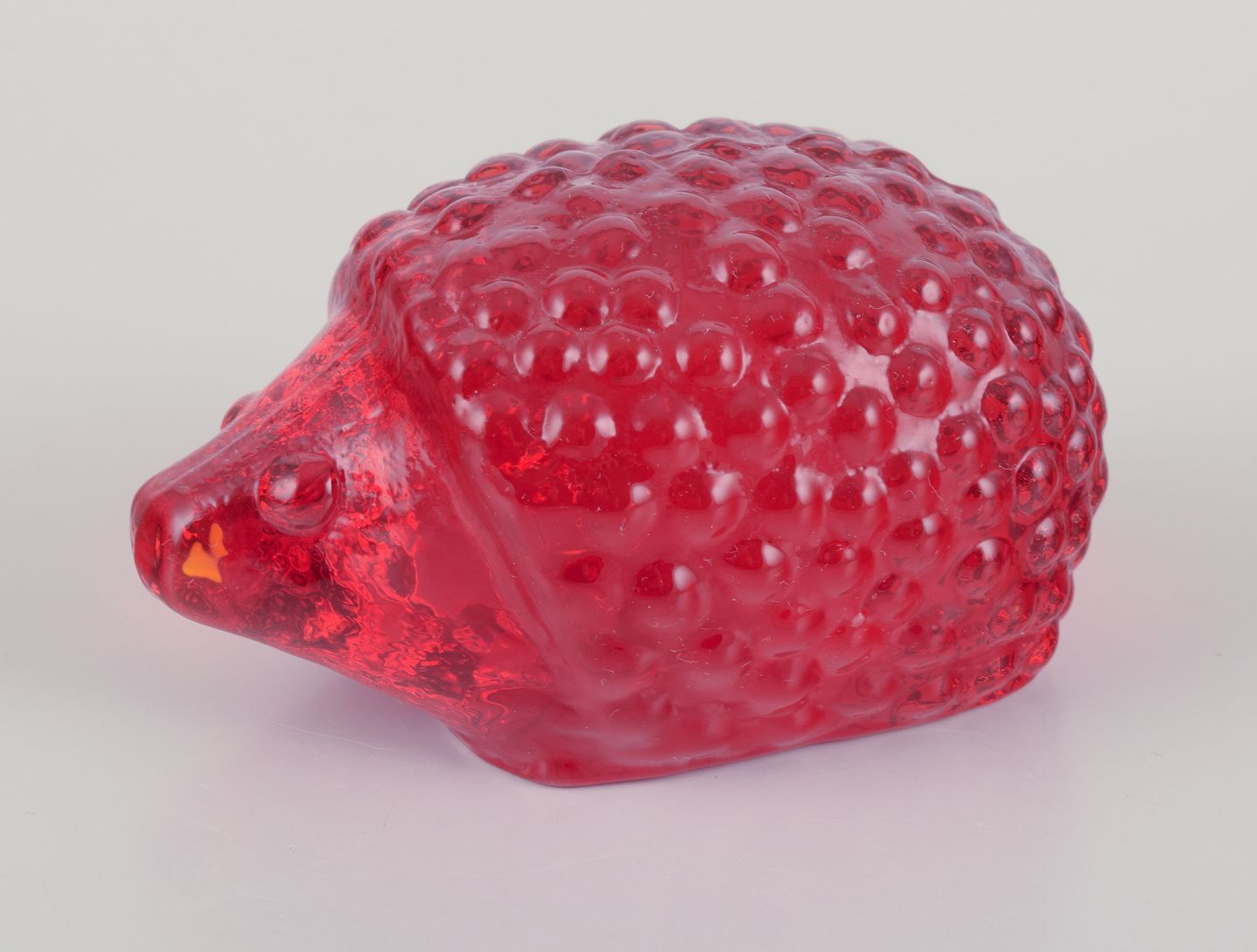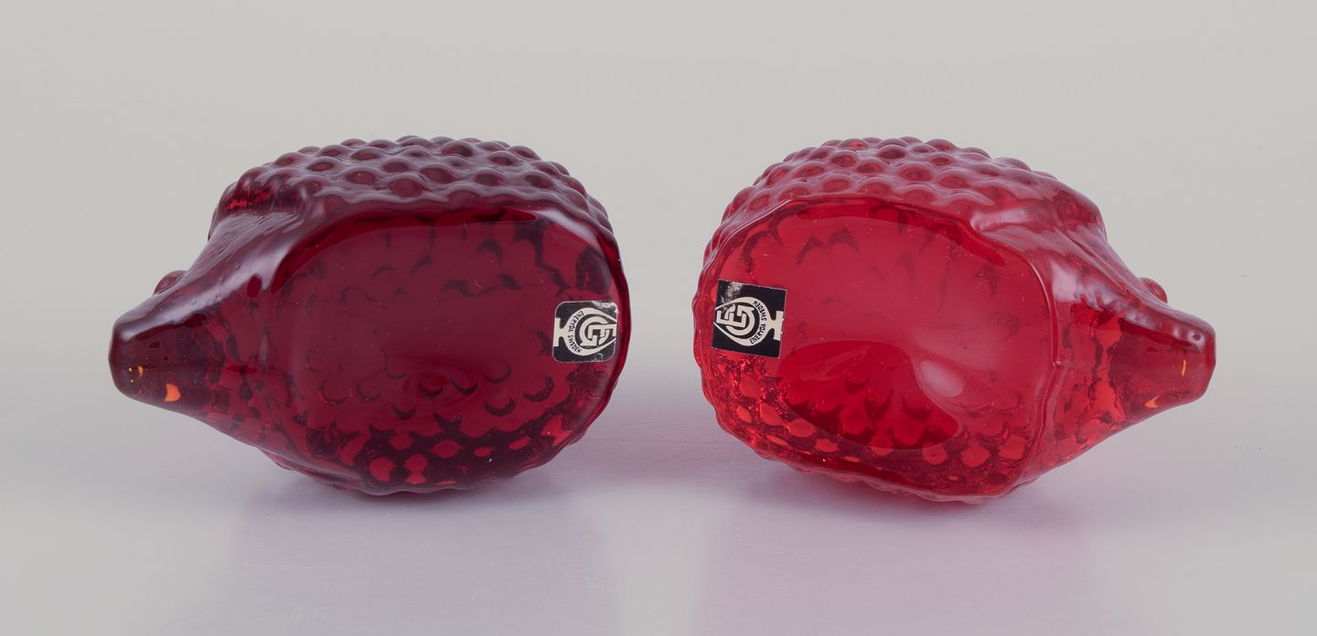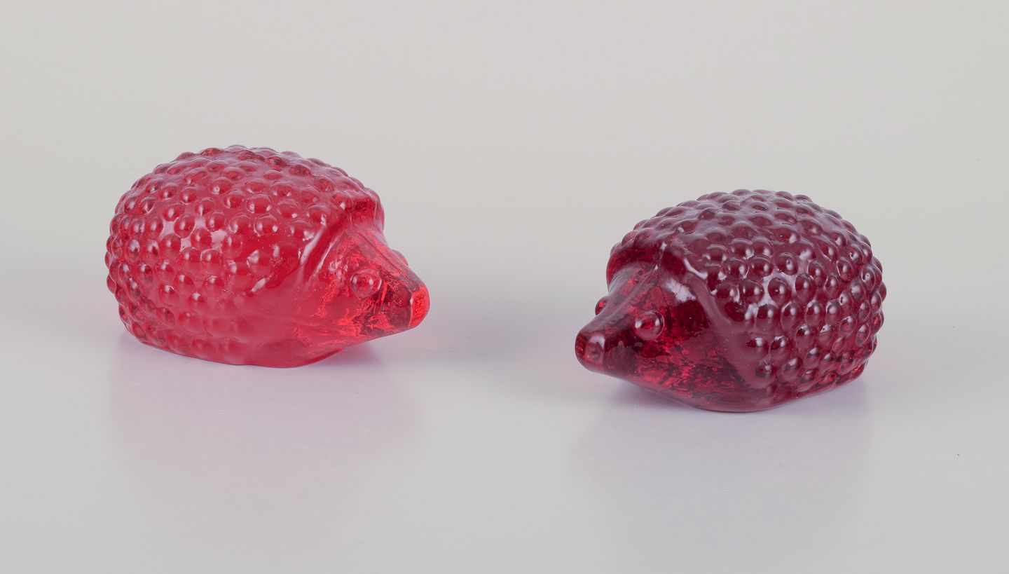 Swedish glass artist, Eneryda, Sweden. Two hedgehogs in two shades of red art glass. From around 1970. With label. In perfect condition. Dimensions: L 10.0 cm x W 6.0 cm x H 5.5 cm.