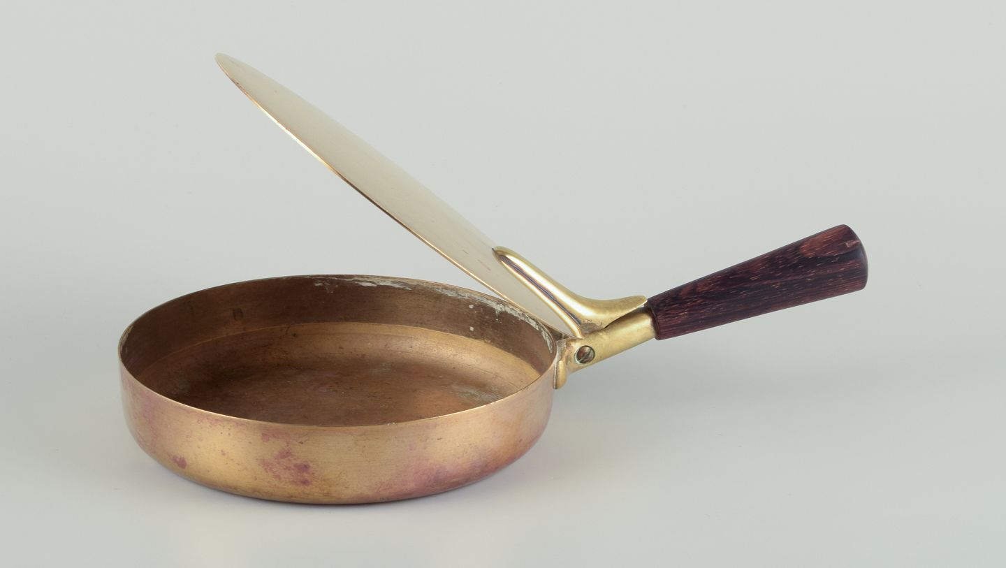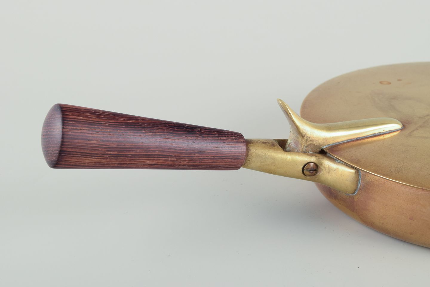 Illums Bolighus, lågkasserolle i messing. Skæft i træ.