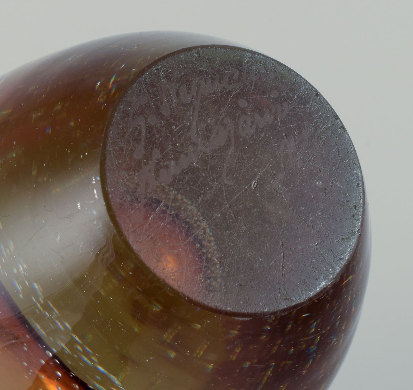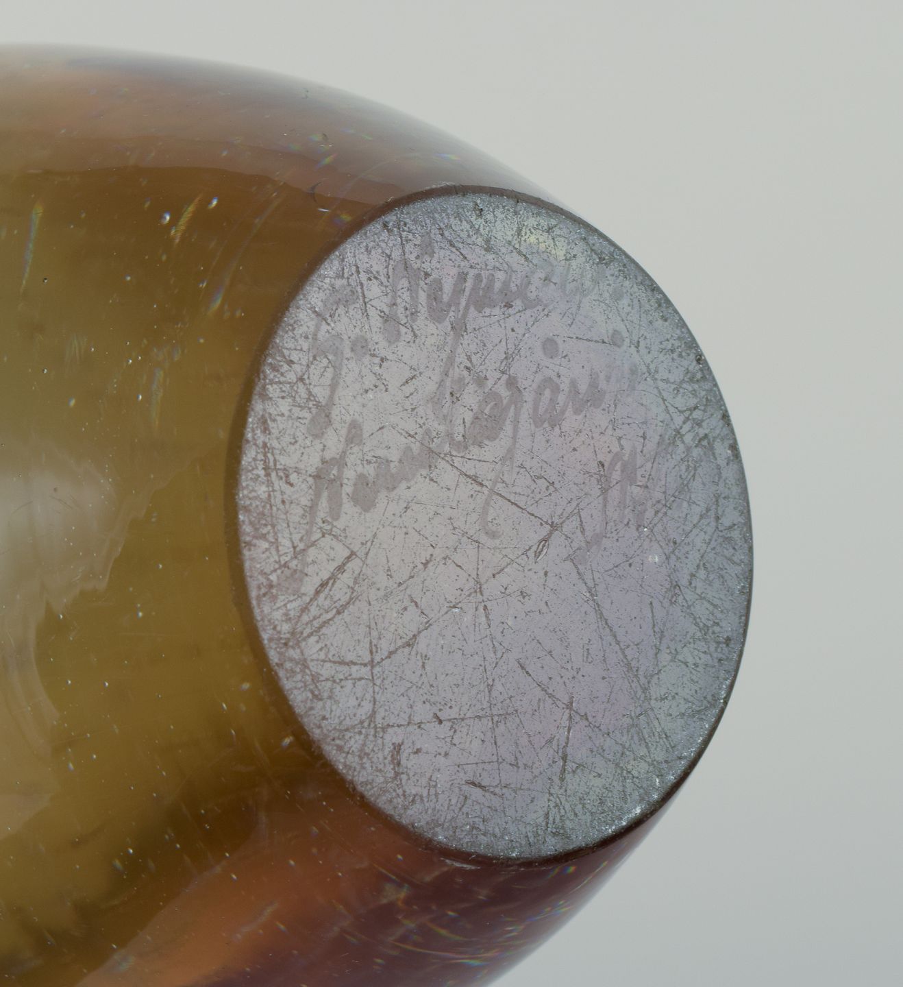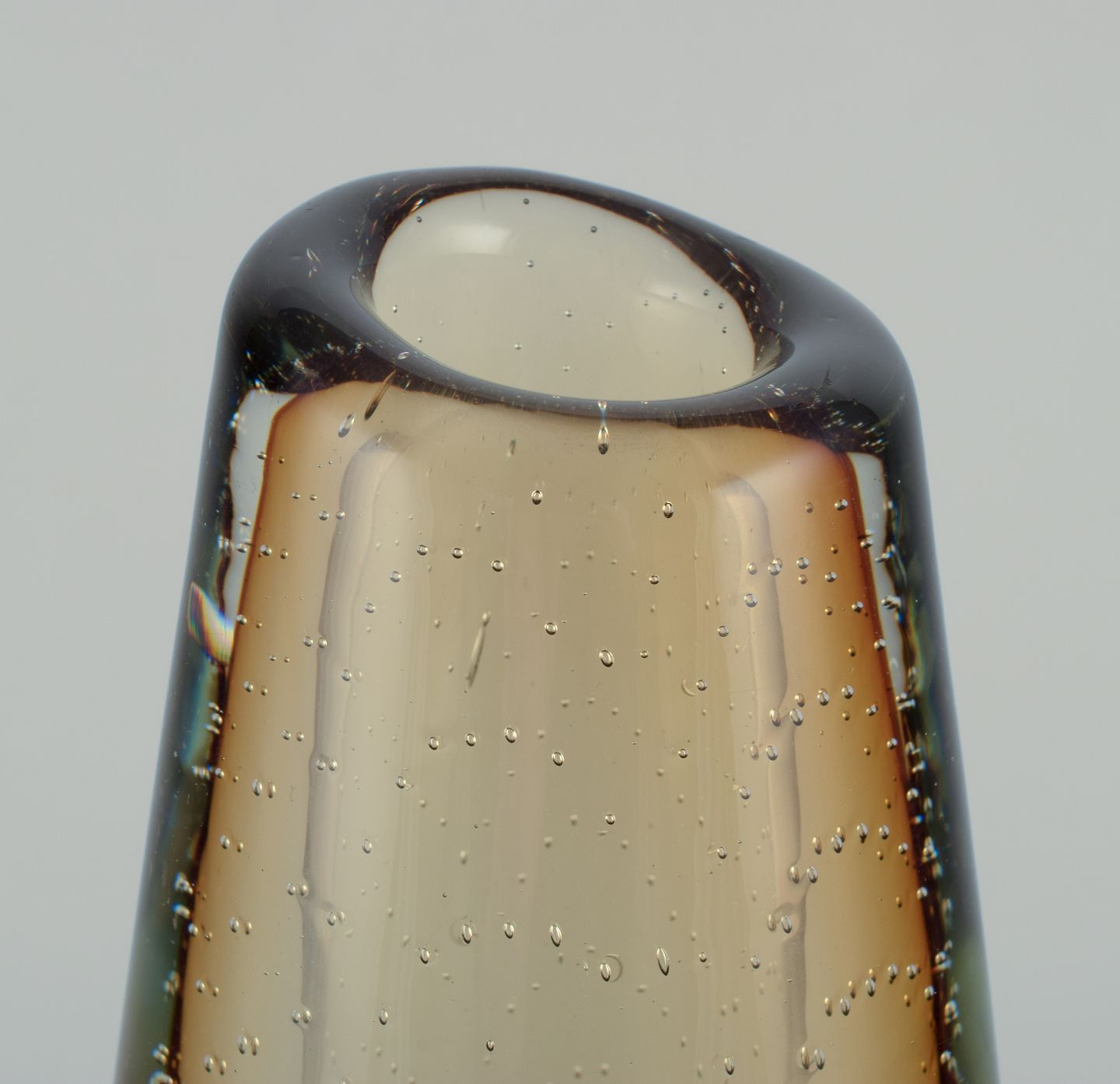 Stor sjælden model. Mundblæst kunstglas med indlagte luftbobler.