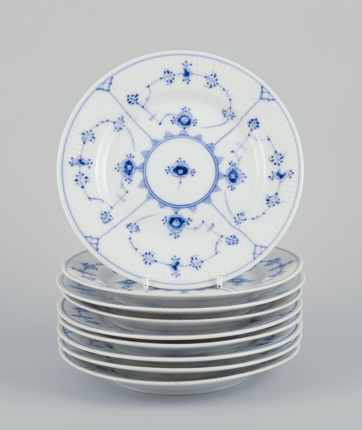 Royal Copenhagen Blue Fluted Plain. Nine plates in porcelain. Hand-painted. Model 1/180. From the 1930s to the 1960s. Second factory quality. Marked. Perfect condition. Dimensions: 17.2 cm.