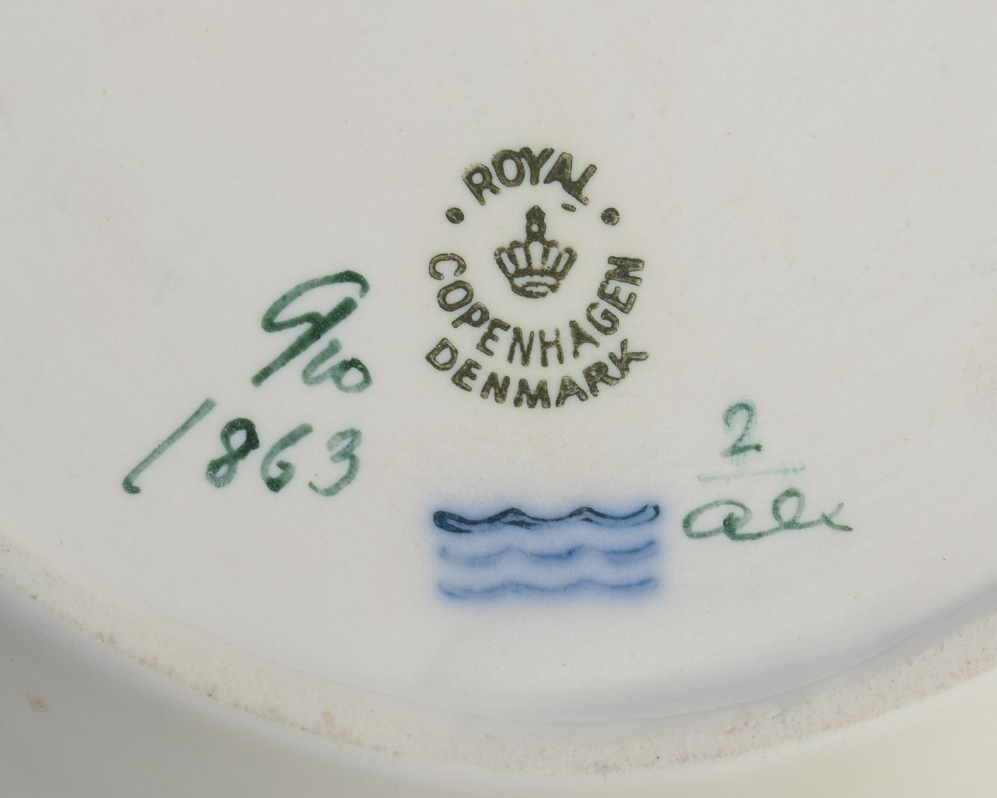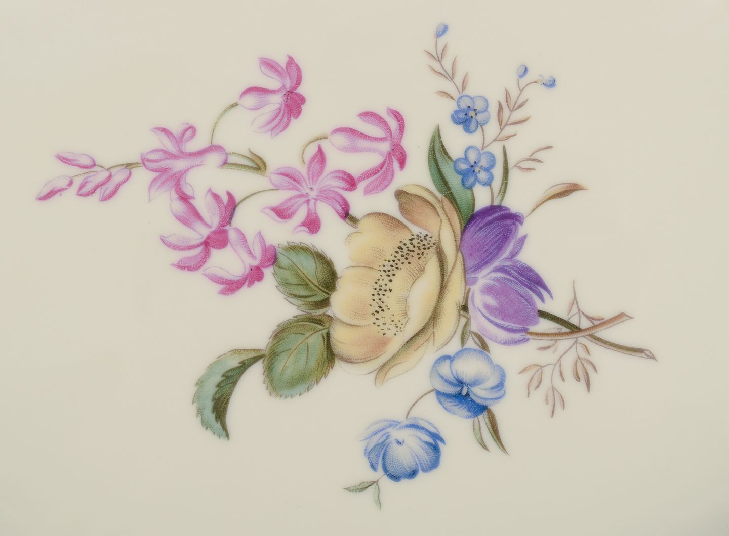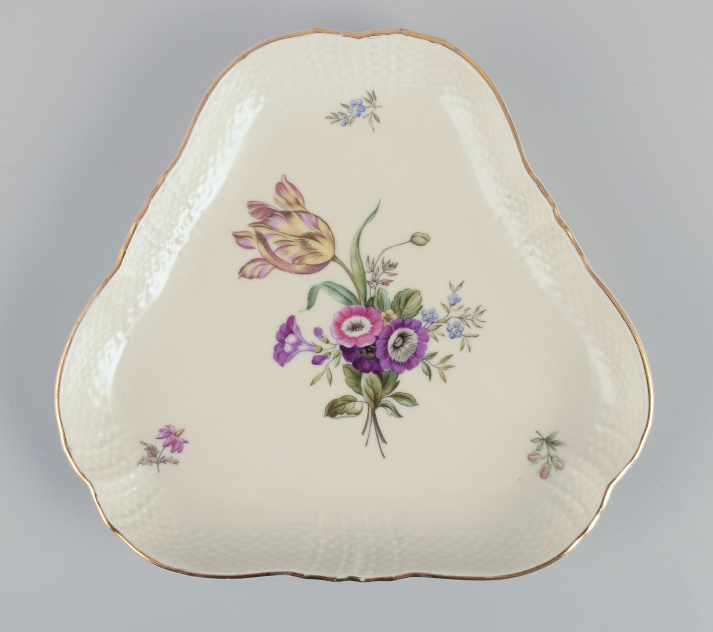 Royal Copenhagen ”Frijsenborg”. To fade og vase i porcelæn håndmalet med blomster og guldkant.