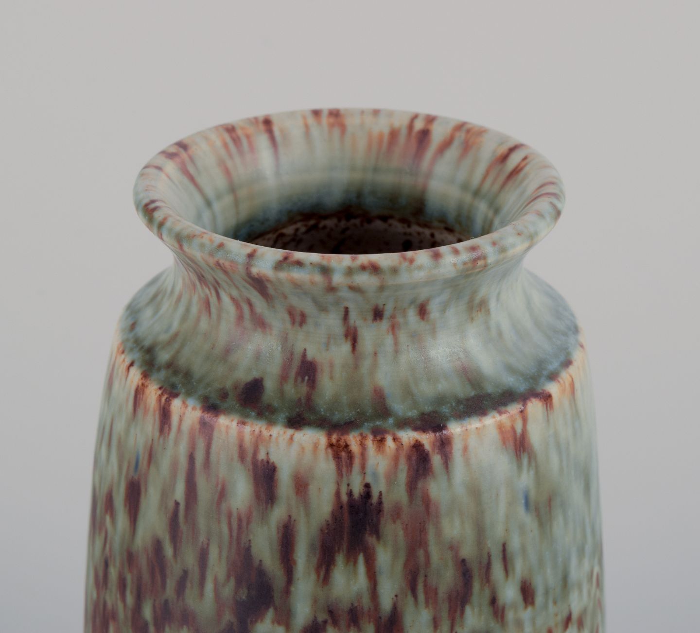 E. L. for Höganäs, Sverige. Unika keramikvase. Glasur i glå, grønne og blå toner. Dateret 1978 Stemplet EL samt dateret 78. Perfekt stand. Mål: H 14,0 cm. x D 7,5 cm.