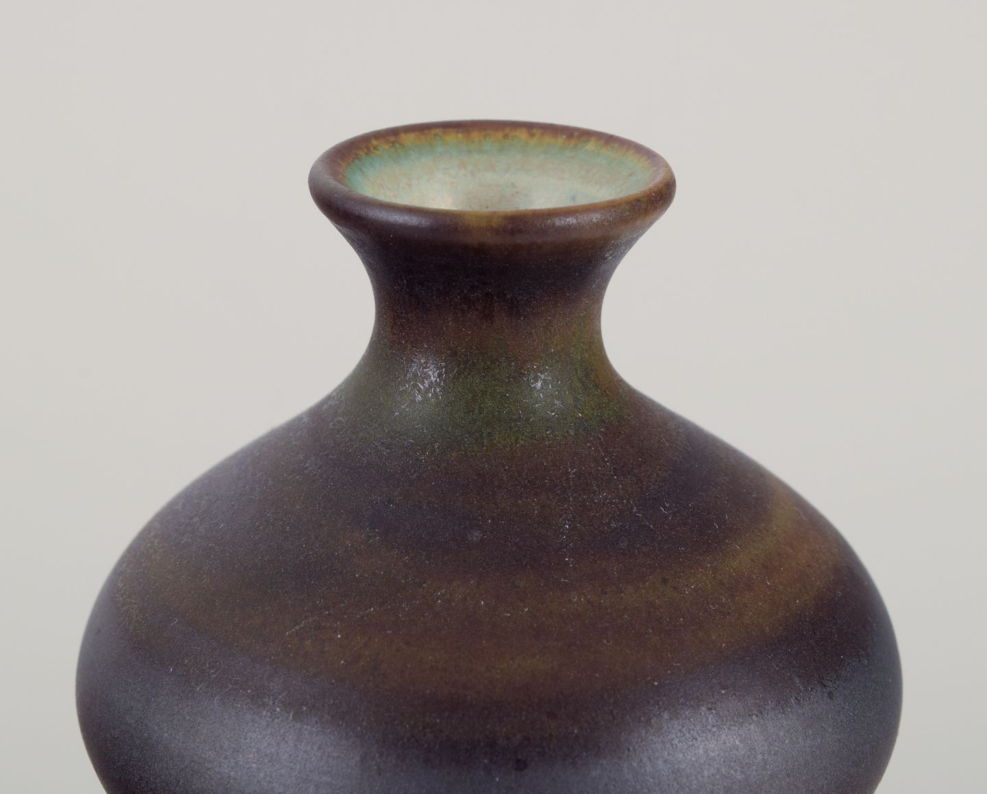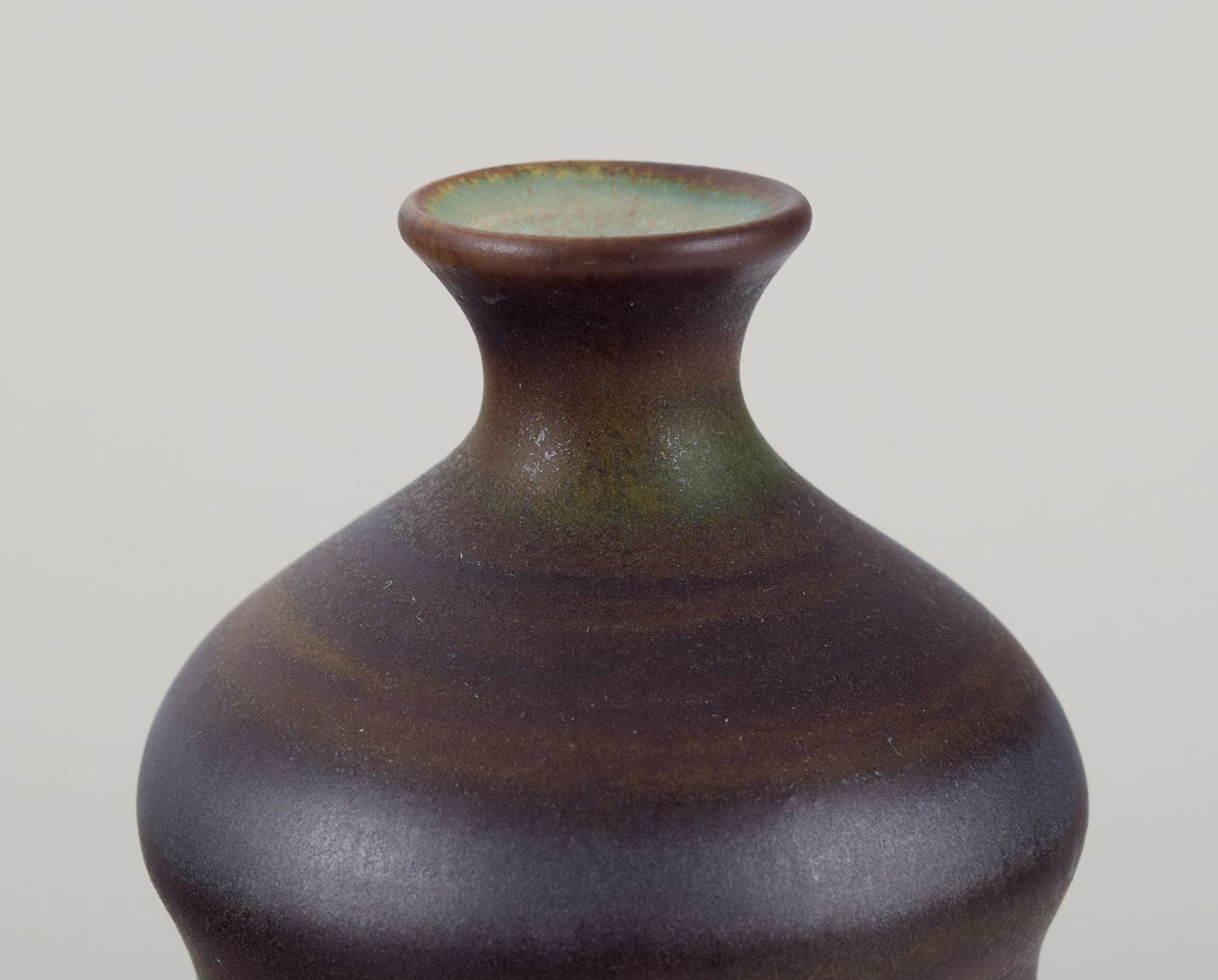 John Andersson (1899-1969) for Höganäs, Sweden. Unique ceramic vase. Glaze in brown-green tones. Approximately from the 1960s. Marked. In perfect condition. Dimensions: Height 13.5 cm x Diameter 8.0 cm.