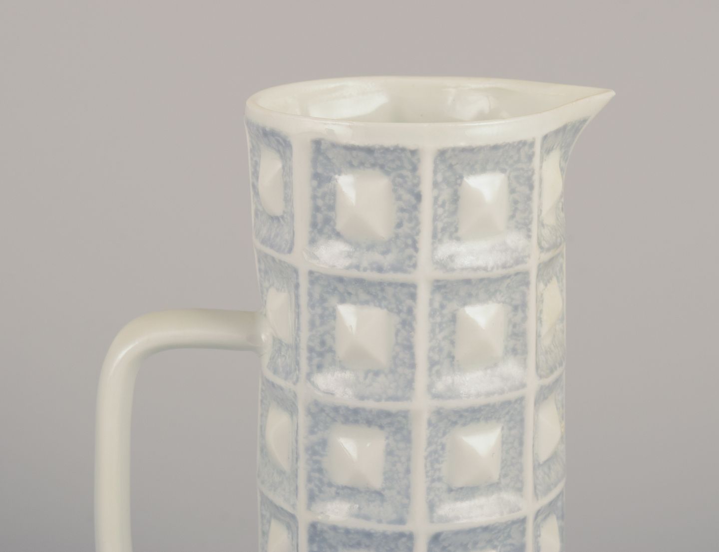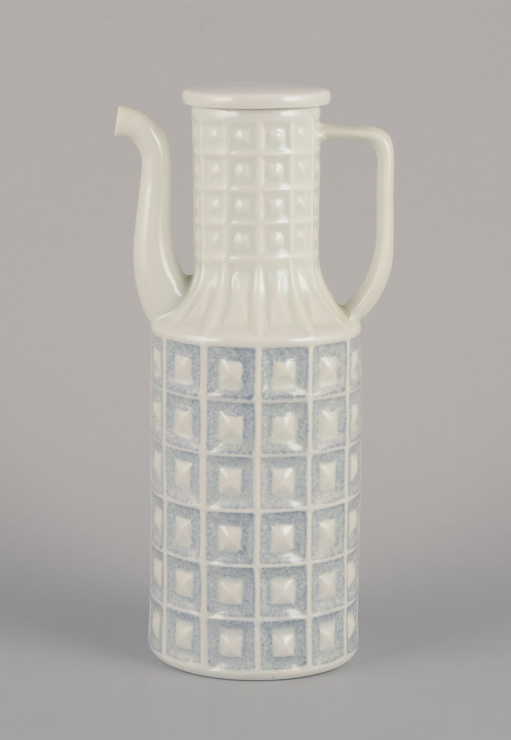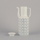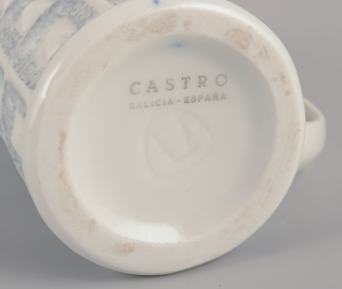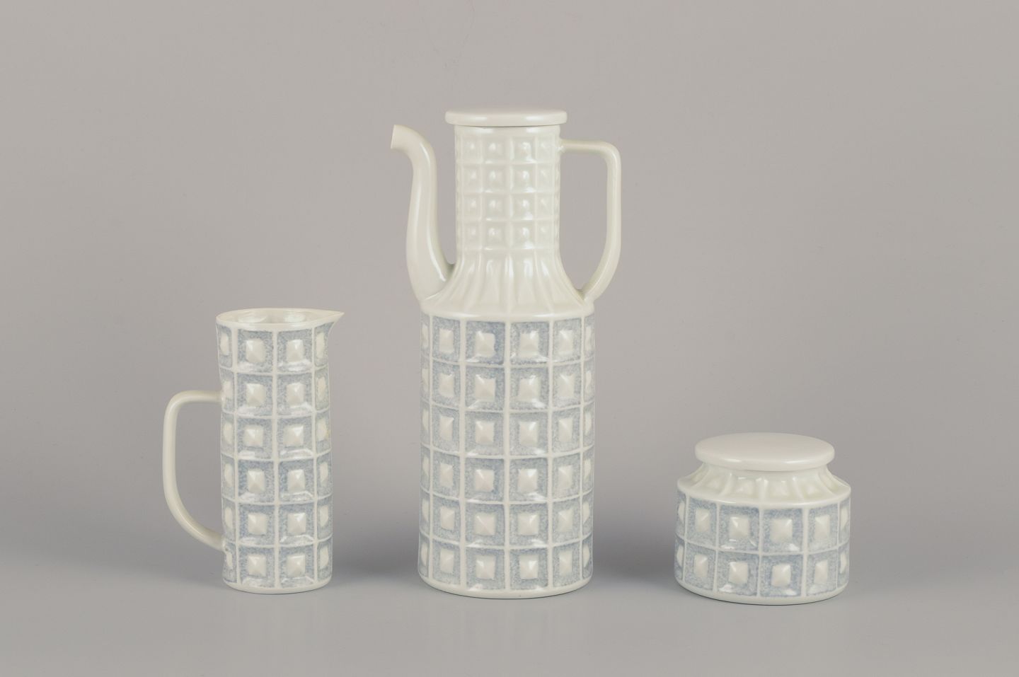 ”Castro”, Spanien. Kaffekande, sukkerskål og flødekande i gråblå og hvidt porcelæn.