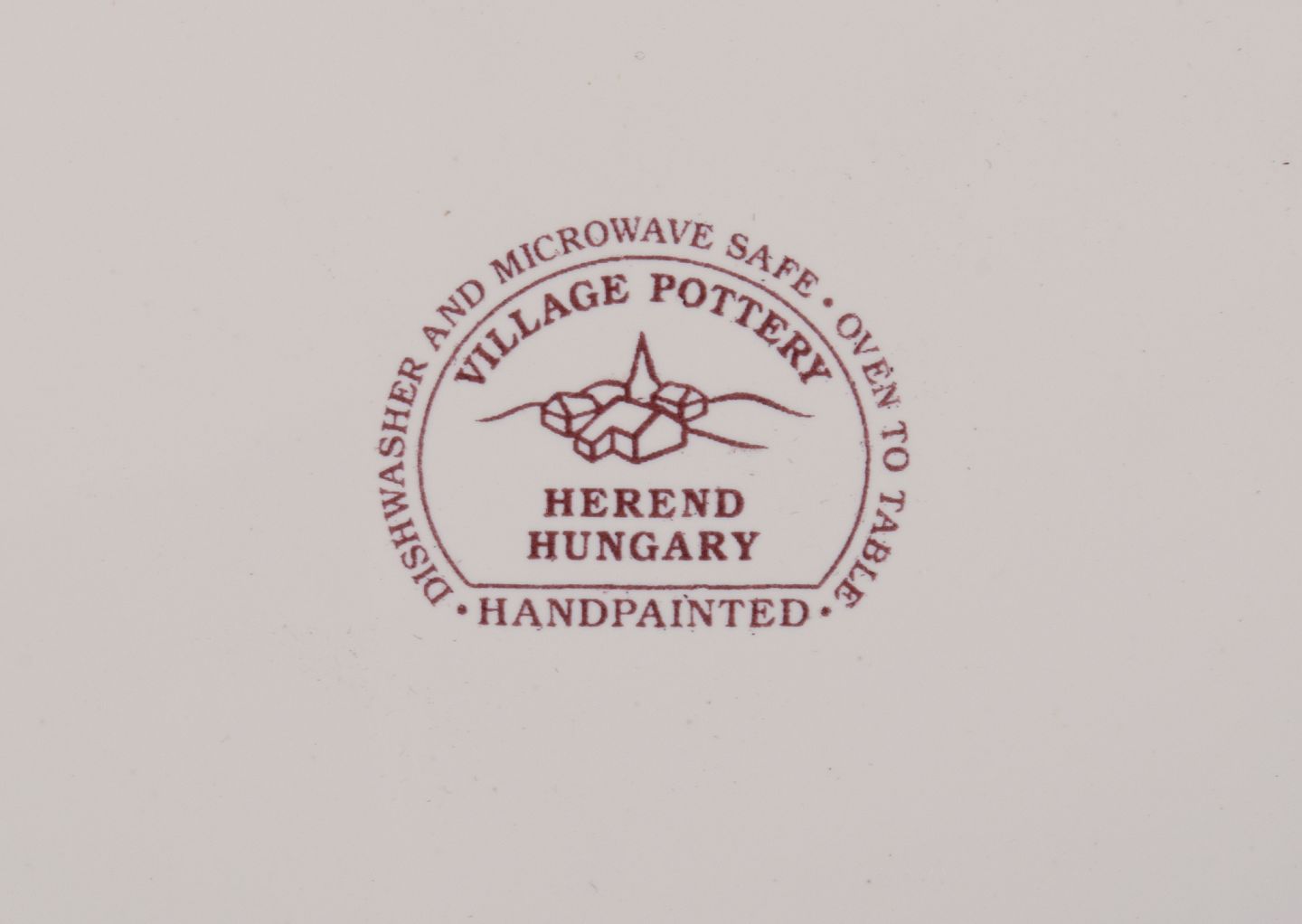 Herend, Ungarn. To store salatskåle samt et salt og pebersæt i keramik. Håndmalet. Ca. 1980. Stemplet. I flot stand med almindeligt brugspræg. Skål: B 31,0 cm. x H 9,5 cm. Saltbøsse: H 7,0 cm. x D 5,0 cm.