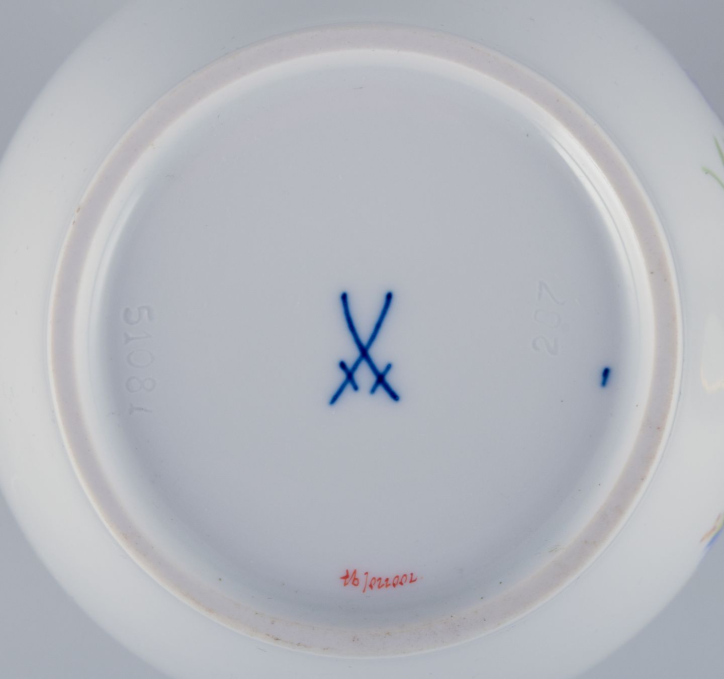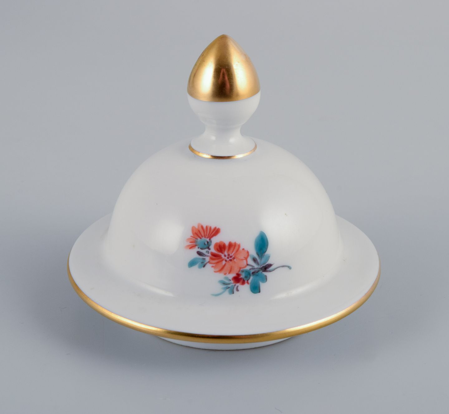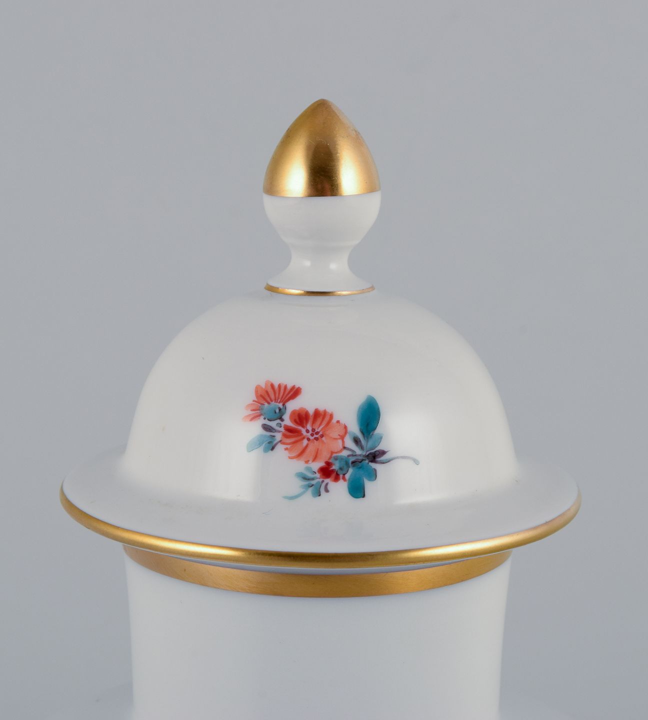 Meissen, lågvase i porcelæn. Polykrome blomstermotiver i overglasur. Håndmalet. Gulddekoration. Midt 1900-tallet. Stemplet. Første sortering. Perfekt stand. Mål: H 22,0 cm. x D 11,0 cm.