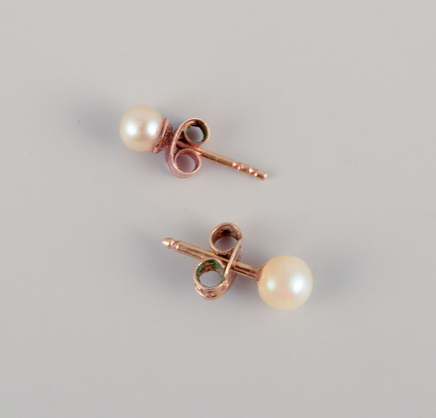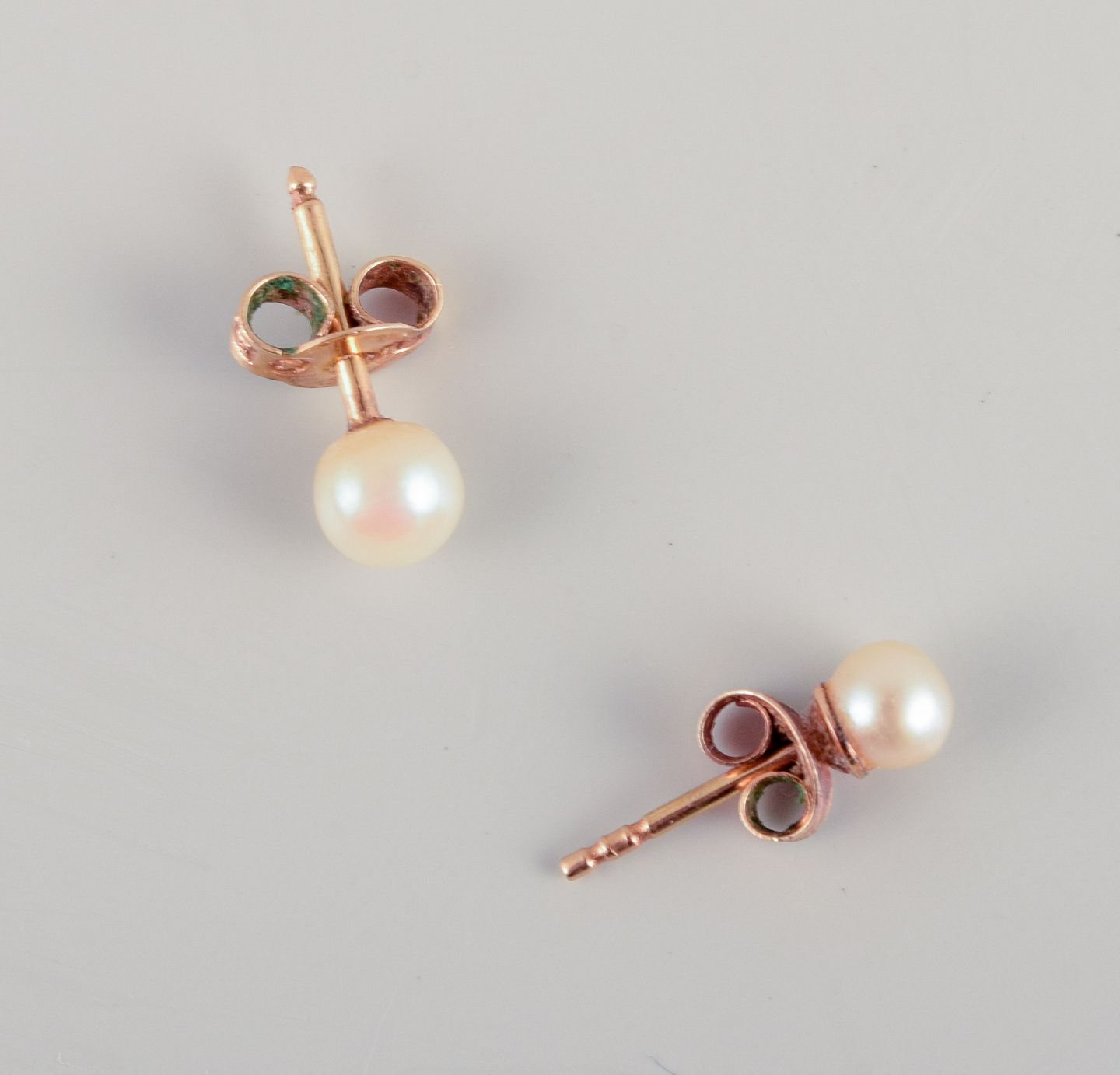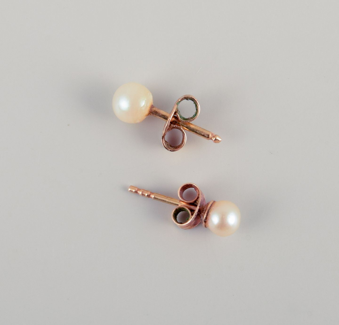 Svensk guldsmed. Et par klassiske ørestikker i 18 karat guld prydet med kulturperler.