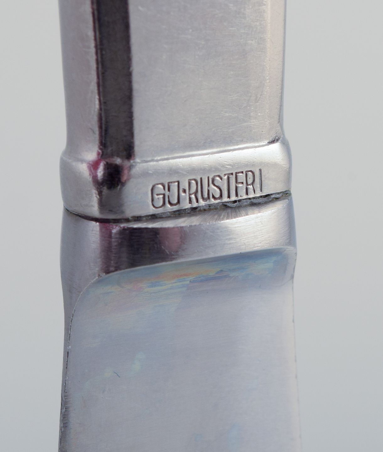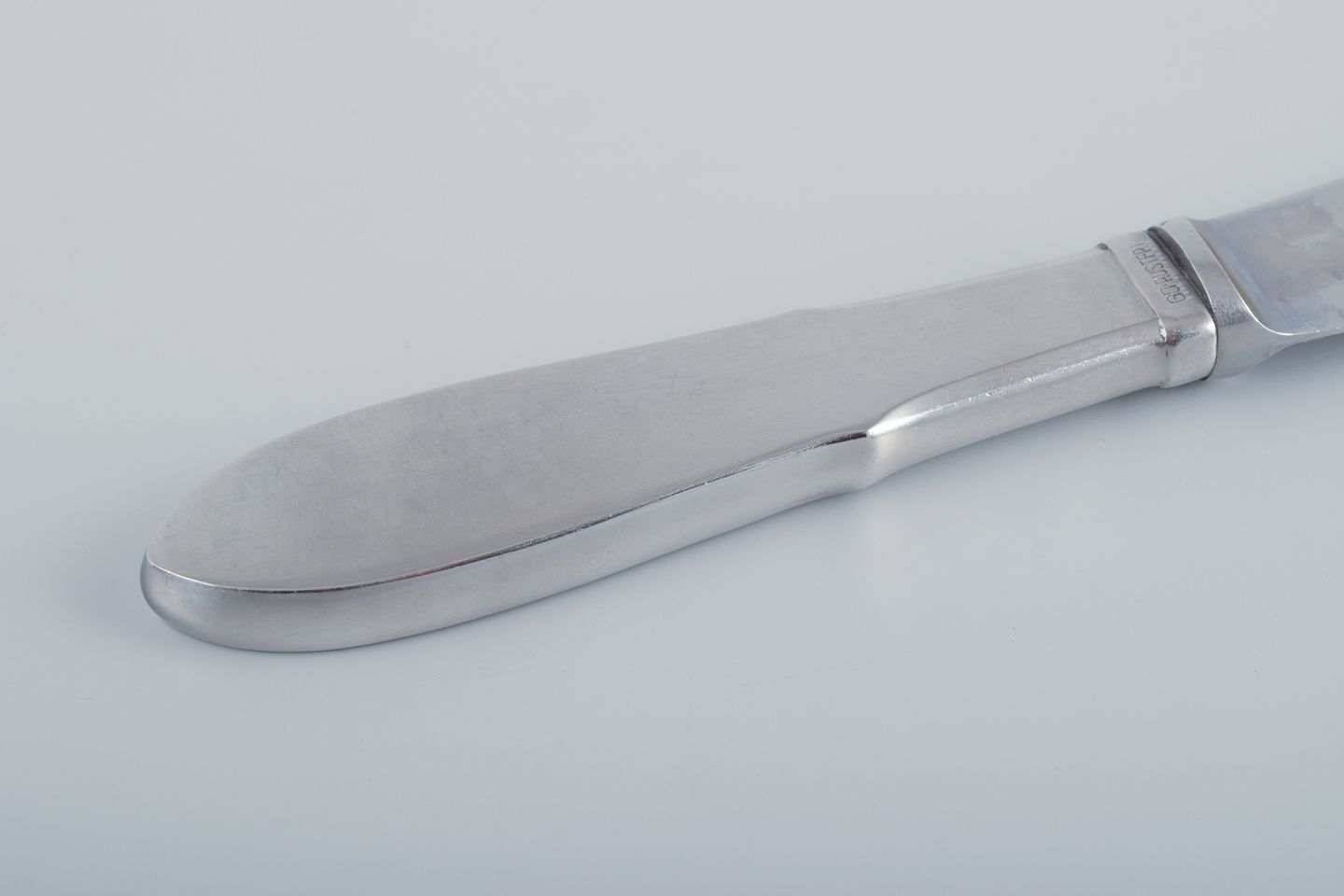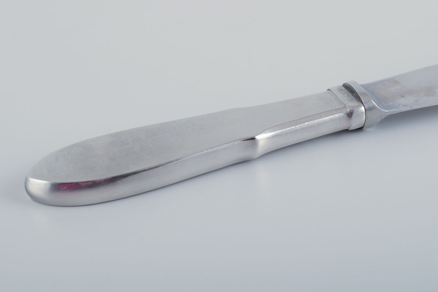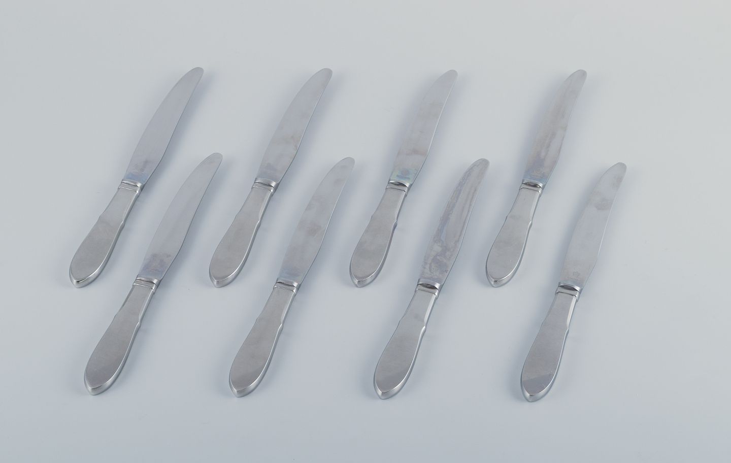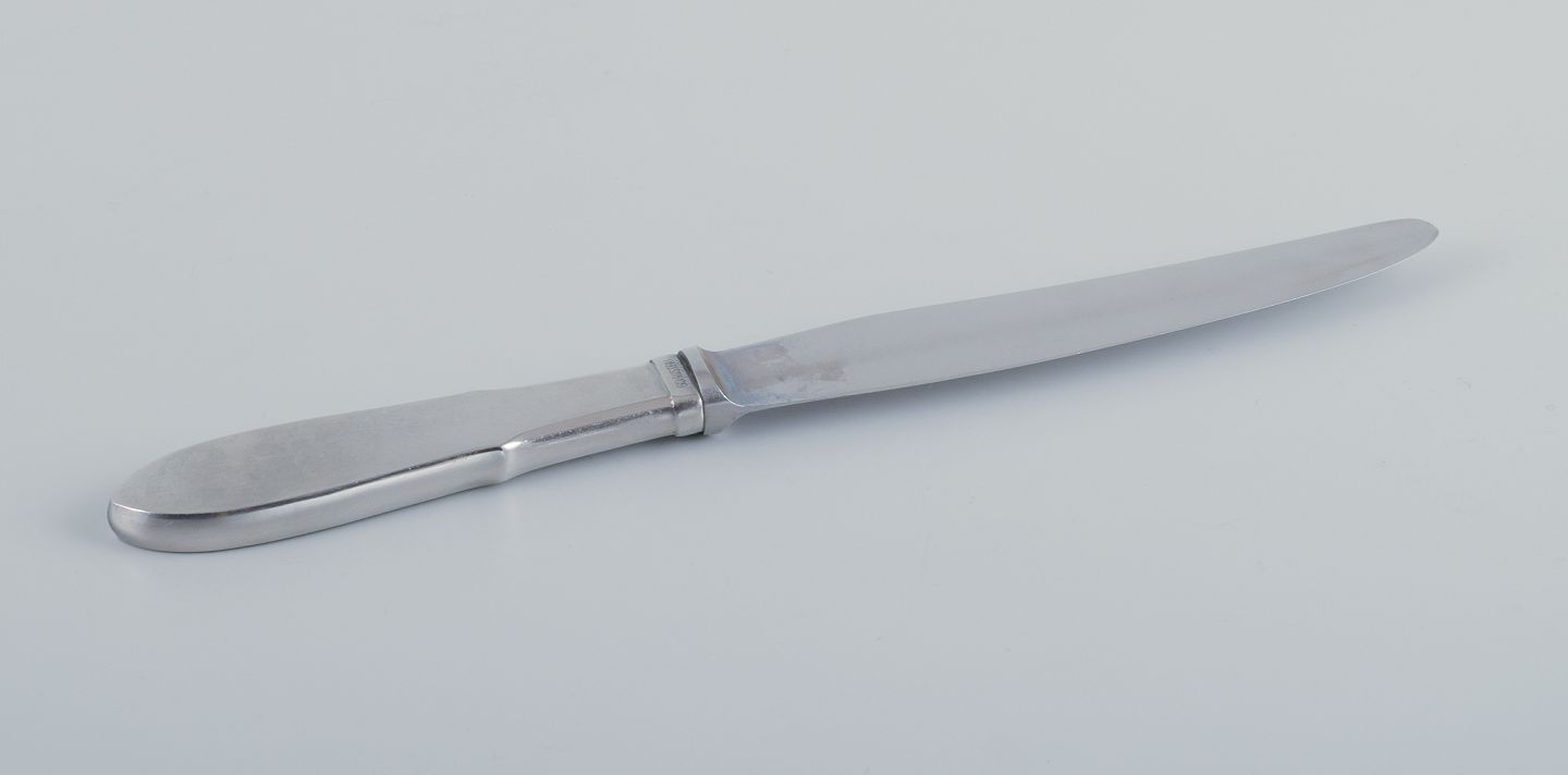 Gundorph Albertus for Georg Jensen. Eight "Mitra" dinner knives in stainless steel. Raadvad blades. Mid-20th century. In excellent condition. Marked. Dimensions: L 24.5 cm.