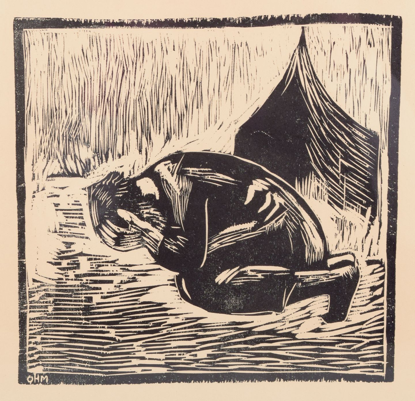 Olivia Holm-Møller, Danish artist, woodcut on paper.