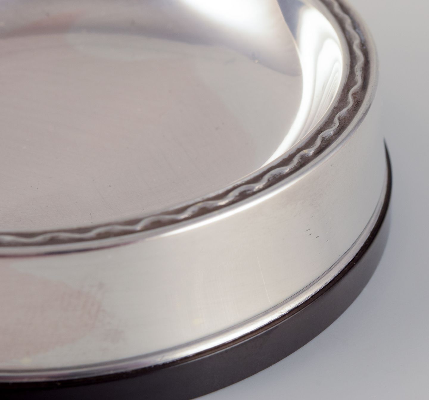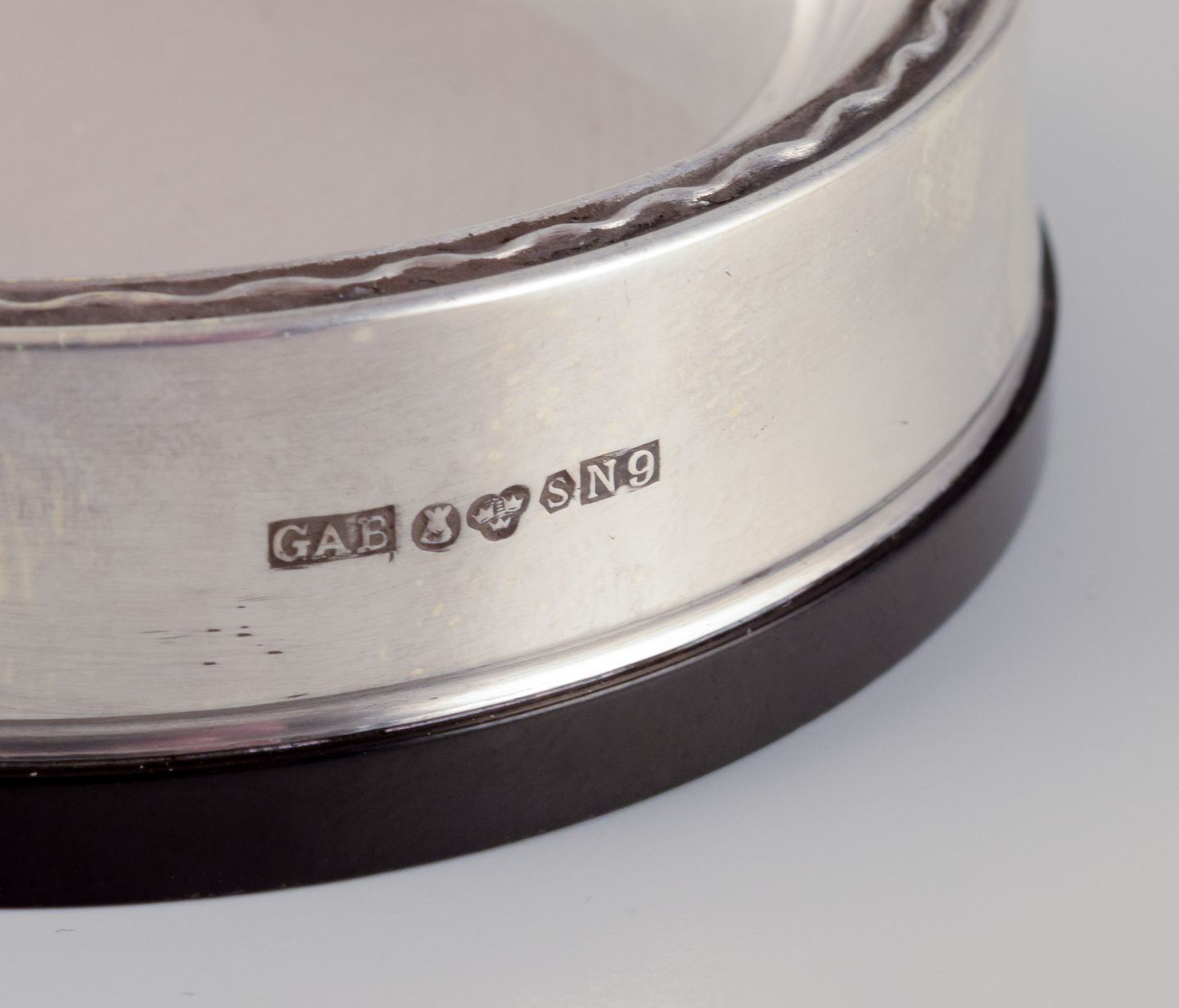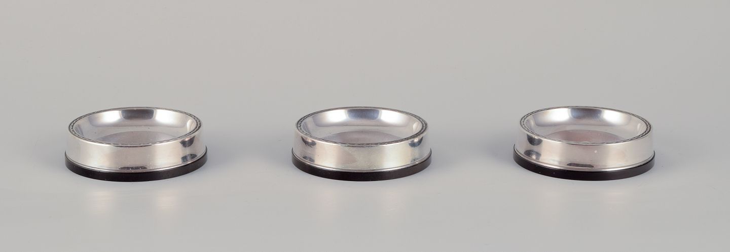 GAB (Guldsmedsaktiebolaget). Tre saltkar i tretårnet sølv og bakelit. Art deco. 1960’erne. Stemplet. I flot stand. Mål: D 7,0 cm. x H 1,9 cm.