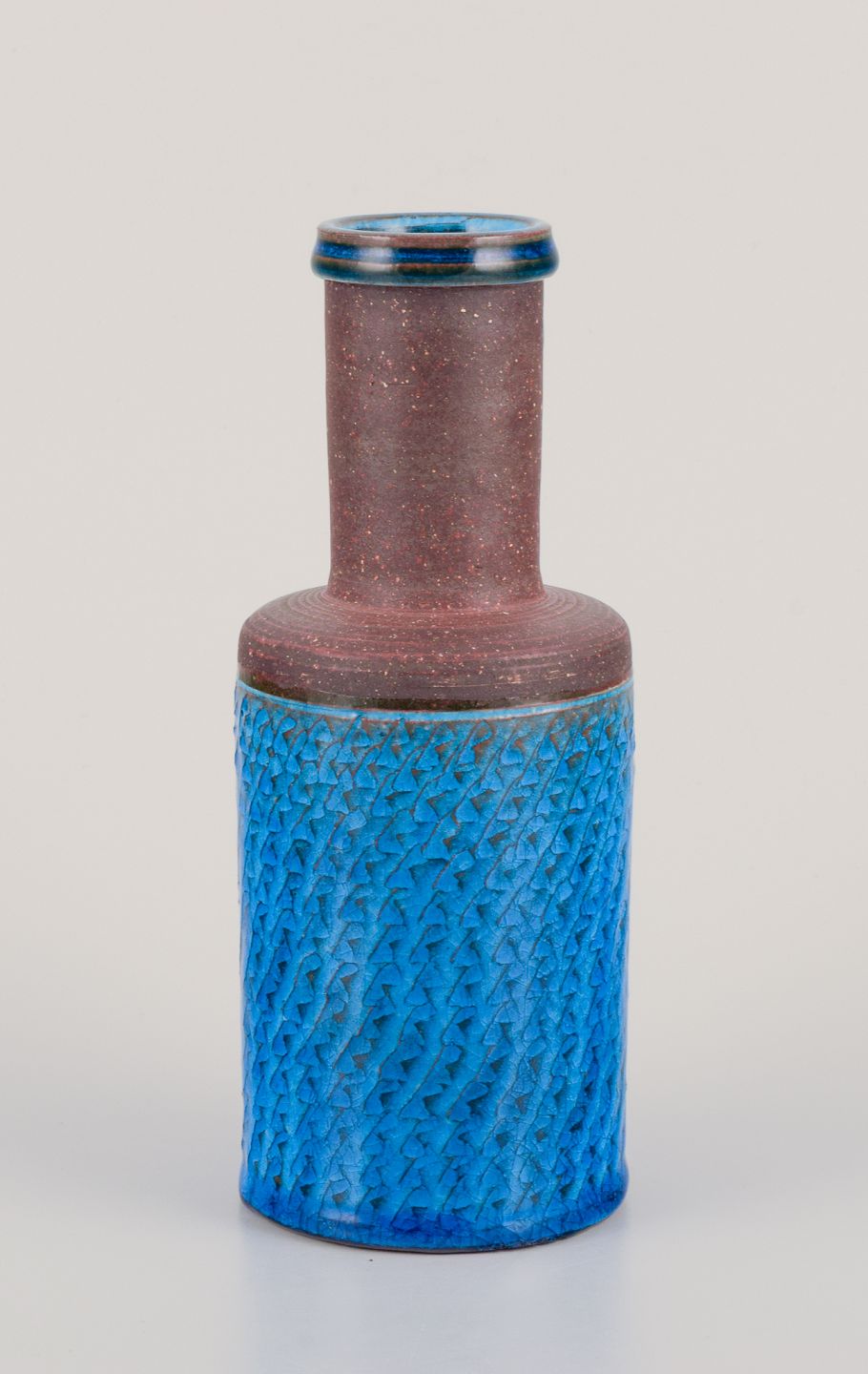 Nils Kähler for Kähler. Ceramic vase in azure glaze. 1960s/70s. Perfect condition. Signed. Dimensions: Height 18.5 cm. x diameter 7.0 cm.