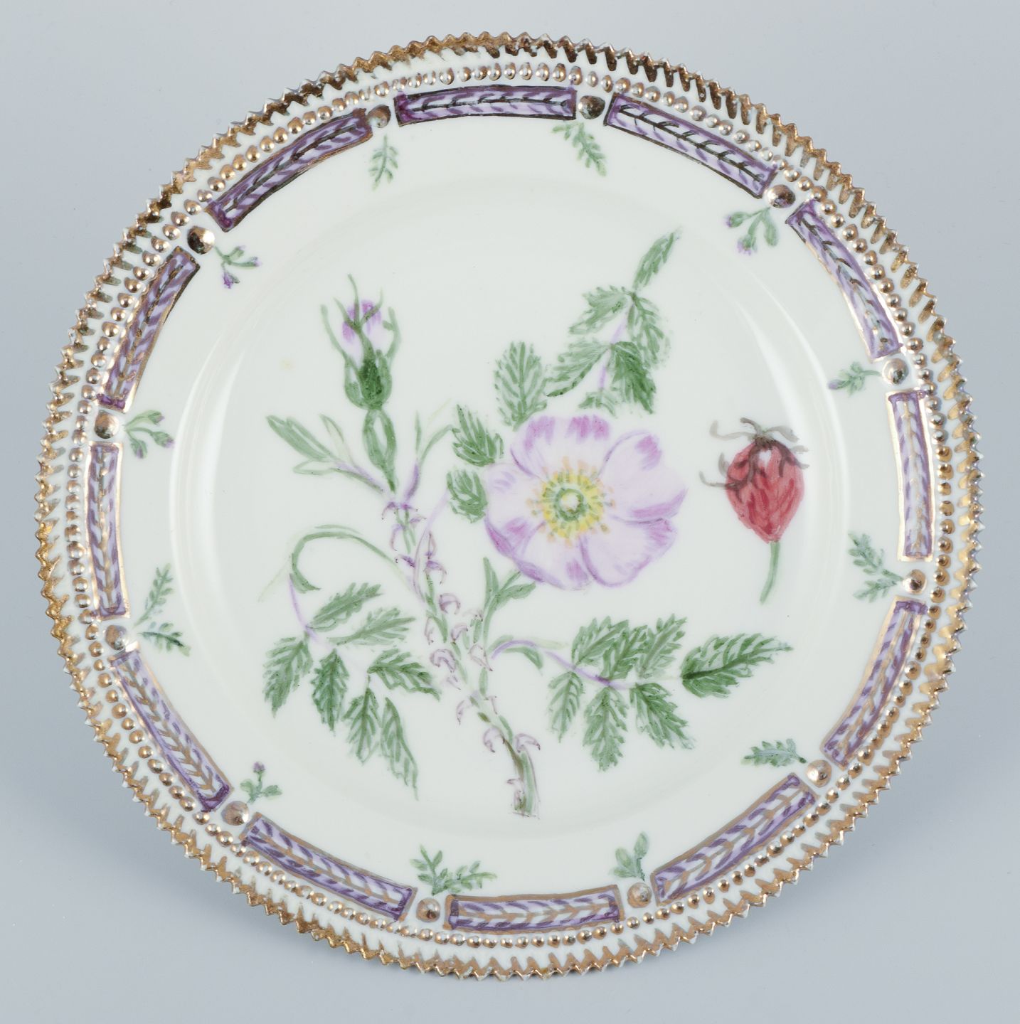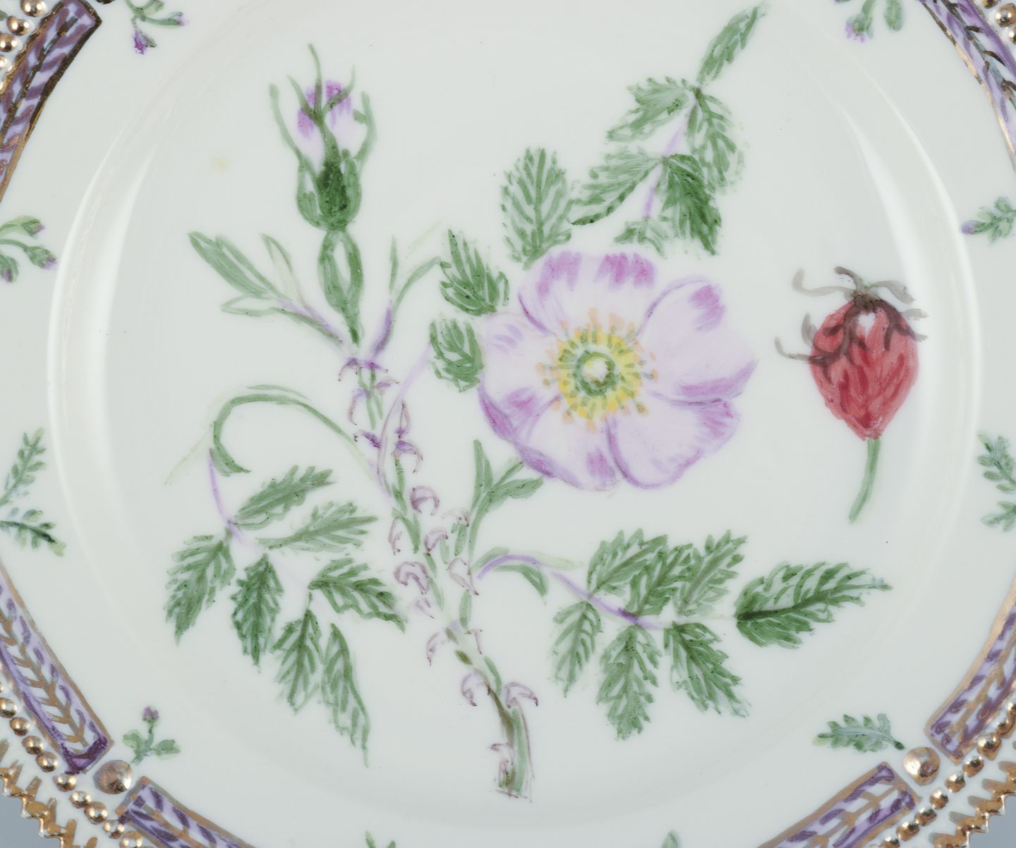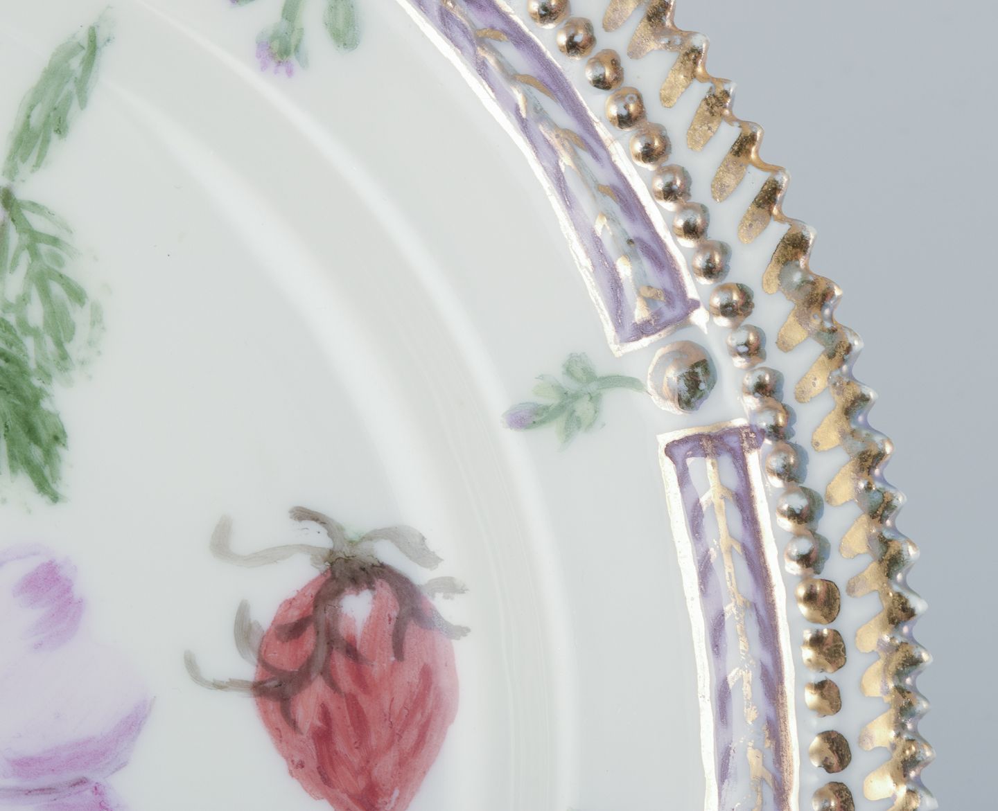 Frokosttallerken i håndmalet porcelæn med blomster og gulddekoration. Hjemmedekoreret.