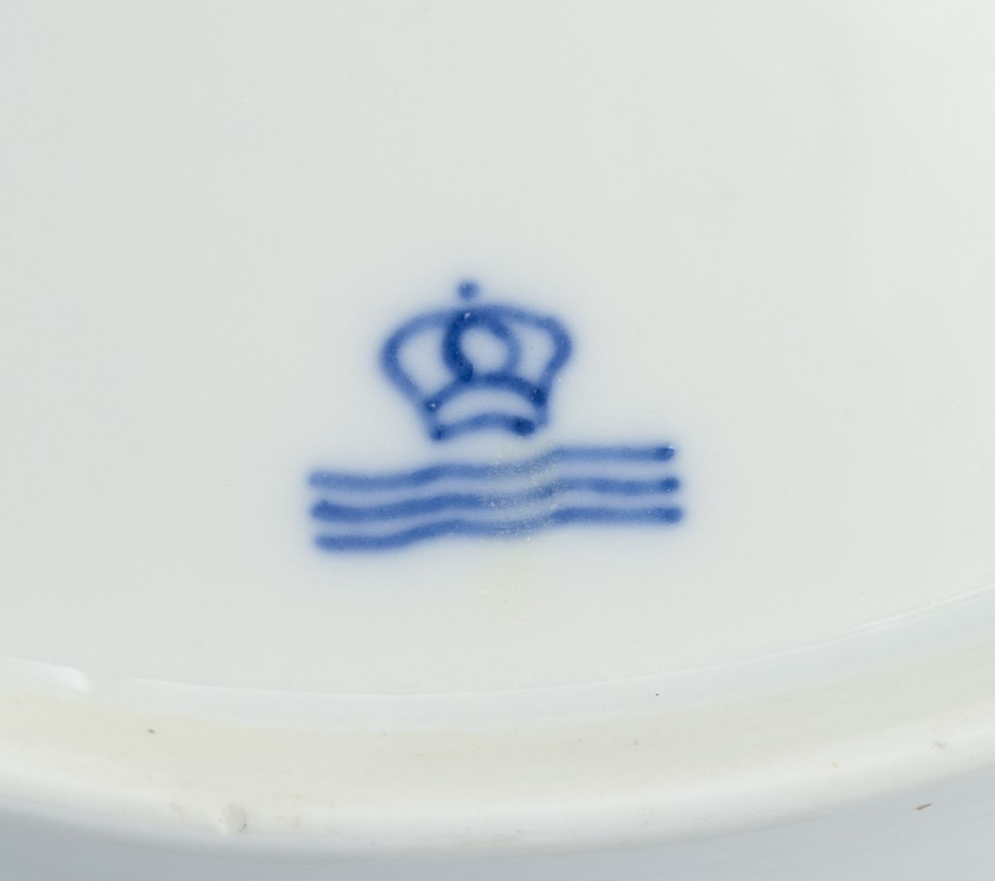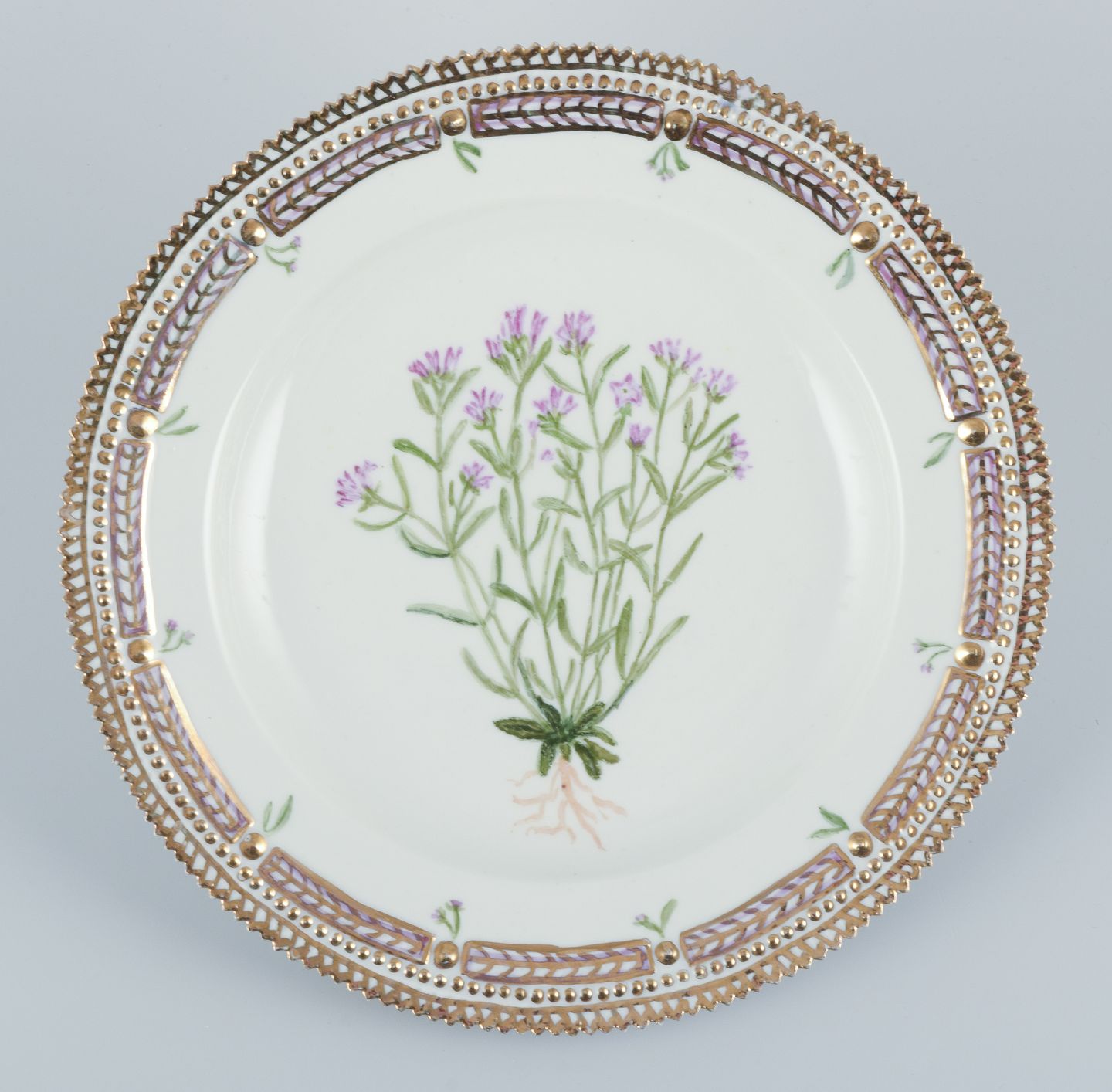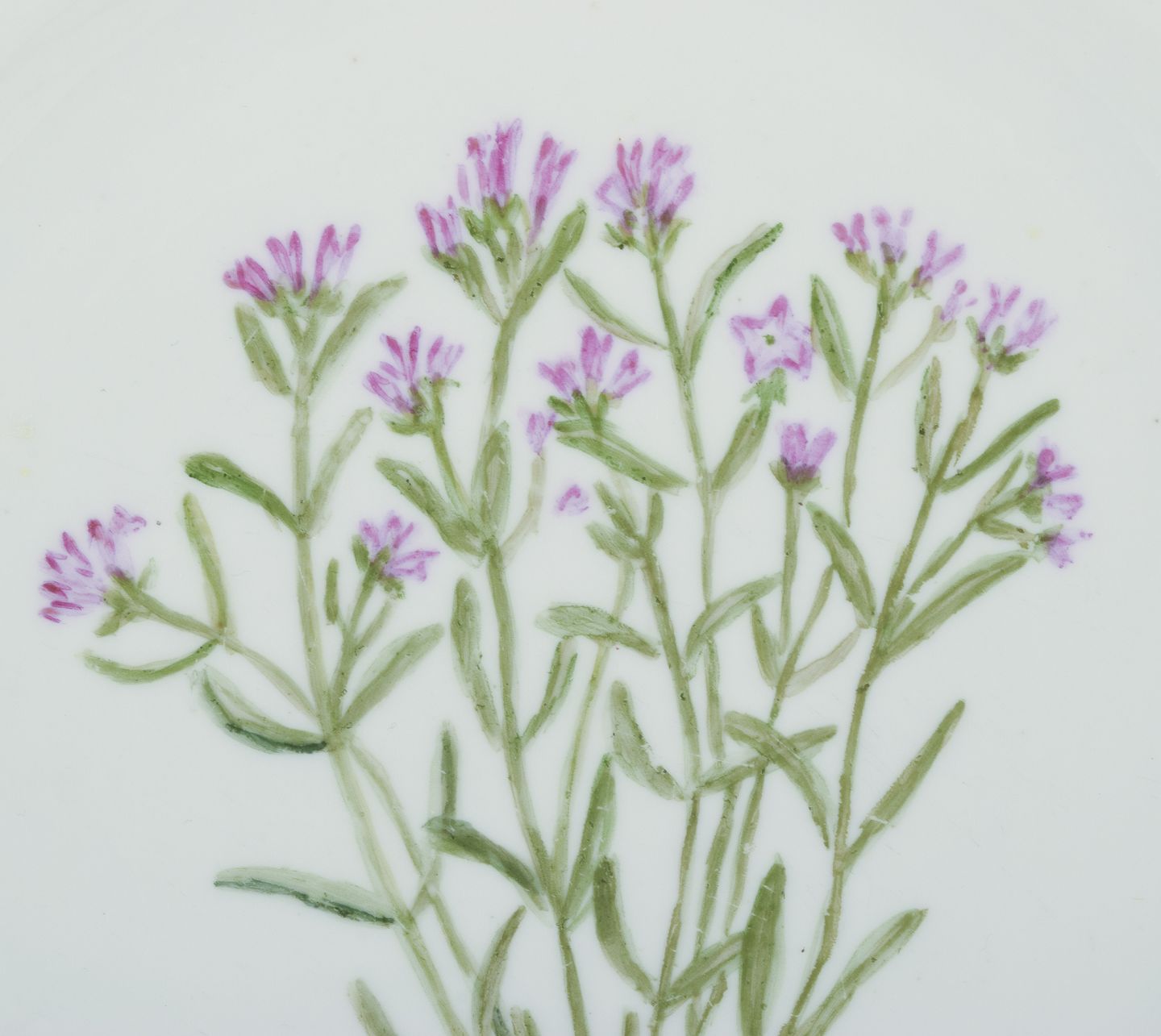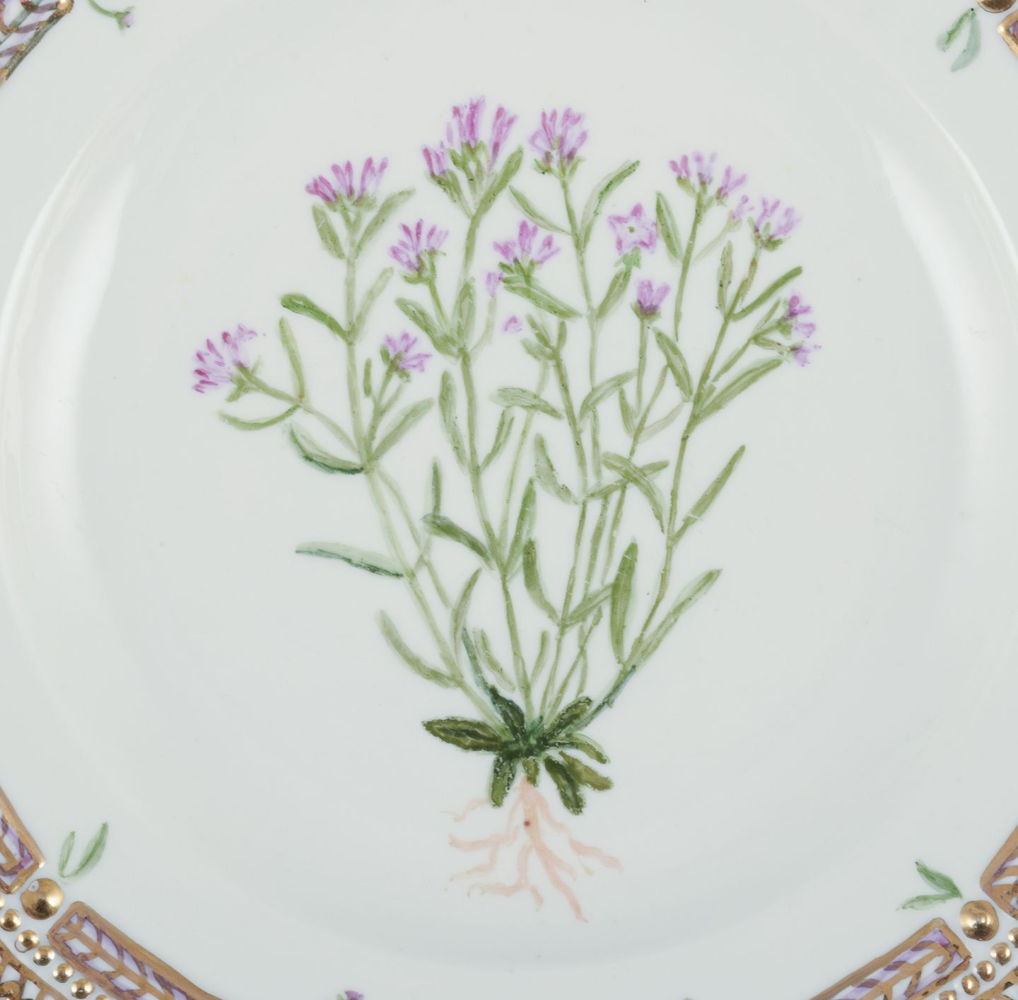 Middagstallerken i håndmalet porcelæn med blomster og gulddekoration. Hjemmedekoreret.