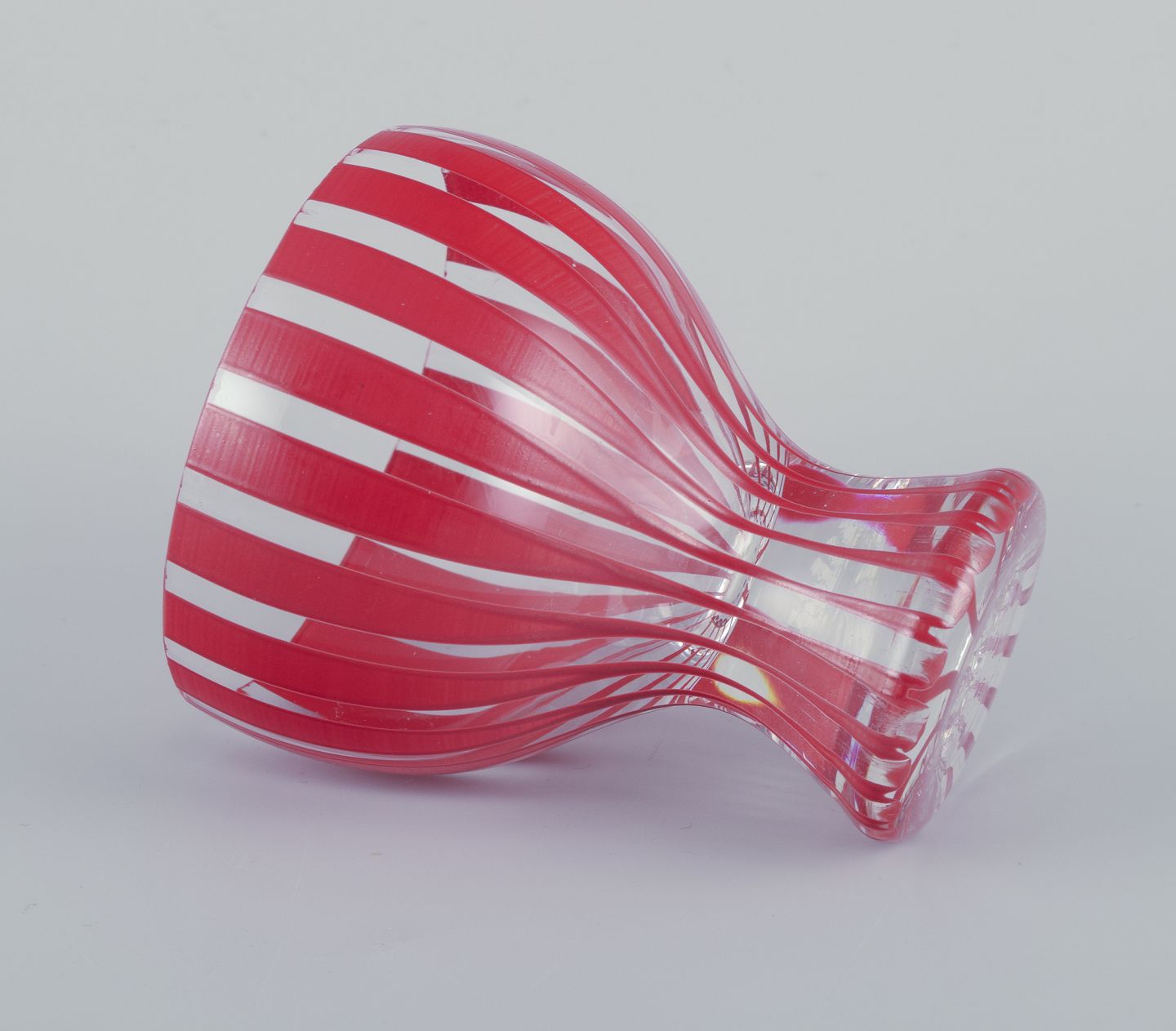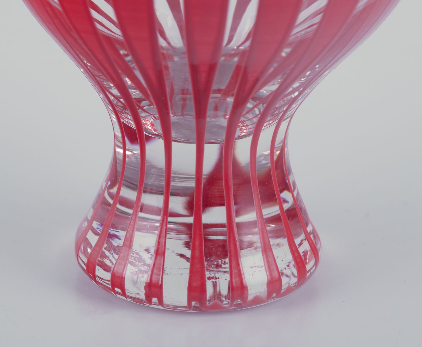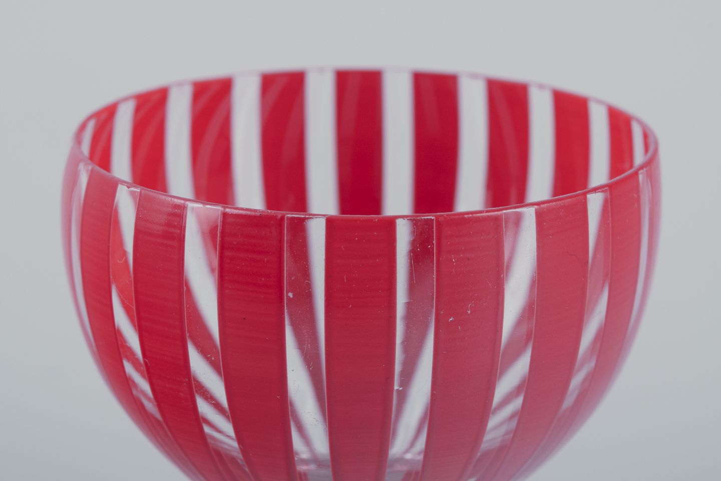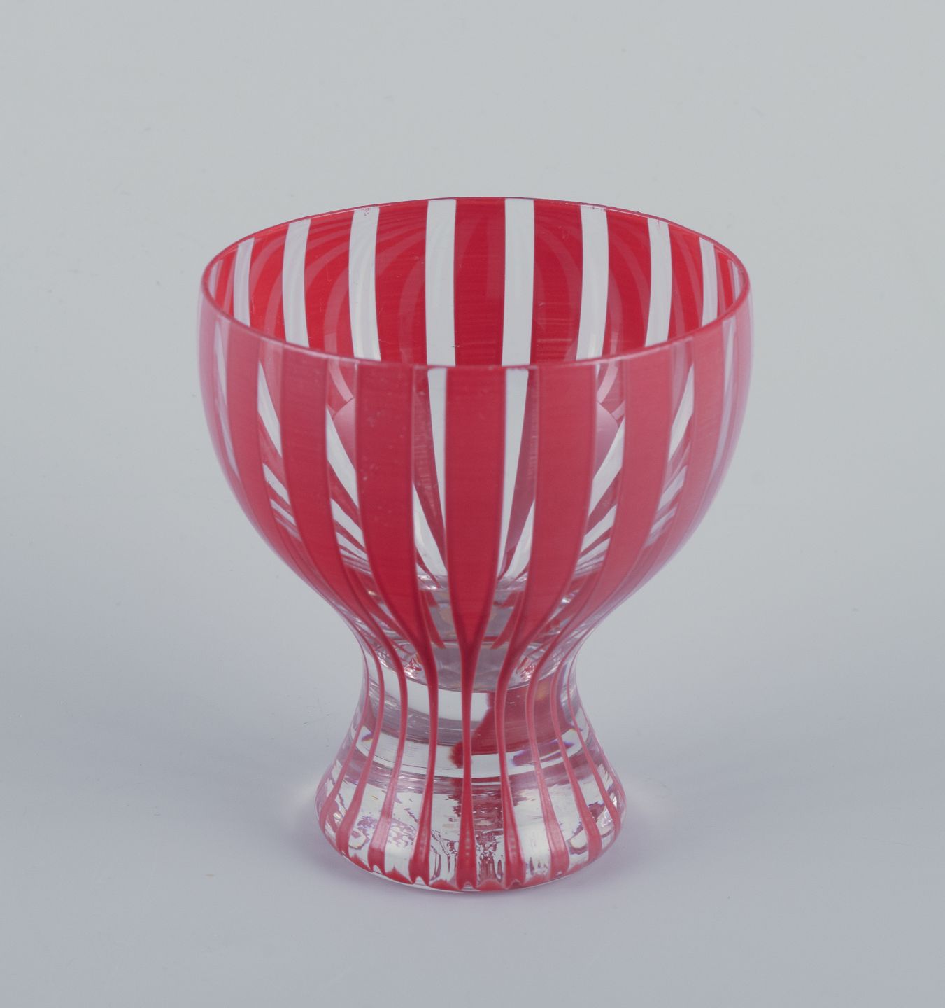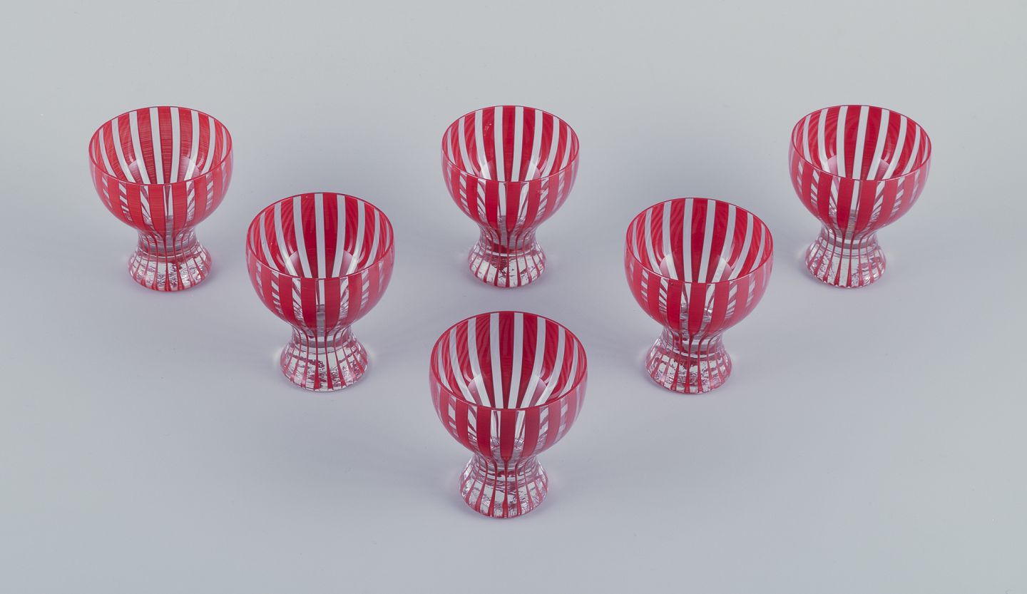 Six "Strikt" cocktail glasses, Bengt Orup, Johansfors. Hand painted with red stripes. 1950s. In perfect condition. Dimensions: 6.5 cm. x 7.5 cm.