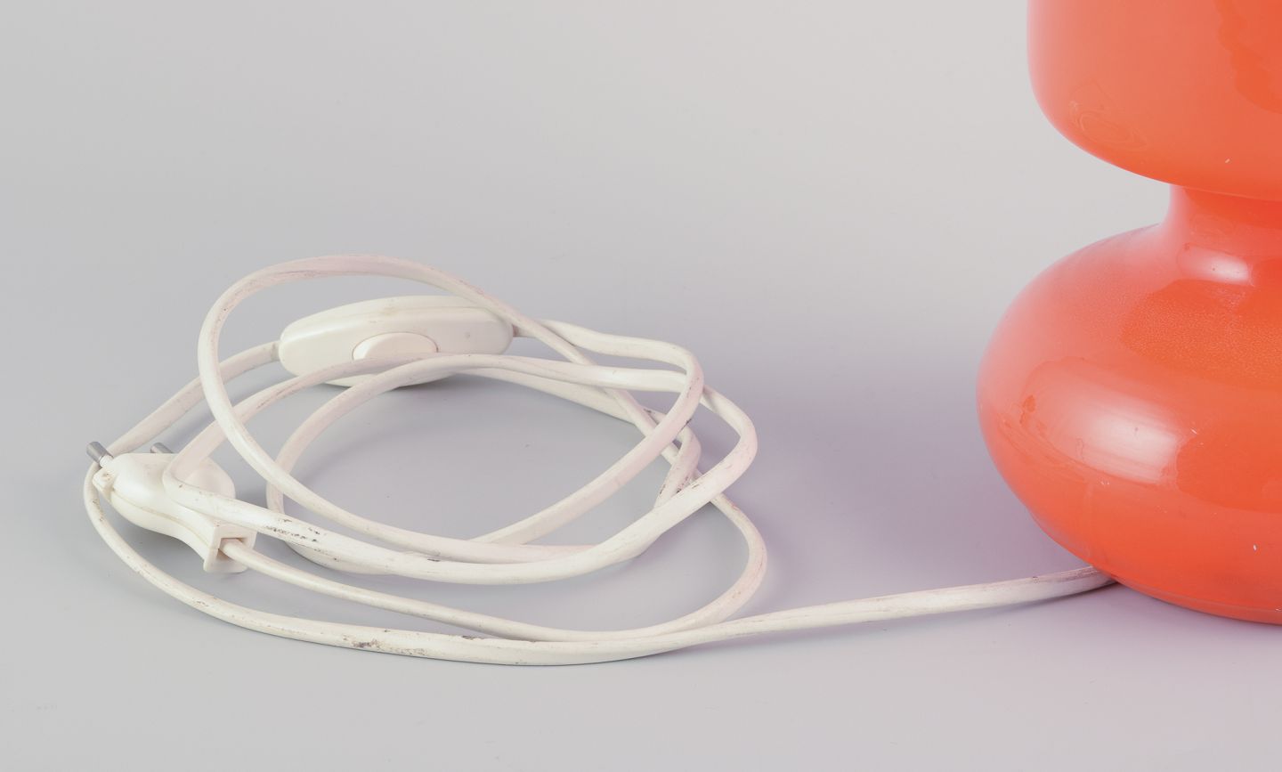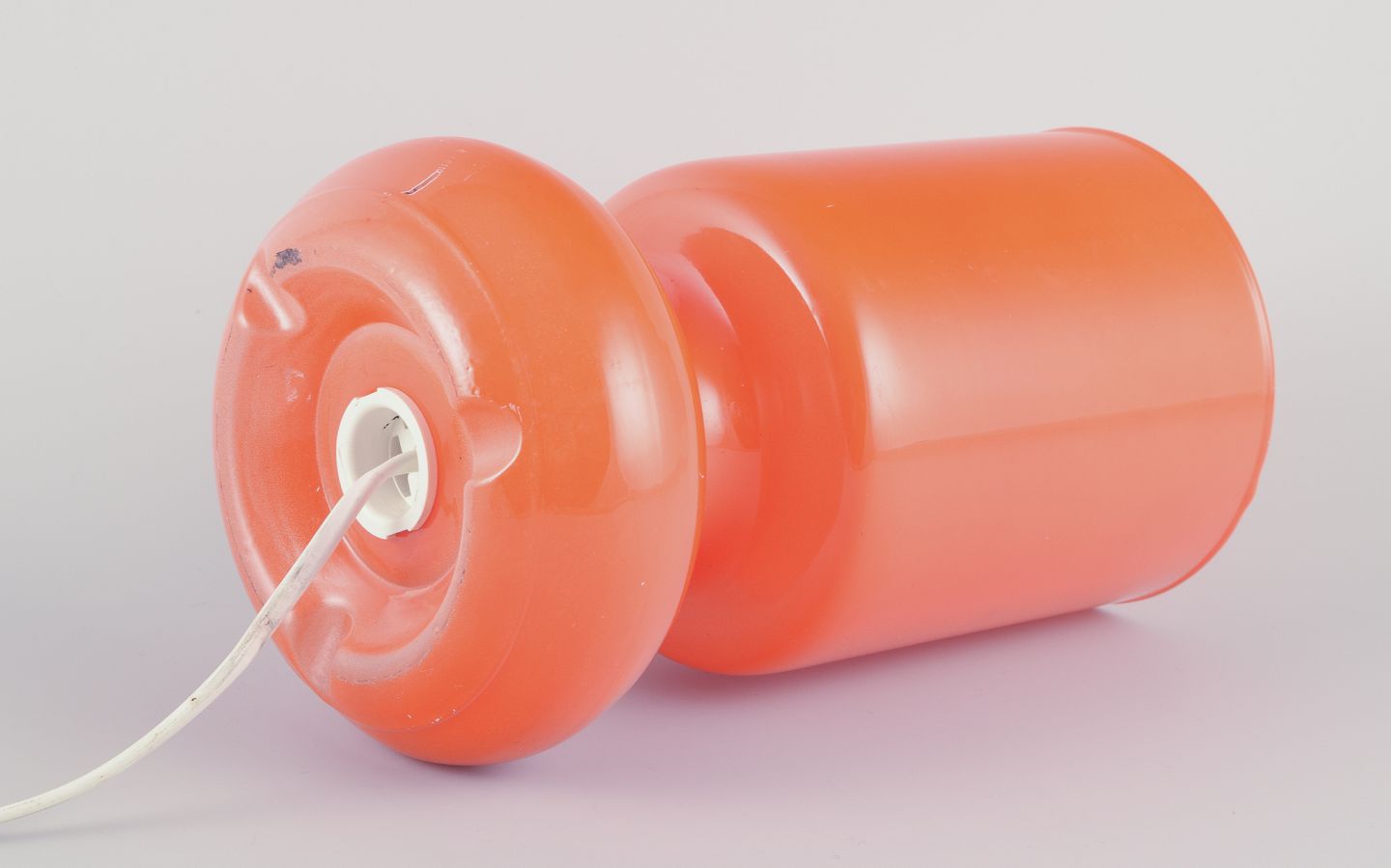 Skandinavisk designer, bordlampe i orange glas. Sent 1900-tallet. Stand: I flot stand med minimalt brugspræg. Mål: H 25,0 x D 13,0 cm.