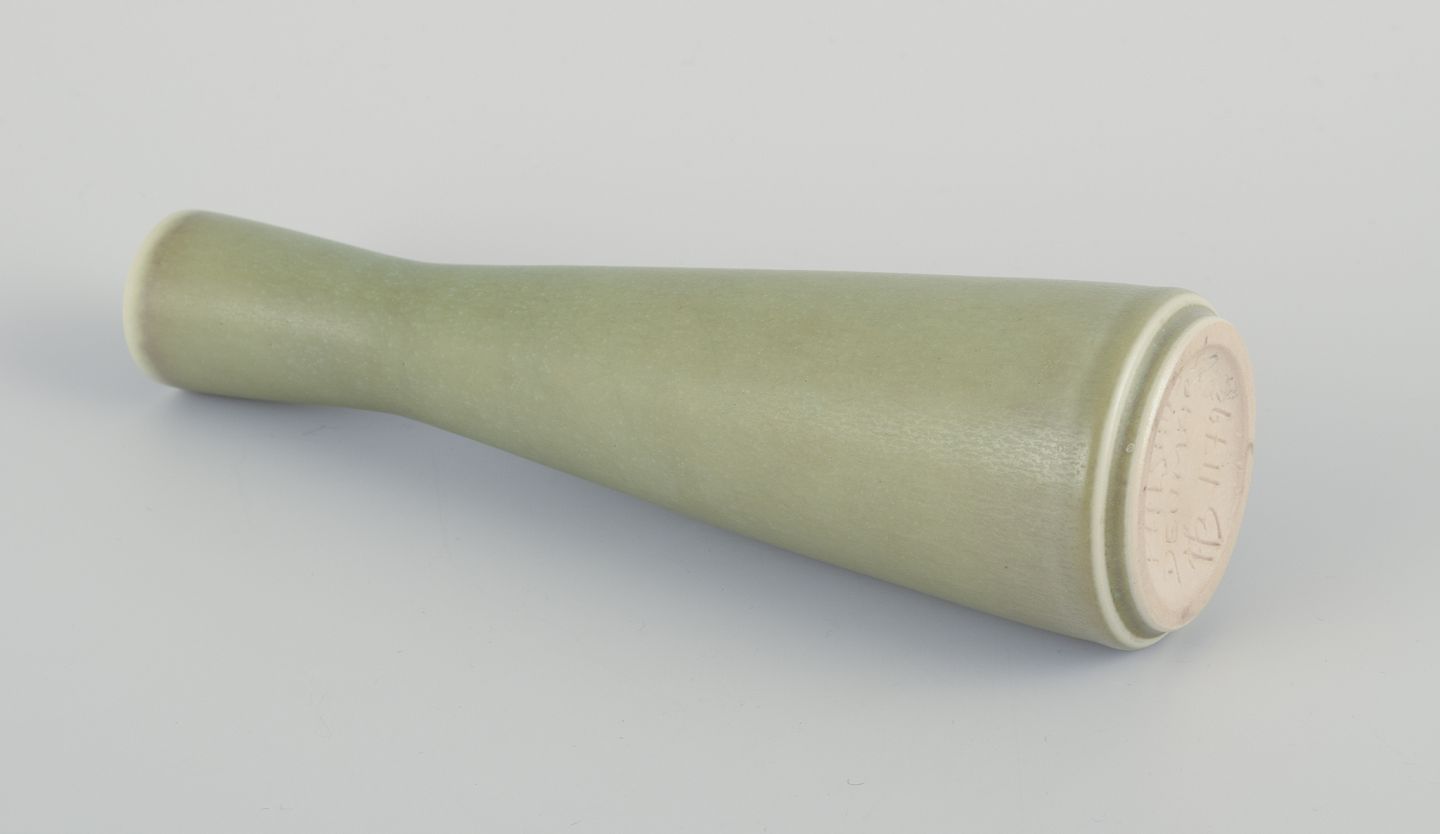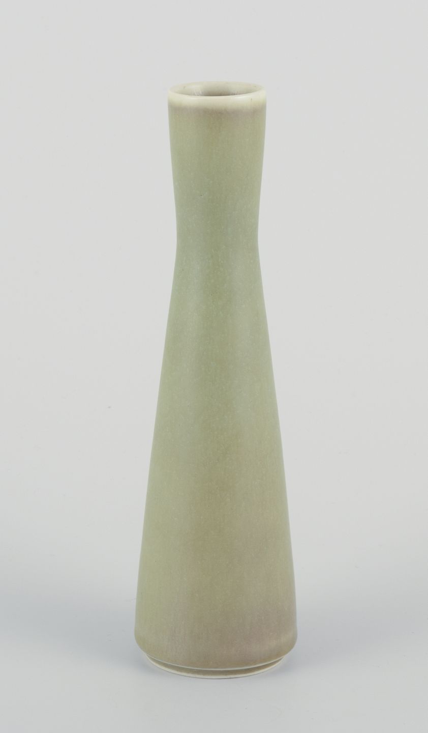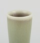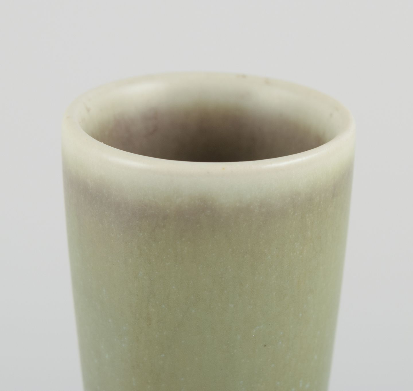 Stor og smal keramikvase i lysegrøn harepelsglasur.