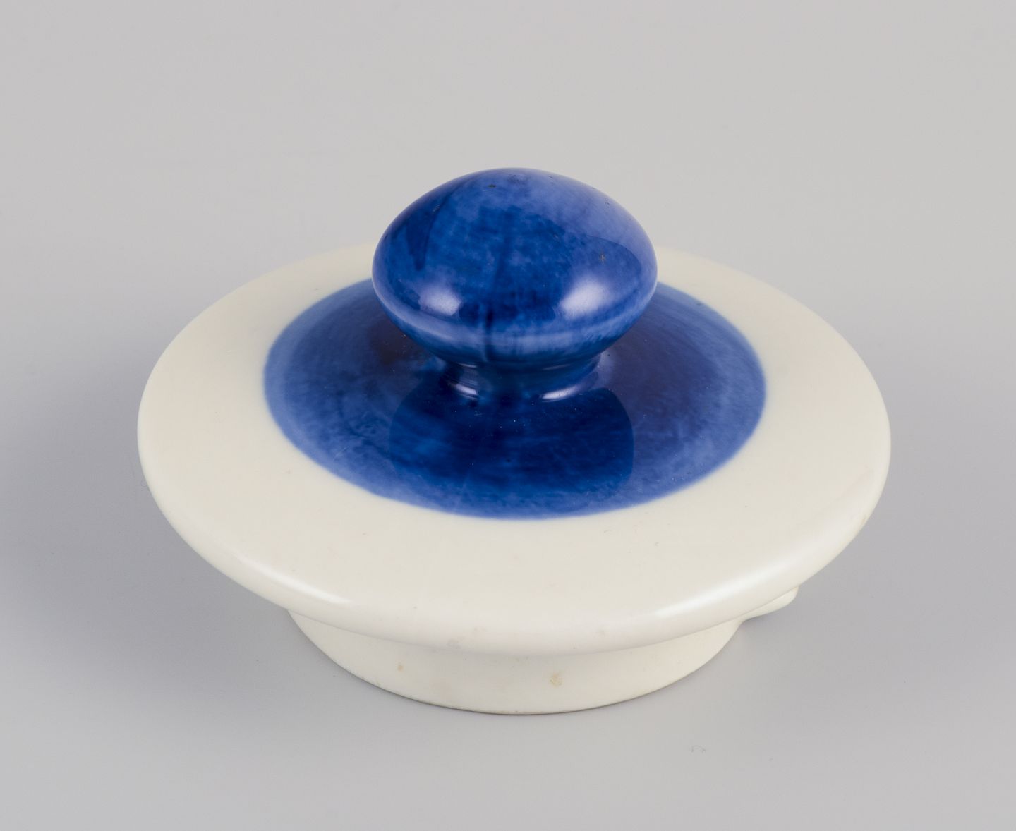Blue and cream-colored glaze.