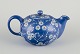 Stor ”Marguerite” tekande med blå glasur, dekoreret med hvide blomster.