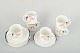 Seks porcelænskopper med tilhørende underkopper, dekoreret med håndmalede blomster i rosa, grønne og sorte nuancer. Serien kombinerer rene linjer og bløde former med et elegant postmodernistisk udtryk.