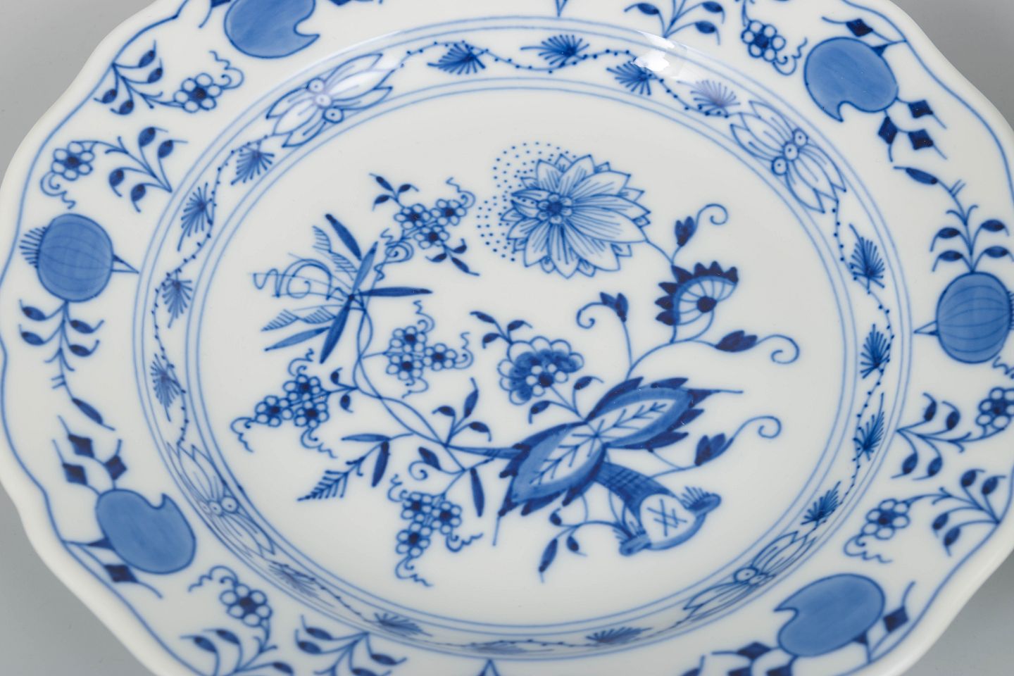 Meissens Zwiebelmuster blev udviklet i 1730’erne og er fortsat et af verdens mest ikoniske porcelænsmønstre. Dekorationen håndmales i koboltblå underglasur og repræsenterer næsten 300 års ubrudt håndværkstradition. Senere 1900-tals eksemplarer er anerkendt for deres rene udførelse og høje kvalitet.